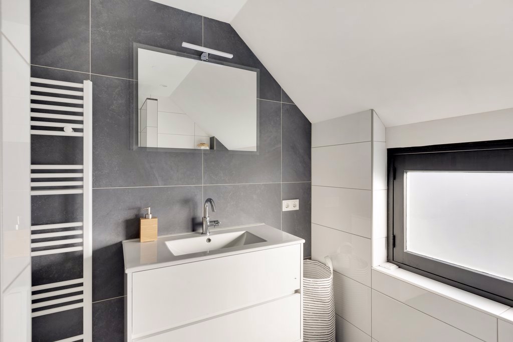 Hier vind je 3 slaapkamers en een badkamer. De badkamer uit 2018 is geheel betegeld en heeft een douche, toilet, badmeubel , designradiator en inbouwspotjes.