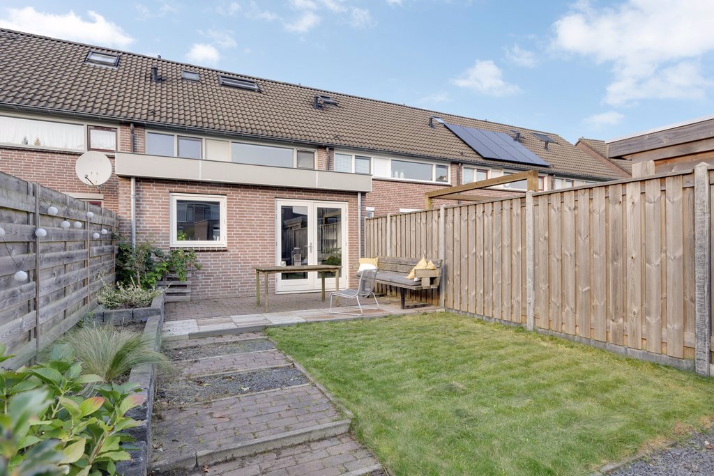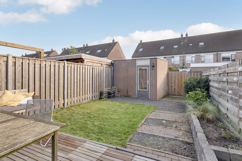Vanuit de keuken kom je in de fijne tuin, gunstig gelegen op het zuiden. De stenen berging achterin de tuin biedt meer dan voldoende ruimte voor gereedschap en fietsen.