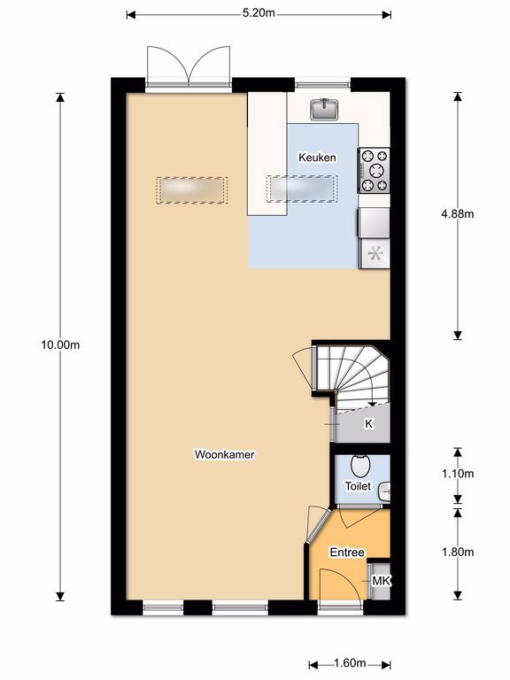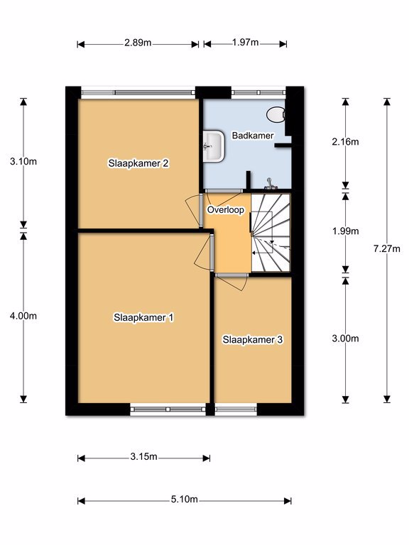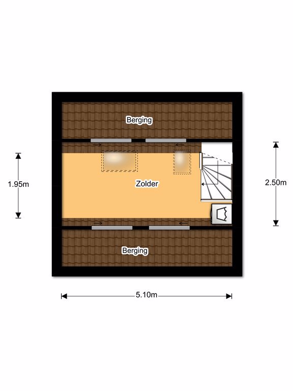 – Oppervlakte begane grond en 1e verdieping is samen ca. 89 m². De zolder is ca. 10 m² groot.