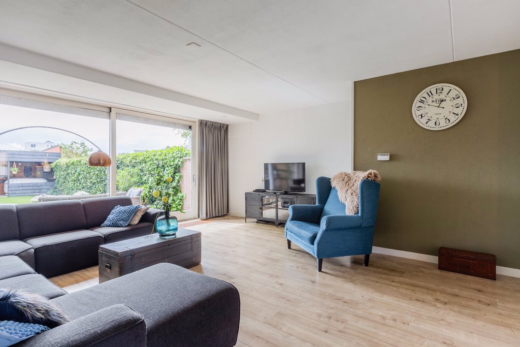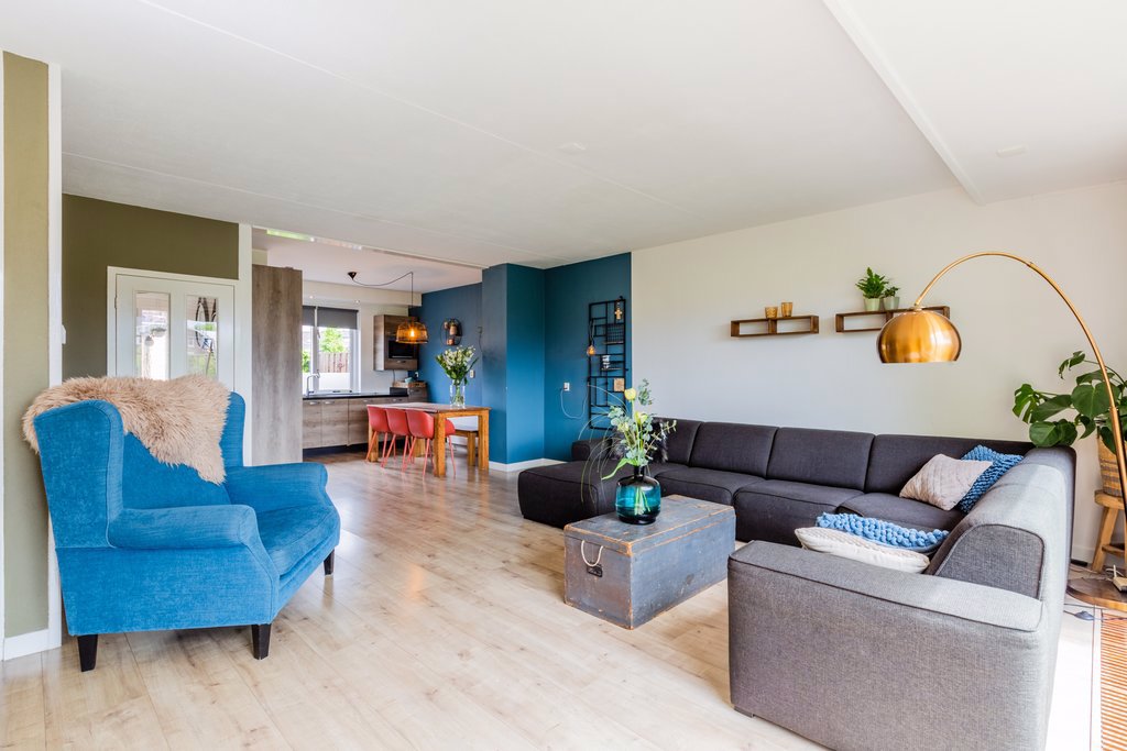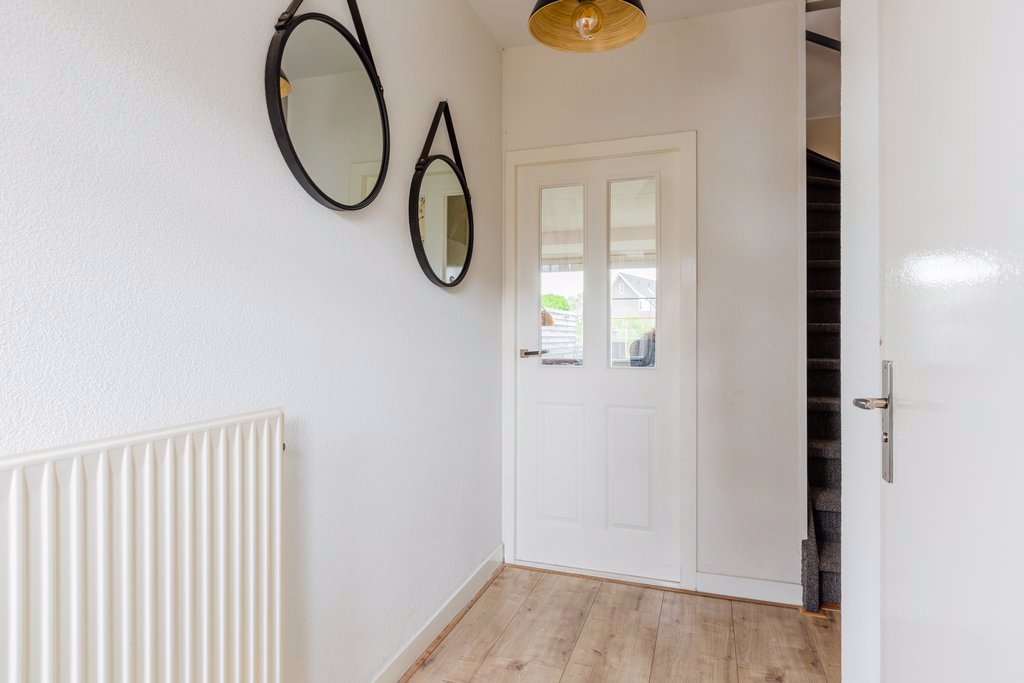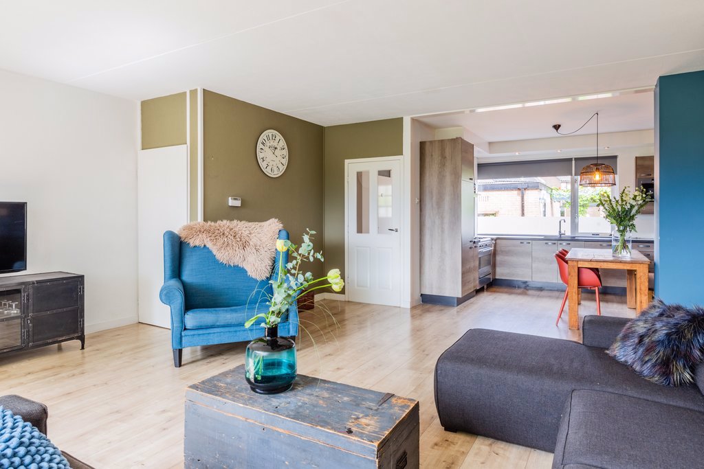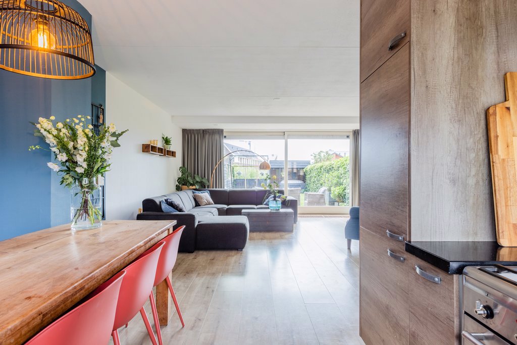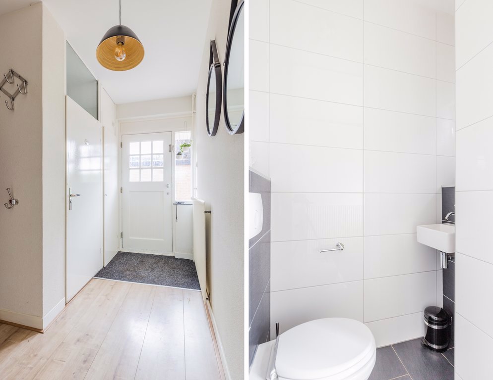 Entree/hal met meterkast, betegeld toilet met fonteintje (2016), trapopgang en toegang tot de woonkamer. Wat een licht en ruimte vind je in de woonkamer. Deze brede woning heeft een grote schuifpui waardoor er een fijne verbinding is met de tuin. Hierdoor geniet je binnen op de bank al van het vrije uitzicht.