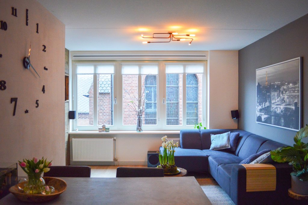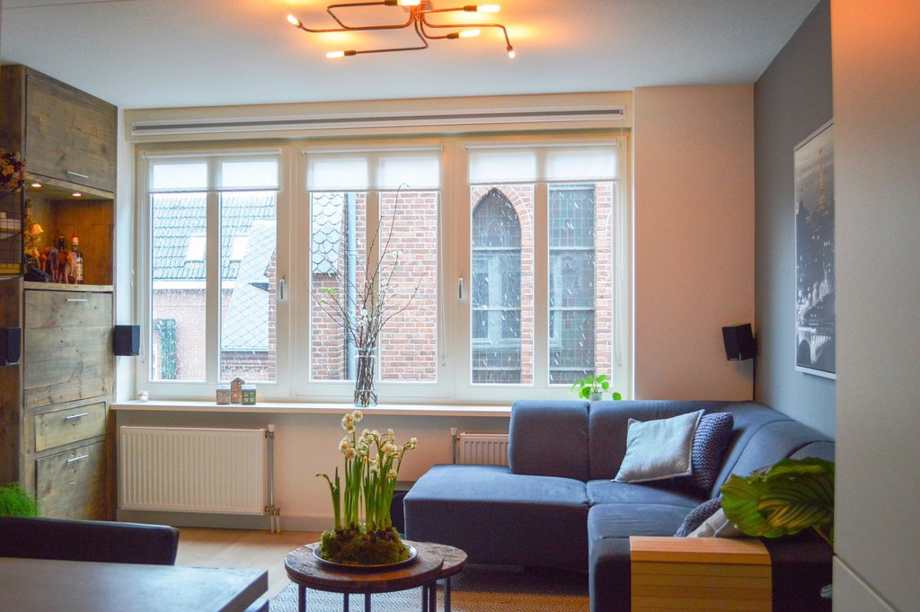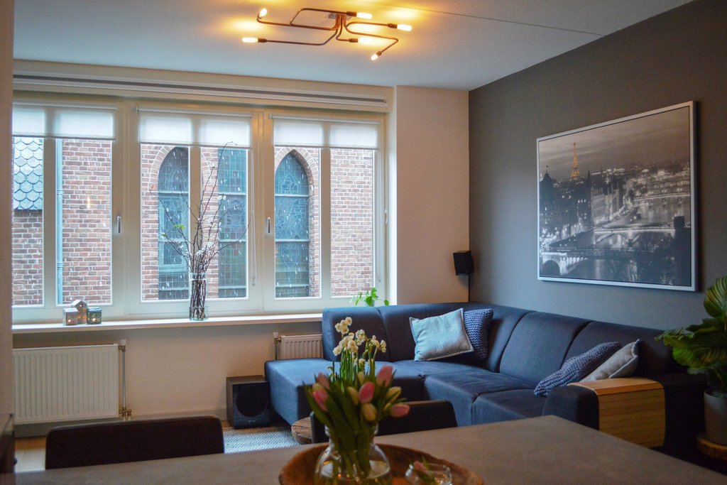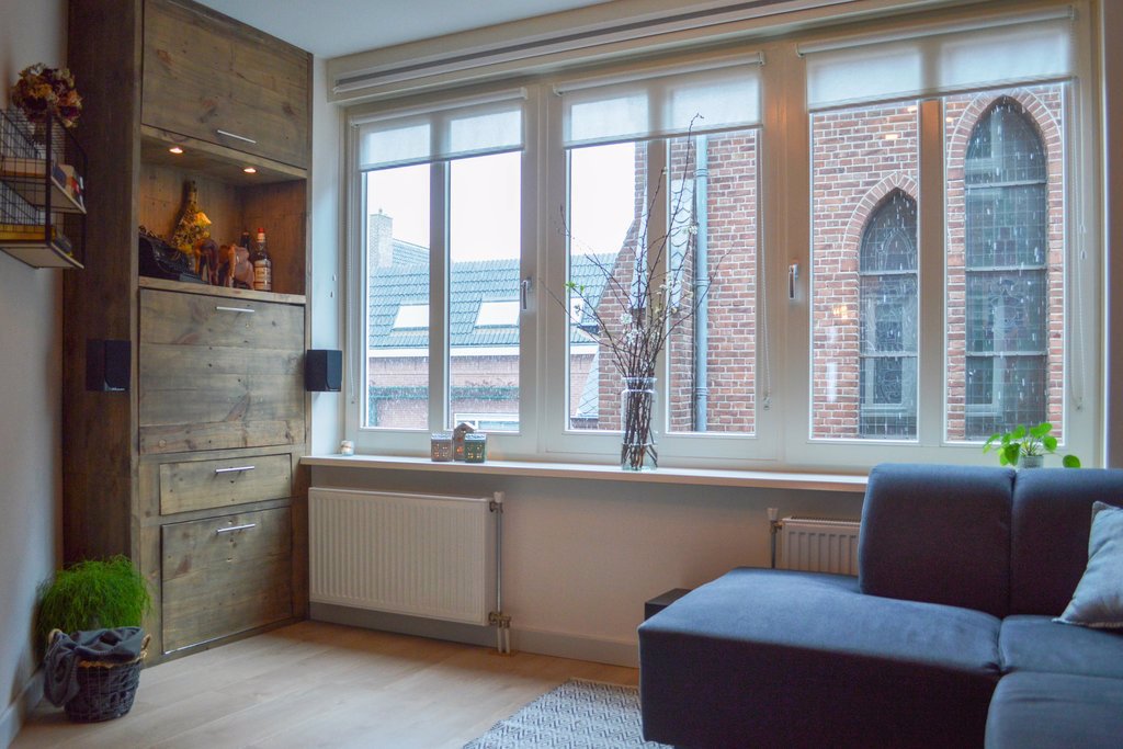 De woonkamer is keurig afgewerkt met een laminaatvloer en bijbehorende hoge plinten. Vanuit de woonkamer heeft u uitzicht op de prachtige glas-in-lood ramen van de katholieke Catharijne kerk en over de winkelstraat. De moderne open keuken is voorzien van een 4-pits gasfornuis met afzuiginstallatie, koelkast, vrieskast en combi-oven.