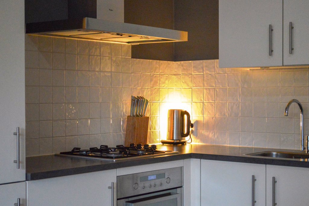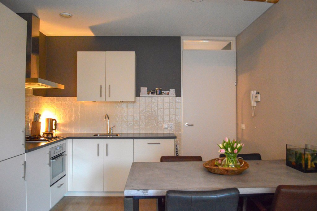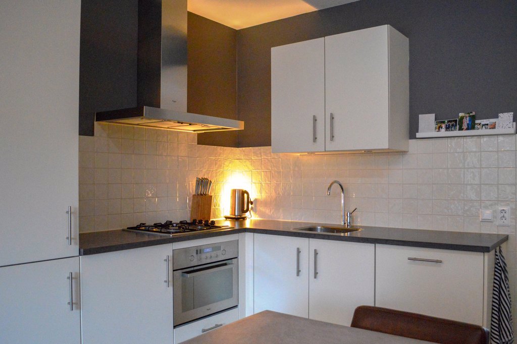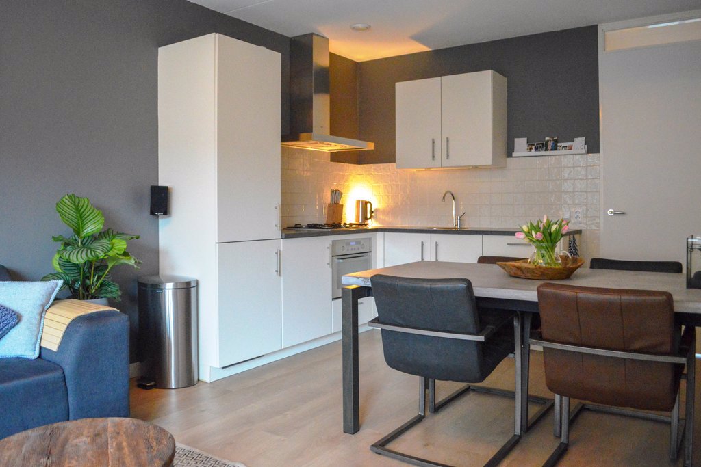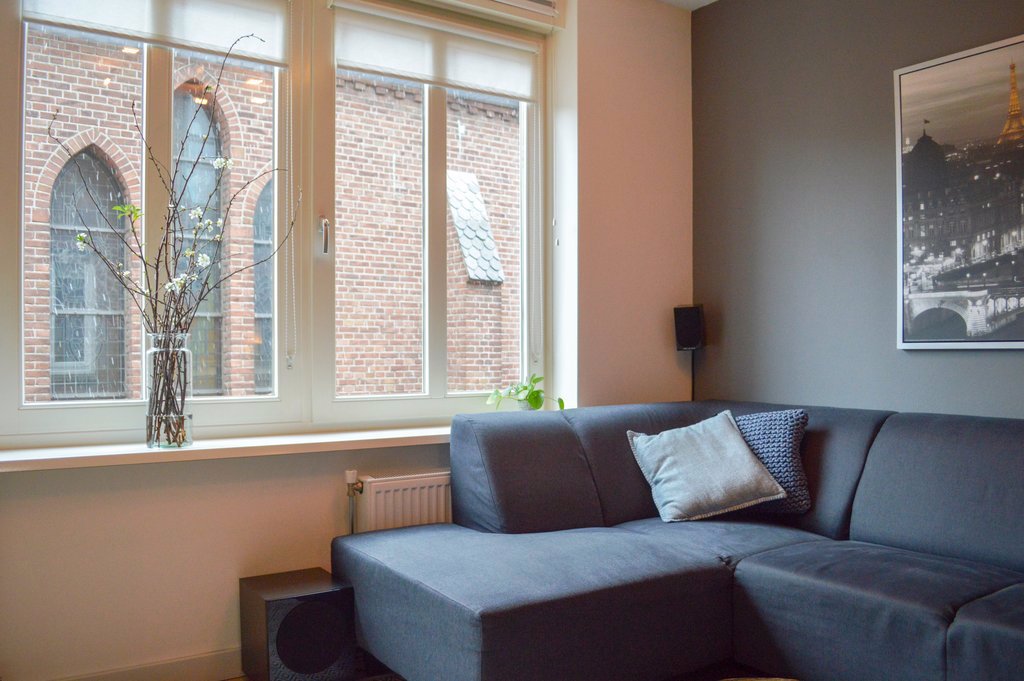 De woonkamer is keurig afgewerkt met een laminaatvloer en bijbehorende hoge plinten. Vanuit de woonkamer heeft u uitzicht op de prachtige glas-in-lood ramen van de katholieke Catharijne kerk en over de winkelstraat. De moderne open keuken is voorzien van een 4-pits gasfornuis met afzuiginstallatie, koelkast, vrieskast en combi-oven.