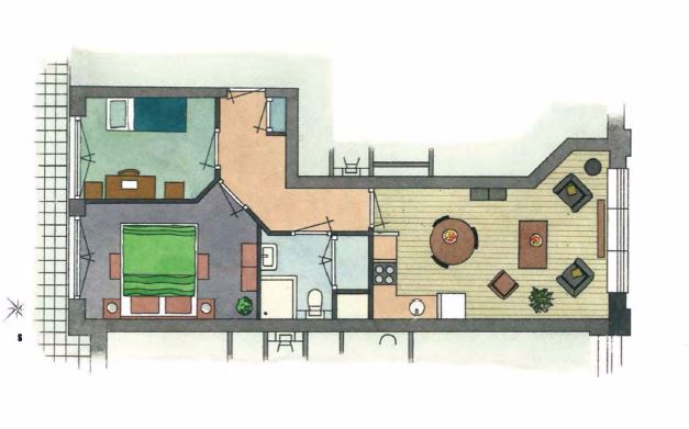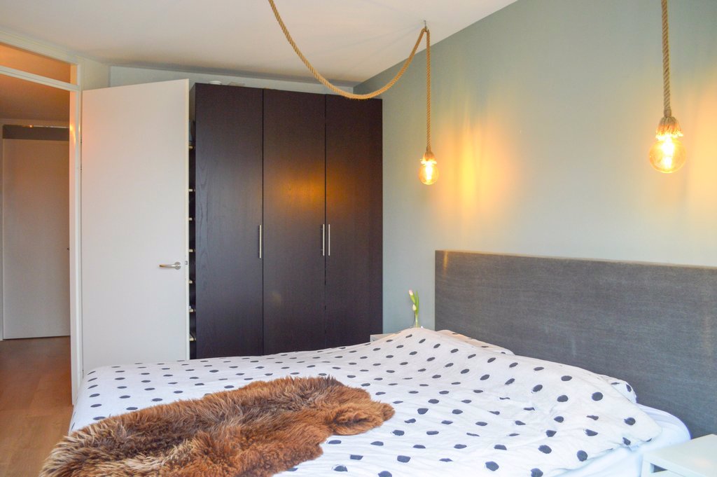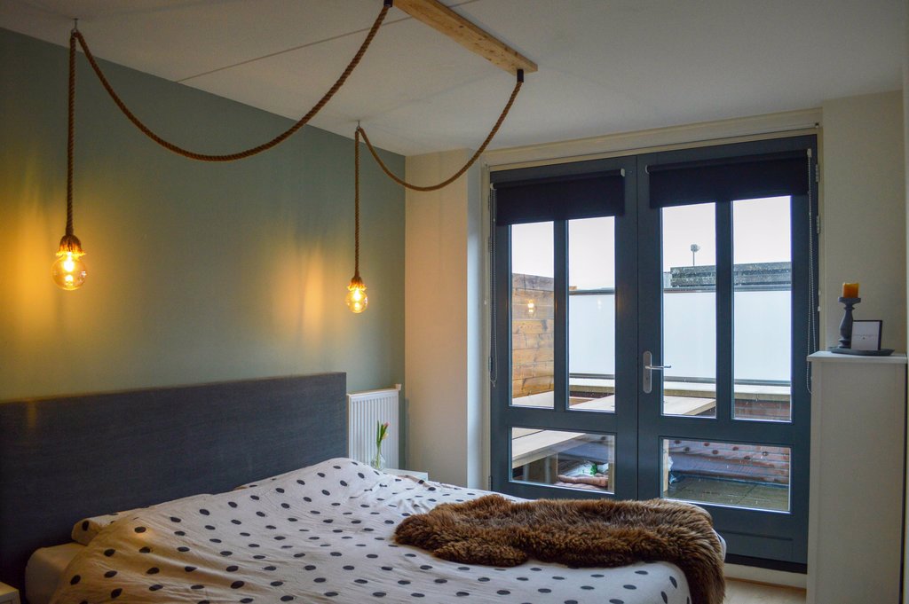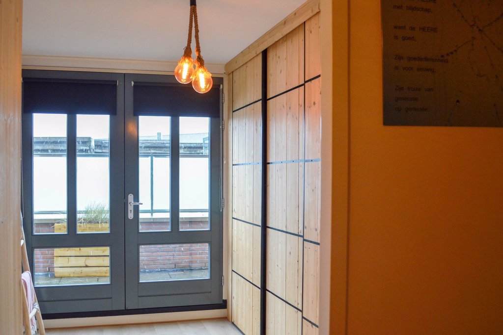 Dit appartement is voorzien van een tweede slaapkamer. Deze kamer kan tevens dienst doen als werkkamer door er een bureau in te plaatsen. Ook deze kamer geeft door dubbele openslaande deuren toegang tot het dakterras.