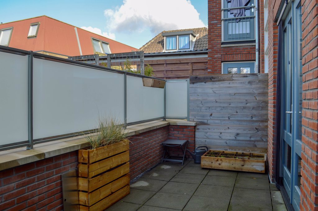 Het ruime terras van maar liefst 14 m² biedt veel privacy en is gelegen op het noordwesten. In de zomer komt de zon rond de middag langs om pas net voor zonsondergang weer te verdwijnen. Een heerlijke plek om ‘s zomers te vertoeven.
