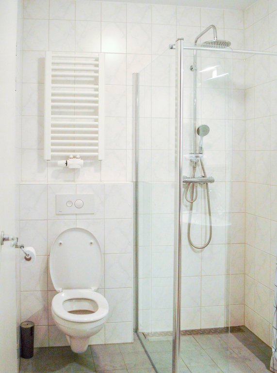 De geheel betegelde badkamer is voorzien van een toilet, glazen douchewand en wastafel. In de berging die aan de badkamer grenst, zitten de witgoedaansluitingen. De hal biedt toegang tot een ruime, verzorgde slaapkamer voorzien van openslaande deuren waarmee u toegang tot het ruime dakterras krijgt. Hier kunt u heerlijk genieten van het zonnetje. Wát wilt u nog meer?