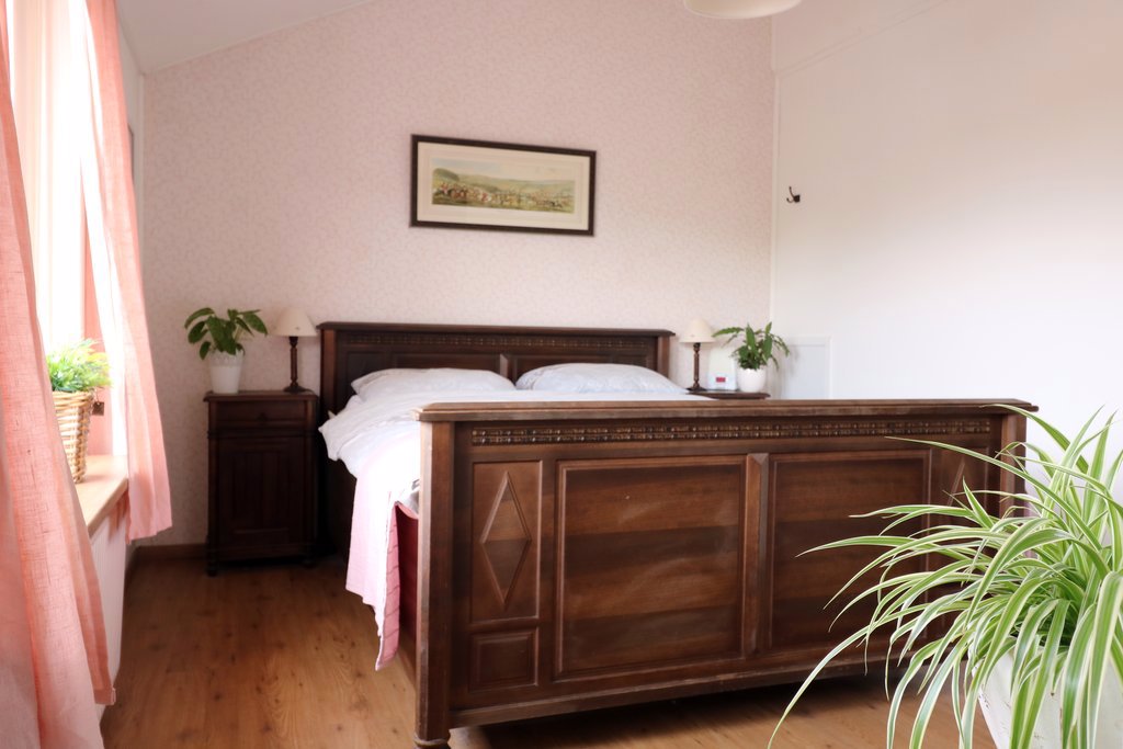 Eerste verdieping: via de vaste trap kom je op de ruime overloop. De eerste verdieping heeft 3 lichte slaapkamers. De grootste slaapkamer ligt aan de voorkant over de gehele breedte en heeft een inloopkast.