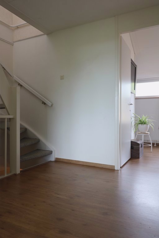 Tweede verdieping: met een vaste trap kom je op zolder. Via de voorzolder krijg je toegang tot de bergruimte waar ook de cv-ketel geplaatst is. In de slaapkamer zit een groot dakraam en een wasmachine-aansluiting.