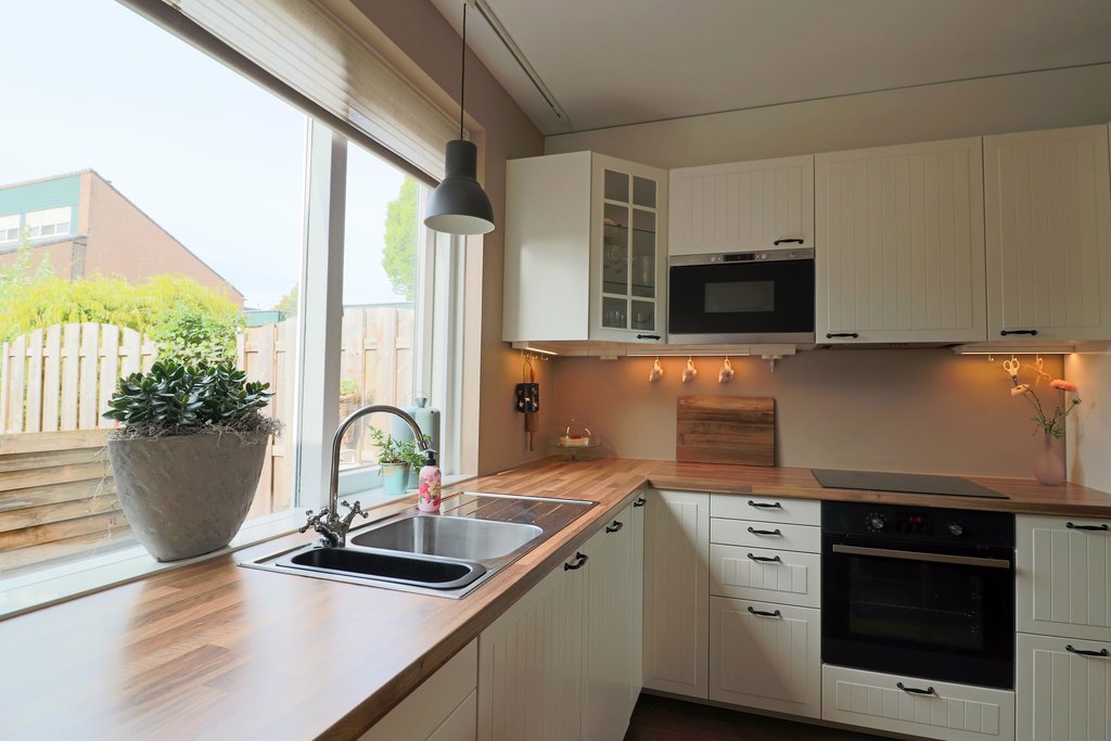 De ruime hoekkeuken is in 2015 nieuw geplaatst en heeft een inductiekookplaat, afzuigkap, oven, magnetron, afwasmachine, ruime koelkast, boiler en spoelbak.
