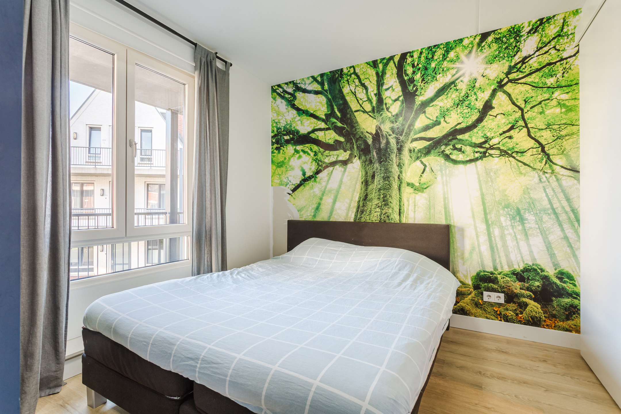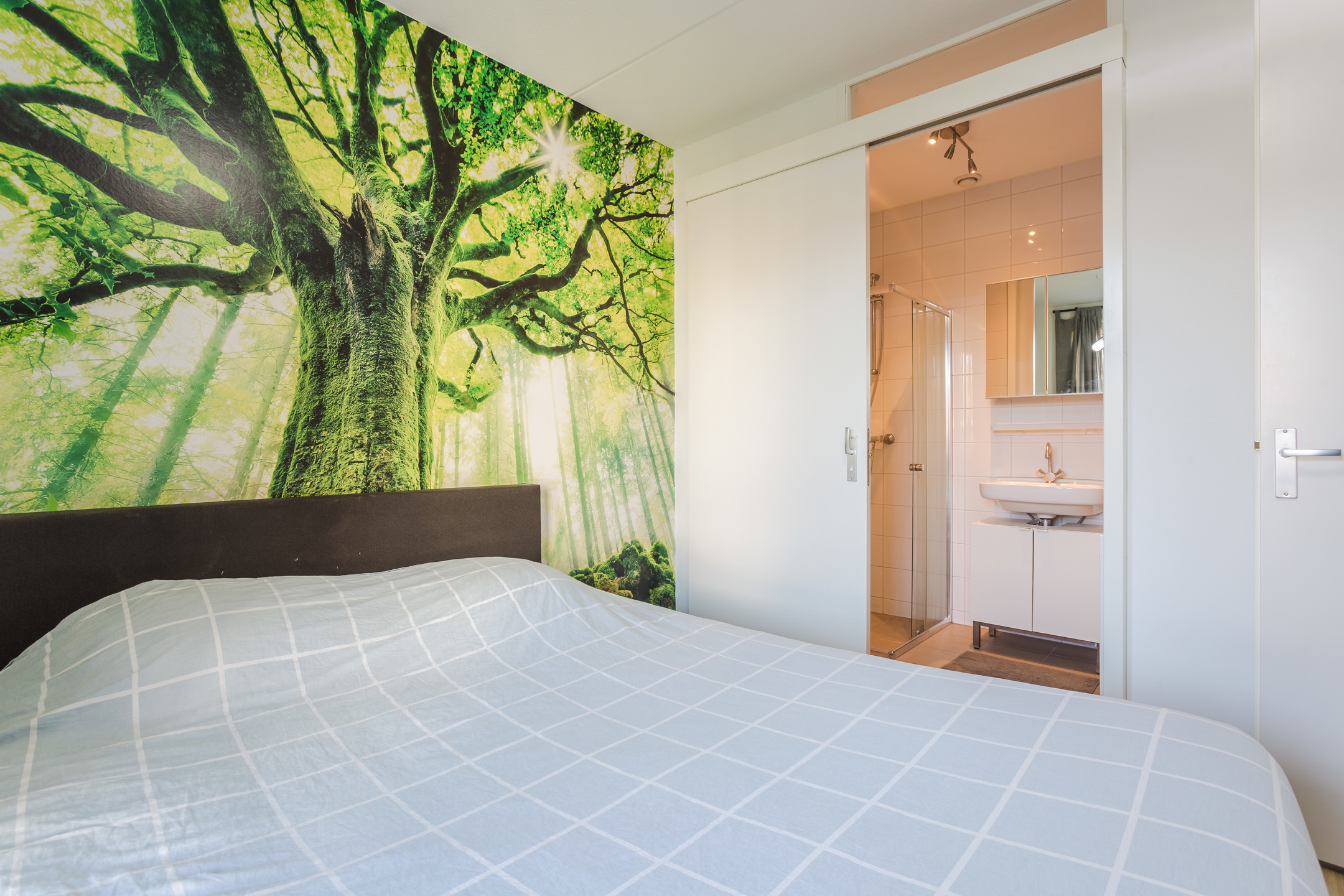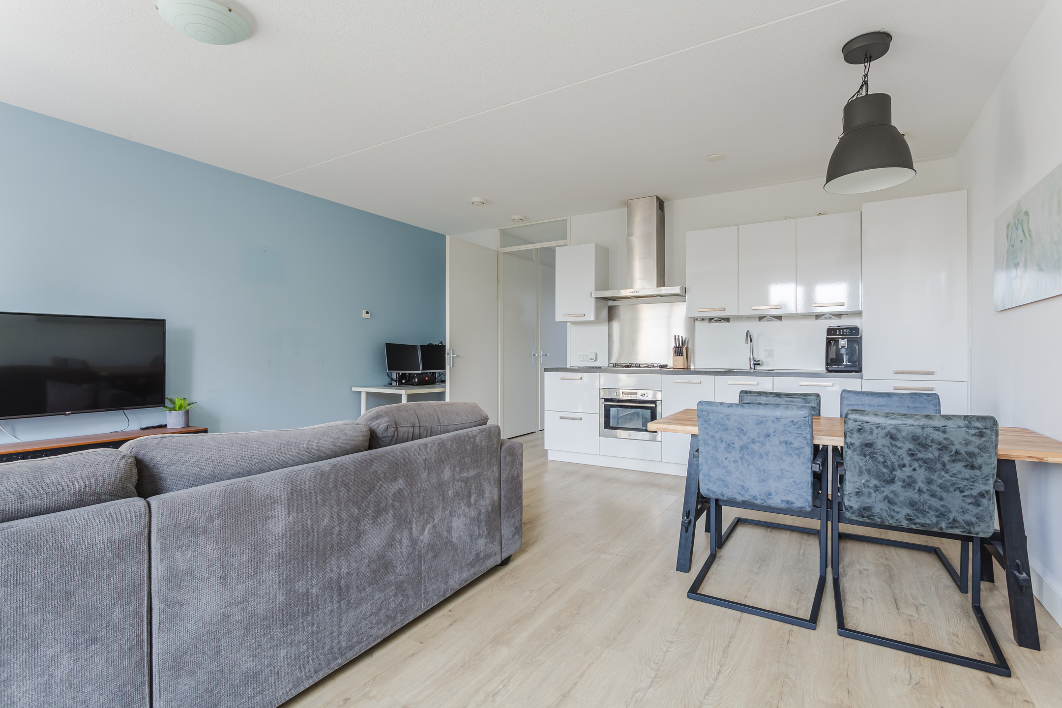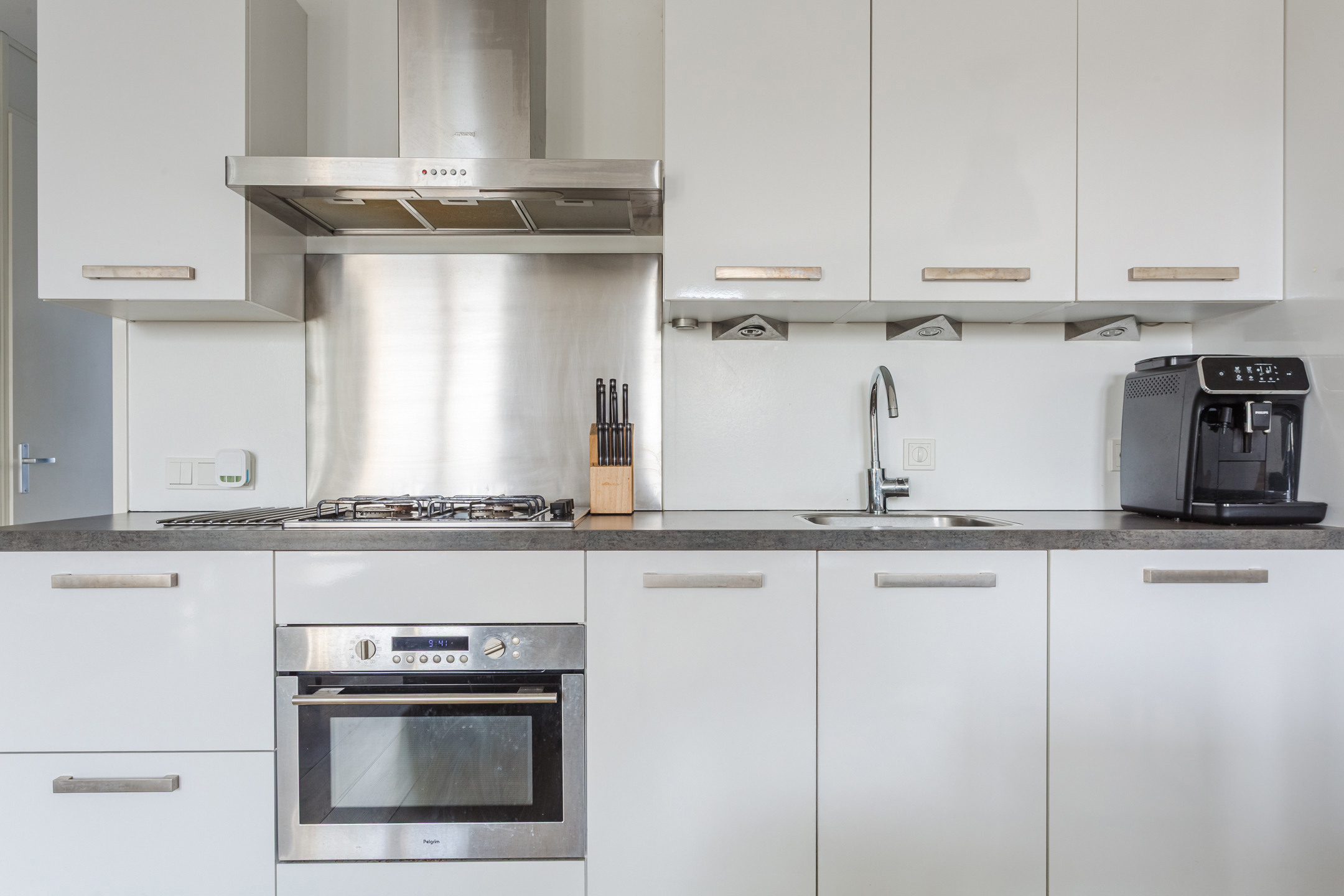 De open keuken is compleet uitgerust met een vaatwasser, koelkast, vriezer, 4-pits gaskookplaat, afzuigkap en oven. De badkamer grenst direct aan de ruime slaapkamer. Hier vind je een douche, wastafelmeubel en de aansluiting voor een wasmachine.