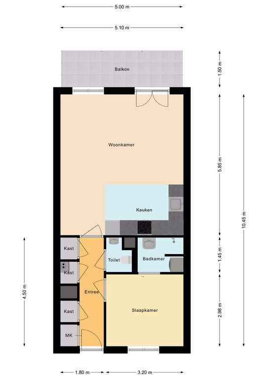 – Vloerverwarming in woonkamer, slaapkamer en hal