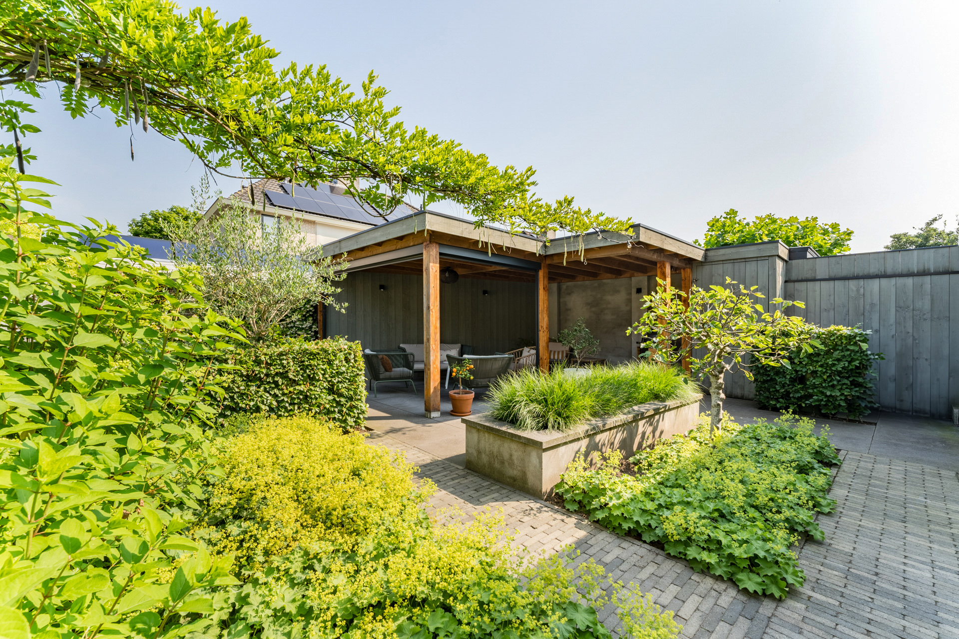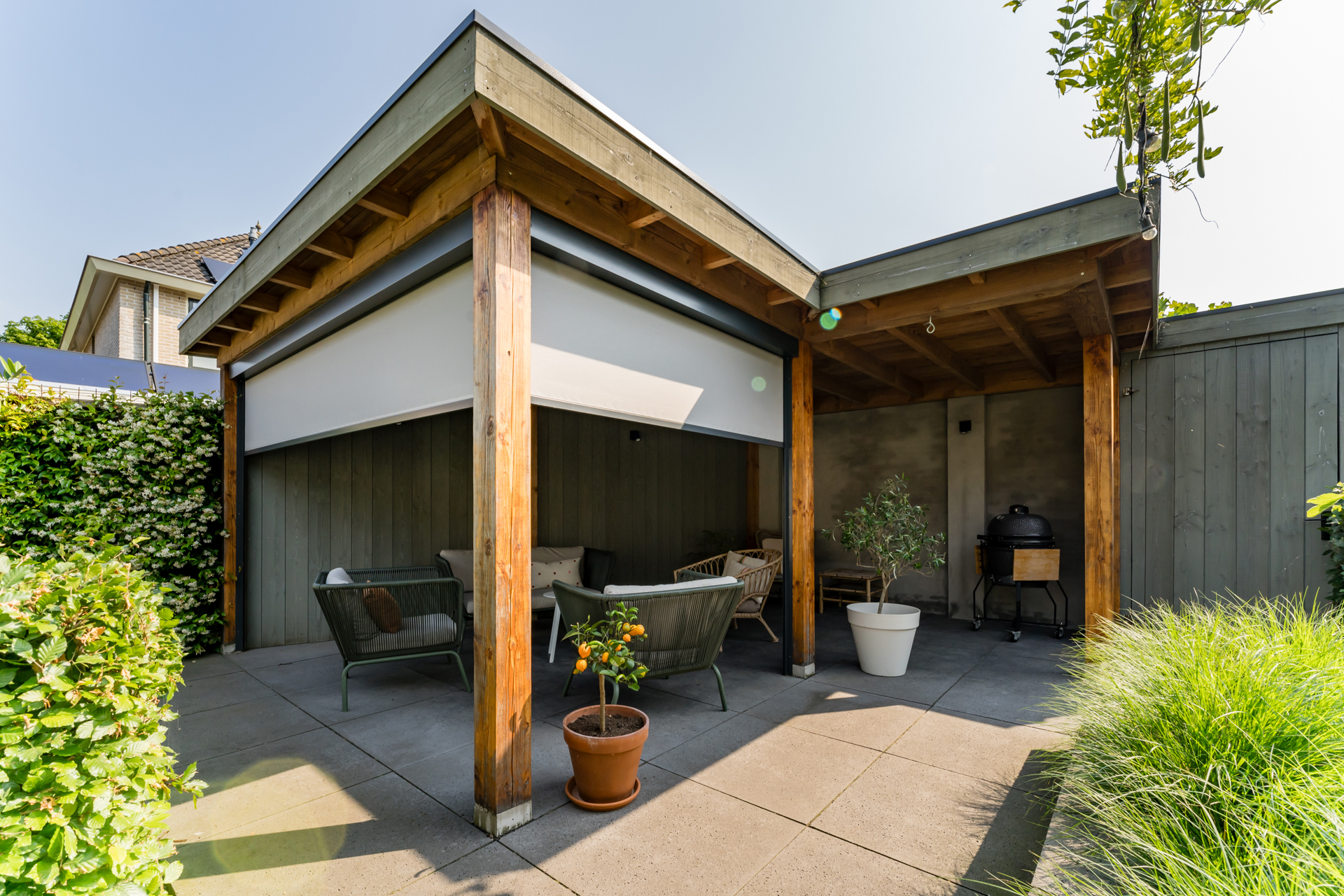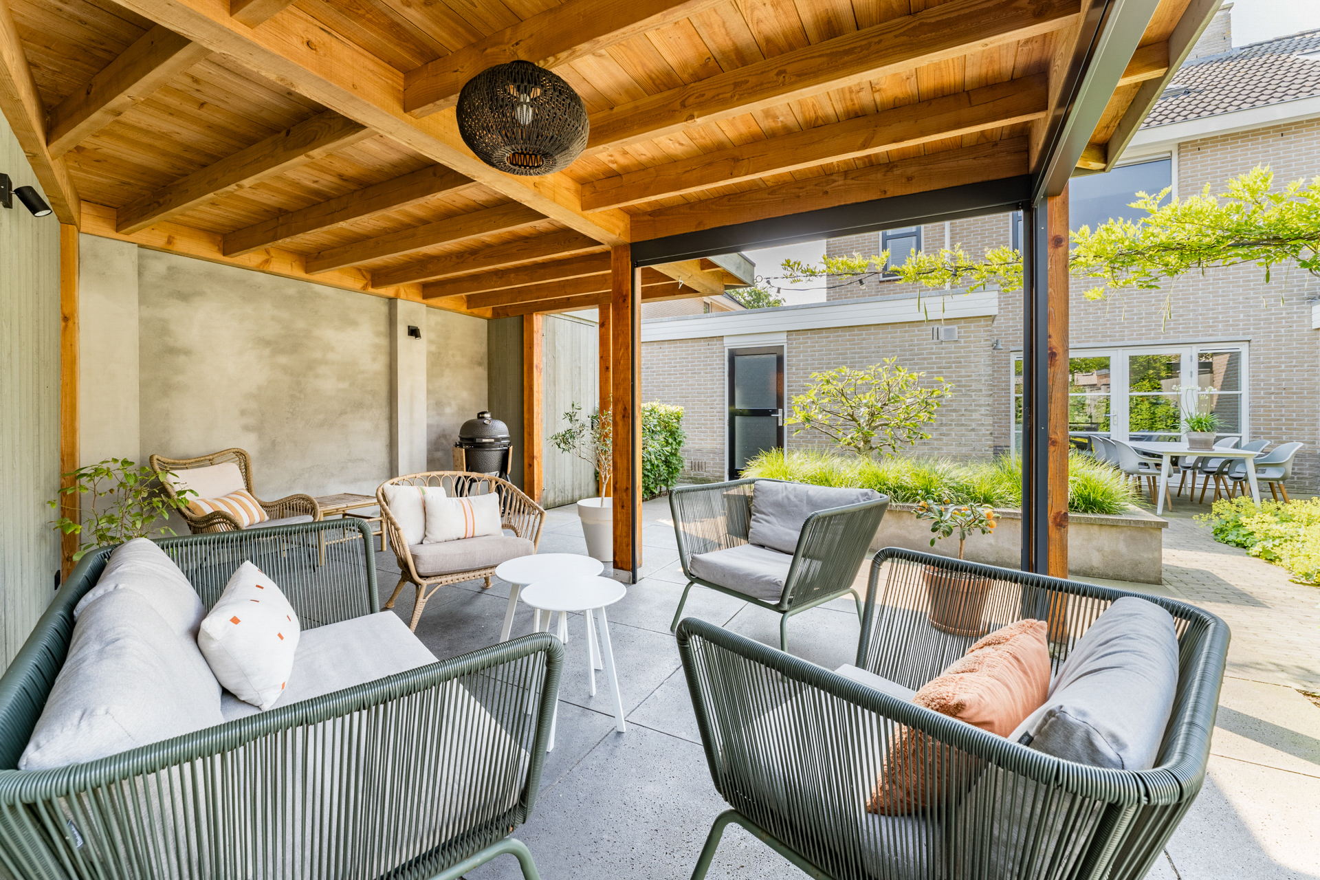In 2019 is de achtertuin ontworpen en aangelegd door een professionele hovenier. De schuttingen zijn vervangen en er is een grote veranda geplaatst. Met de automatisch bedienbare screens (2023) in de veranda zit je hier ook heerlijk beschut als het wat frisser wordt. Een ideale plek om te genieten van lange zomeravonden met vrienden en familie.