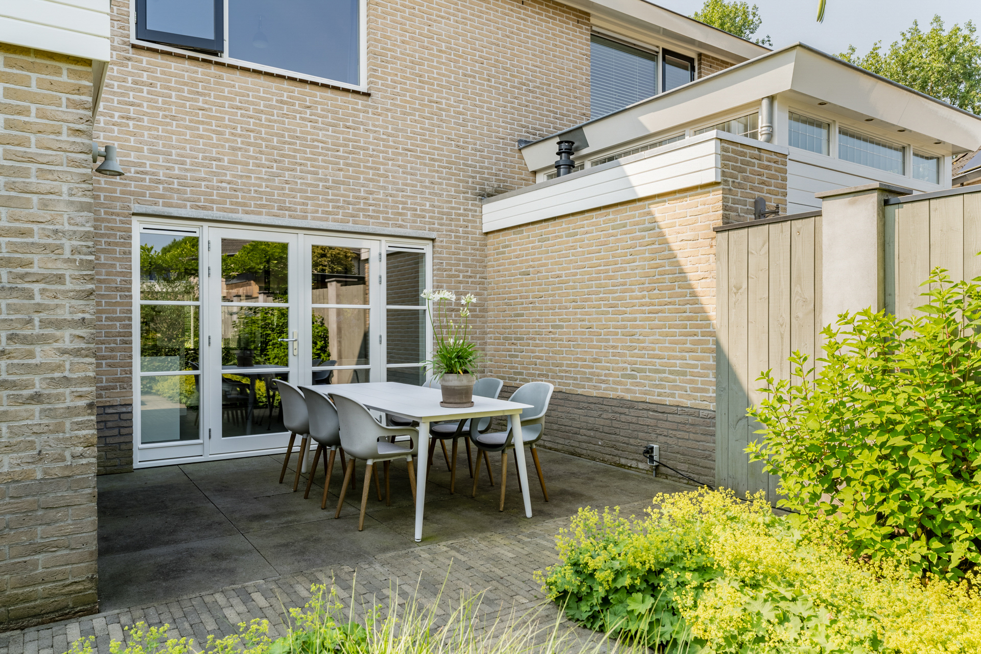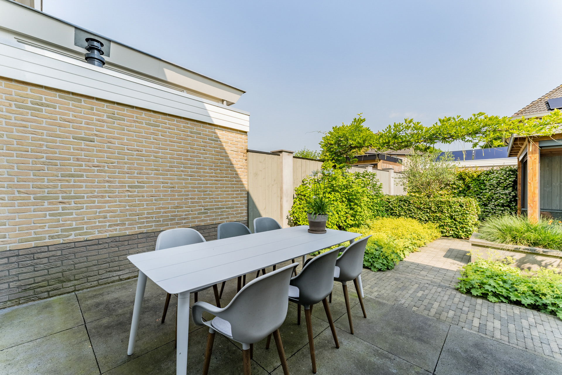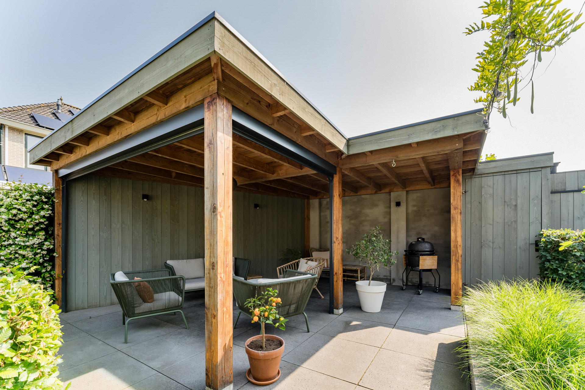In 2019 is de achtertuin ontworpen en aangelegd door een professionele hovenier. De schuttingen zijn vervangen en er is een grote veranda geplaatst. Met de automatisch bedienbare screens (2023) in de veranda zit je hier ook heerlijk beschut als het wat frisser wordt. Een ideale plek om te genieten van lange zomeravonden met vrienden en familie.