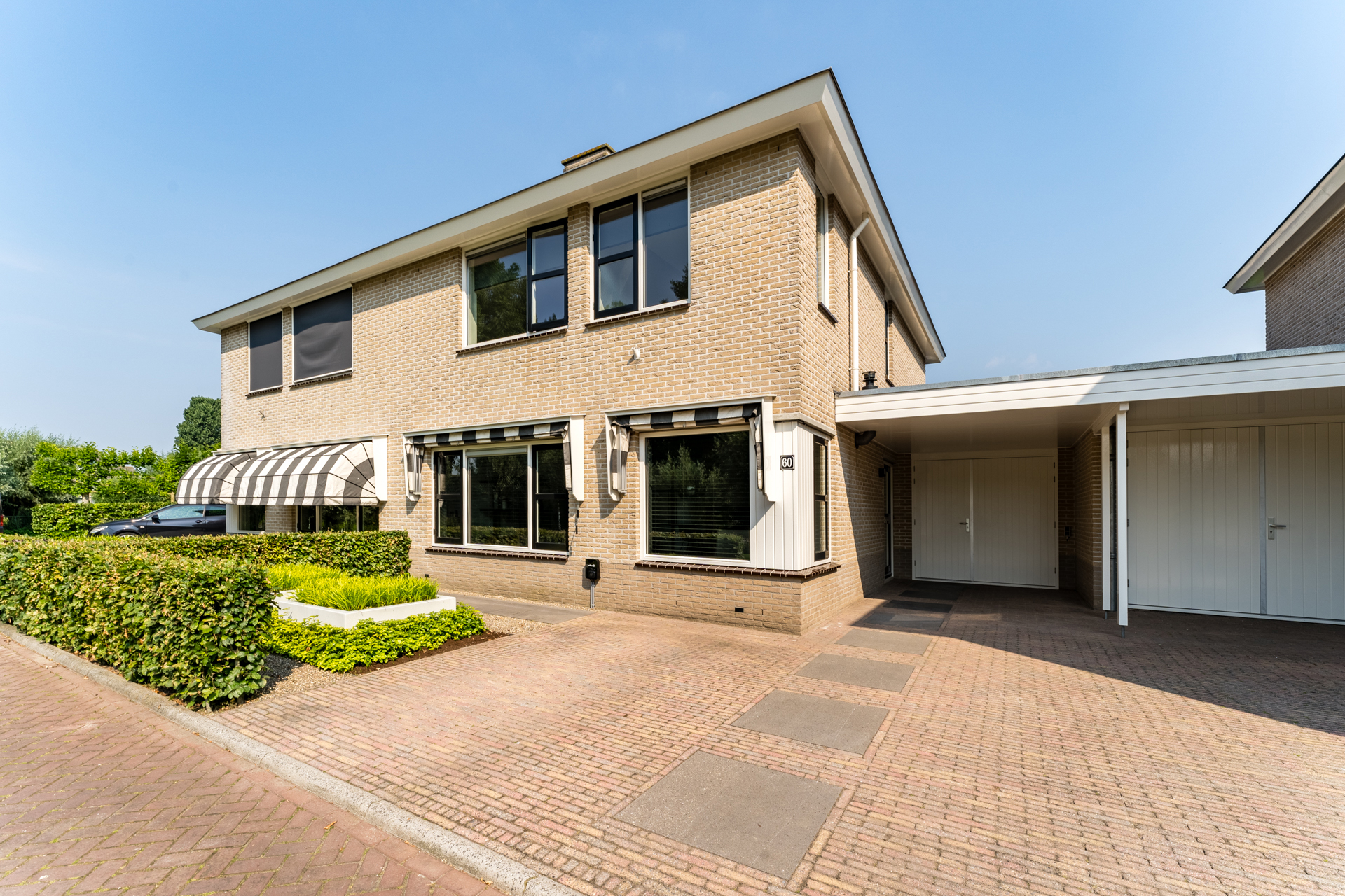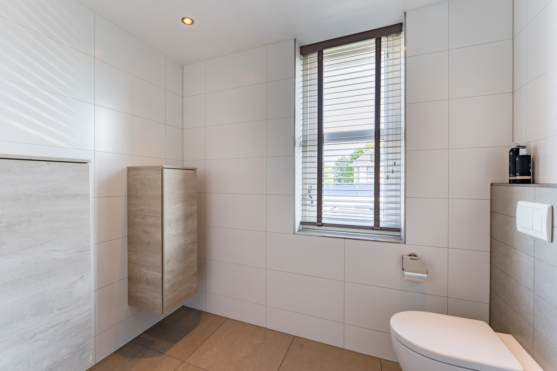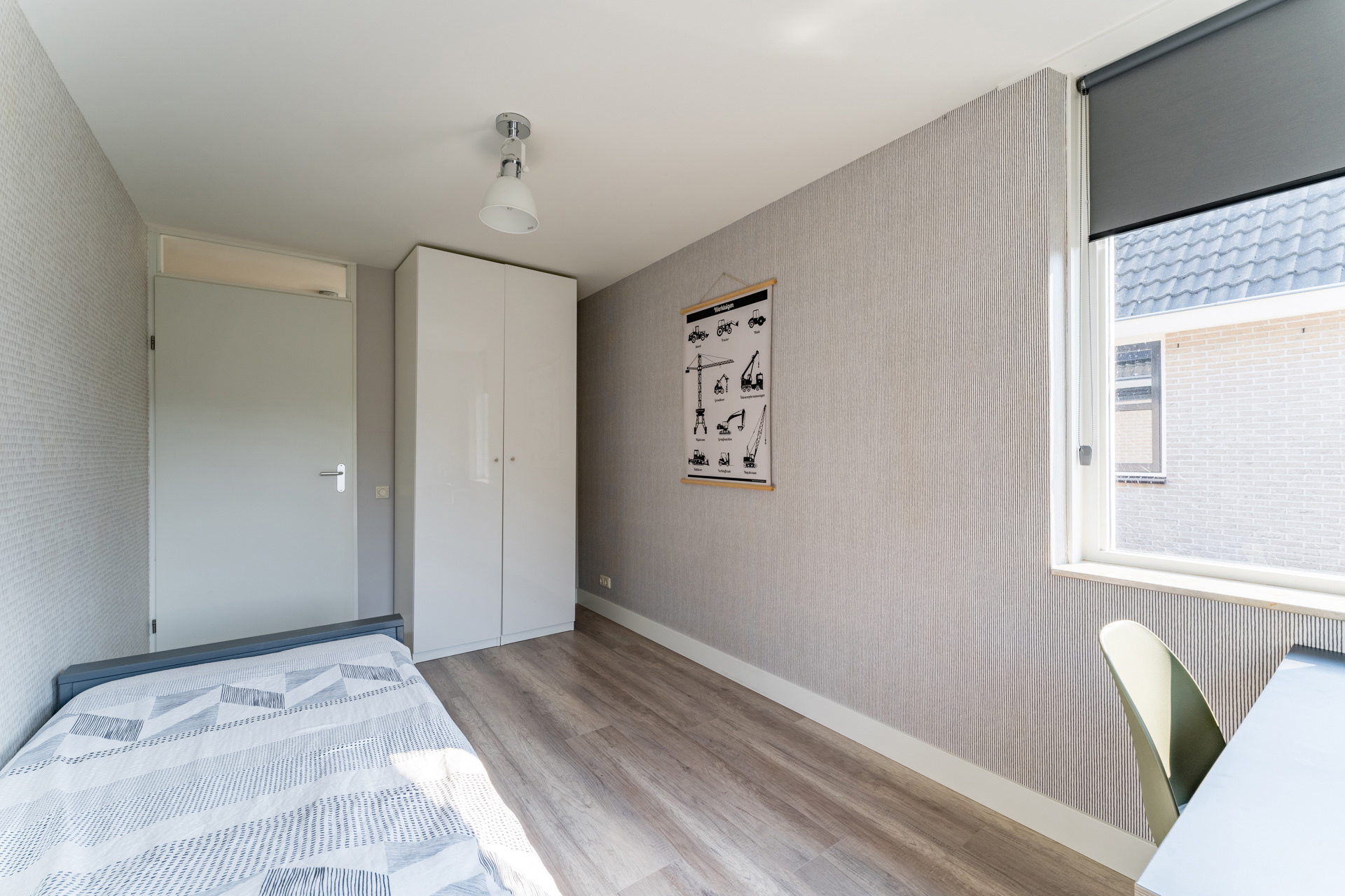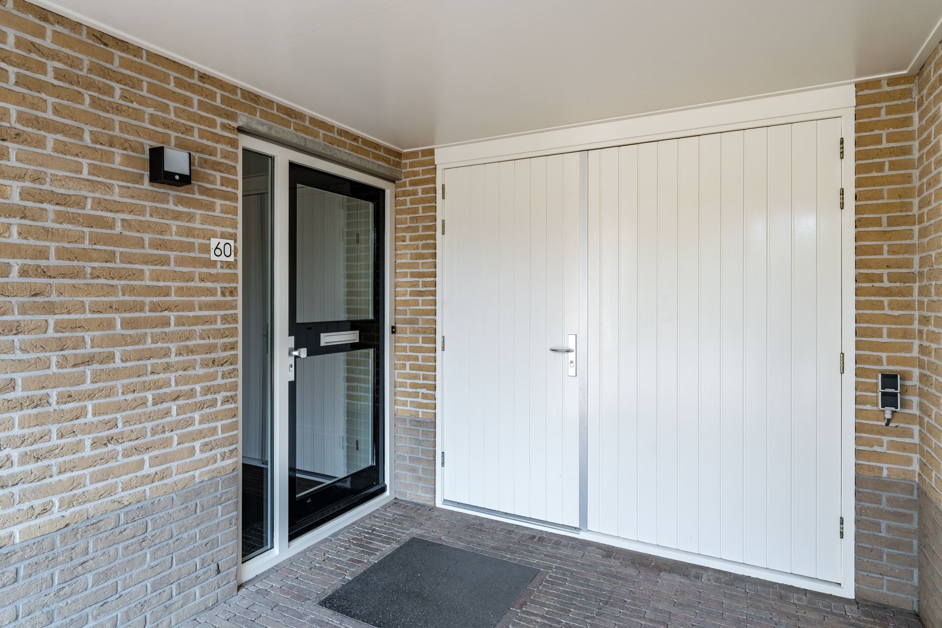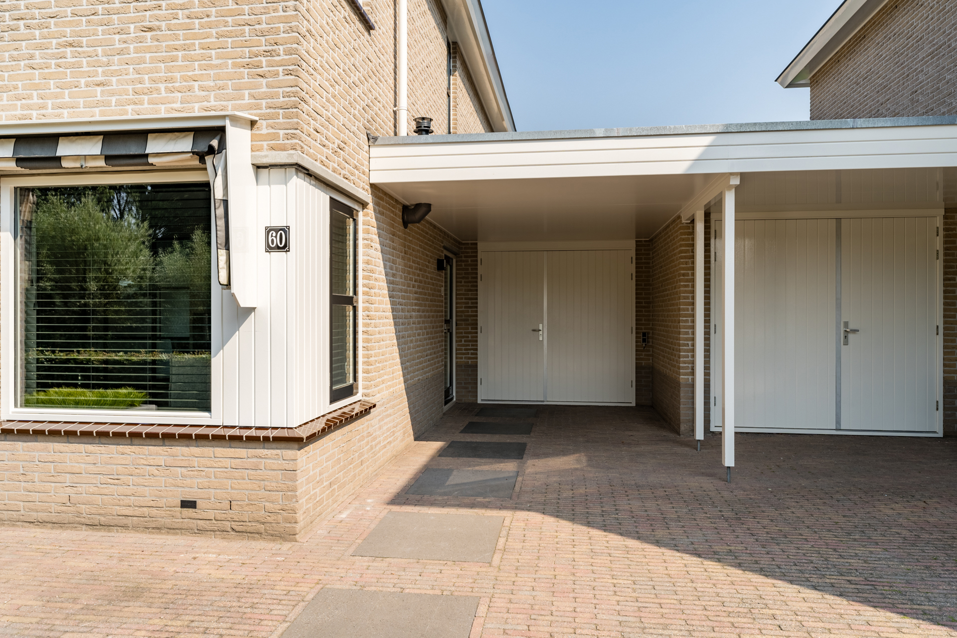 Vanuit de keuken kom je in de bijkeuken waar de wasmachine en wasdroger netjes achter de schuifdeuren zijn weggewerkt. De praktische garage is ongeveer 21 m² groot. Ideaal als bergruimte of om te klussen. In mei 2024 is het dak van de garage en de carport vervangen.