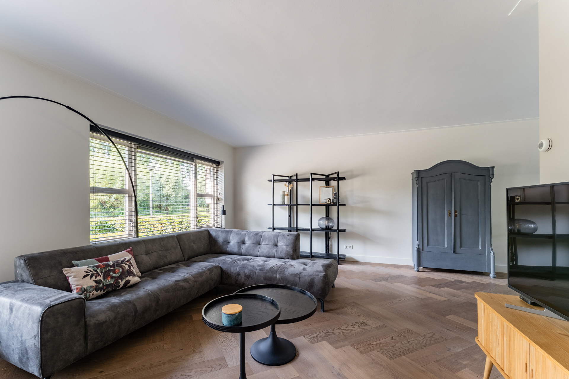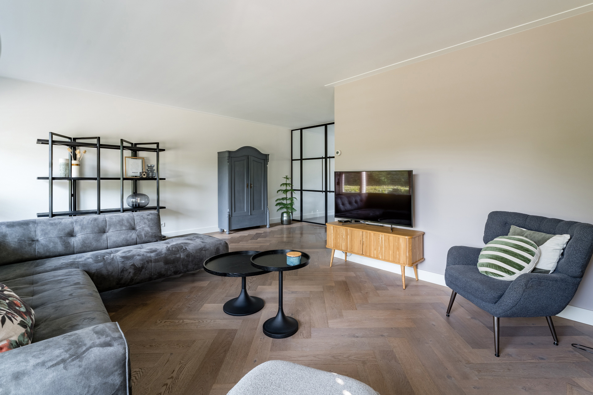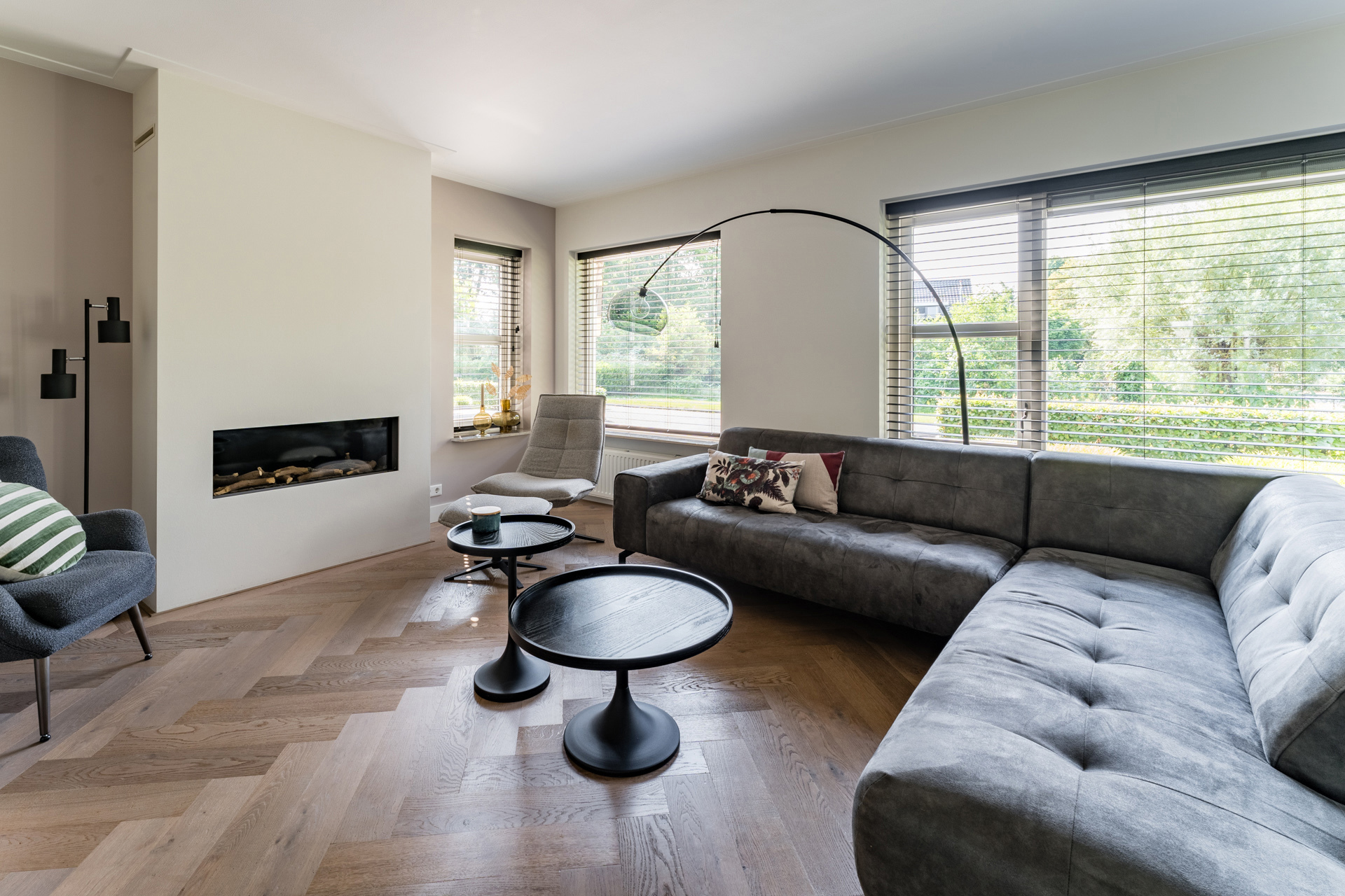 – Sfeervolle woonkamer met eikenhouten visgraatvloer
