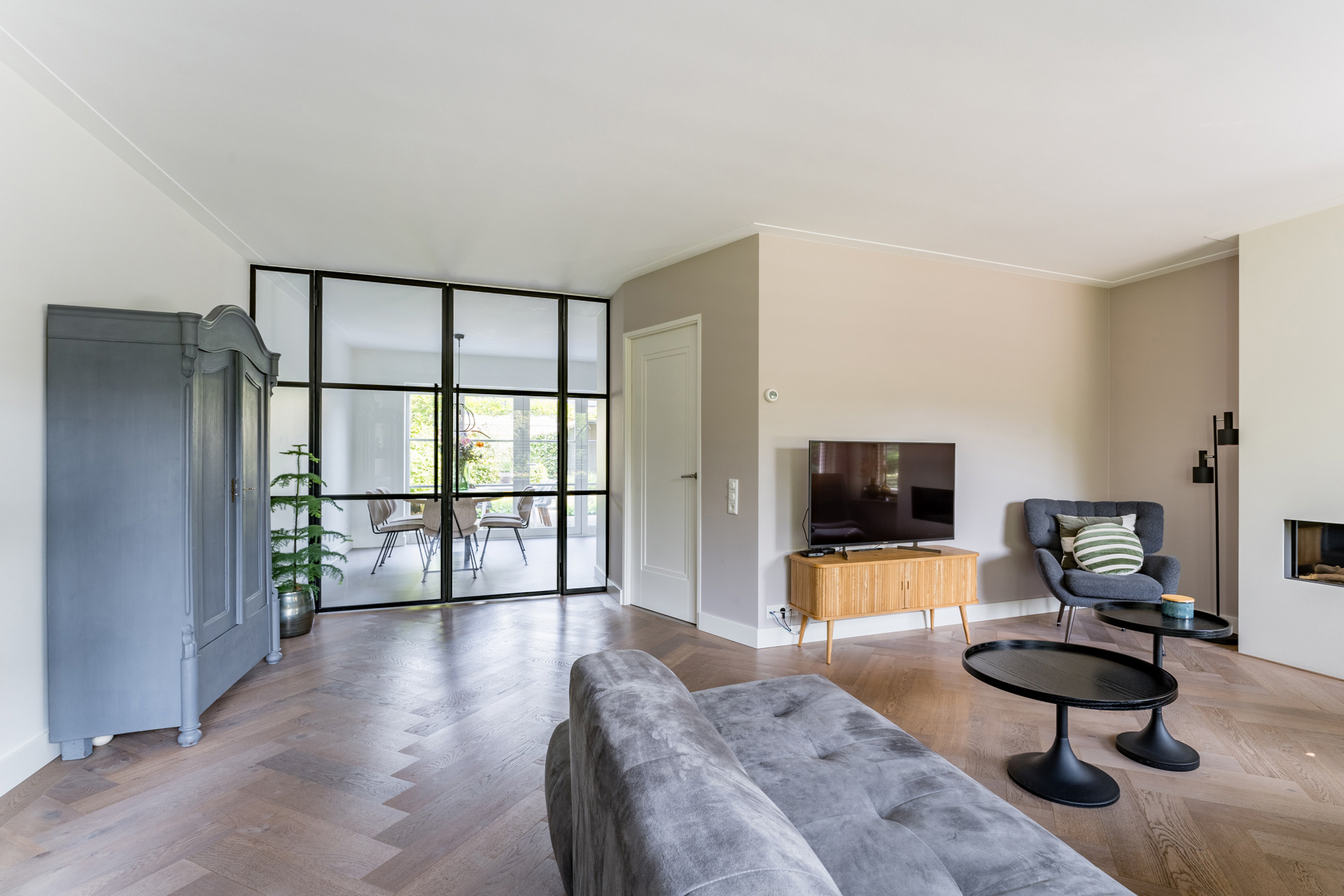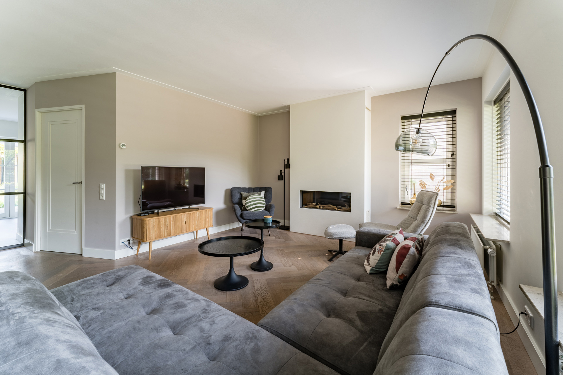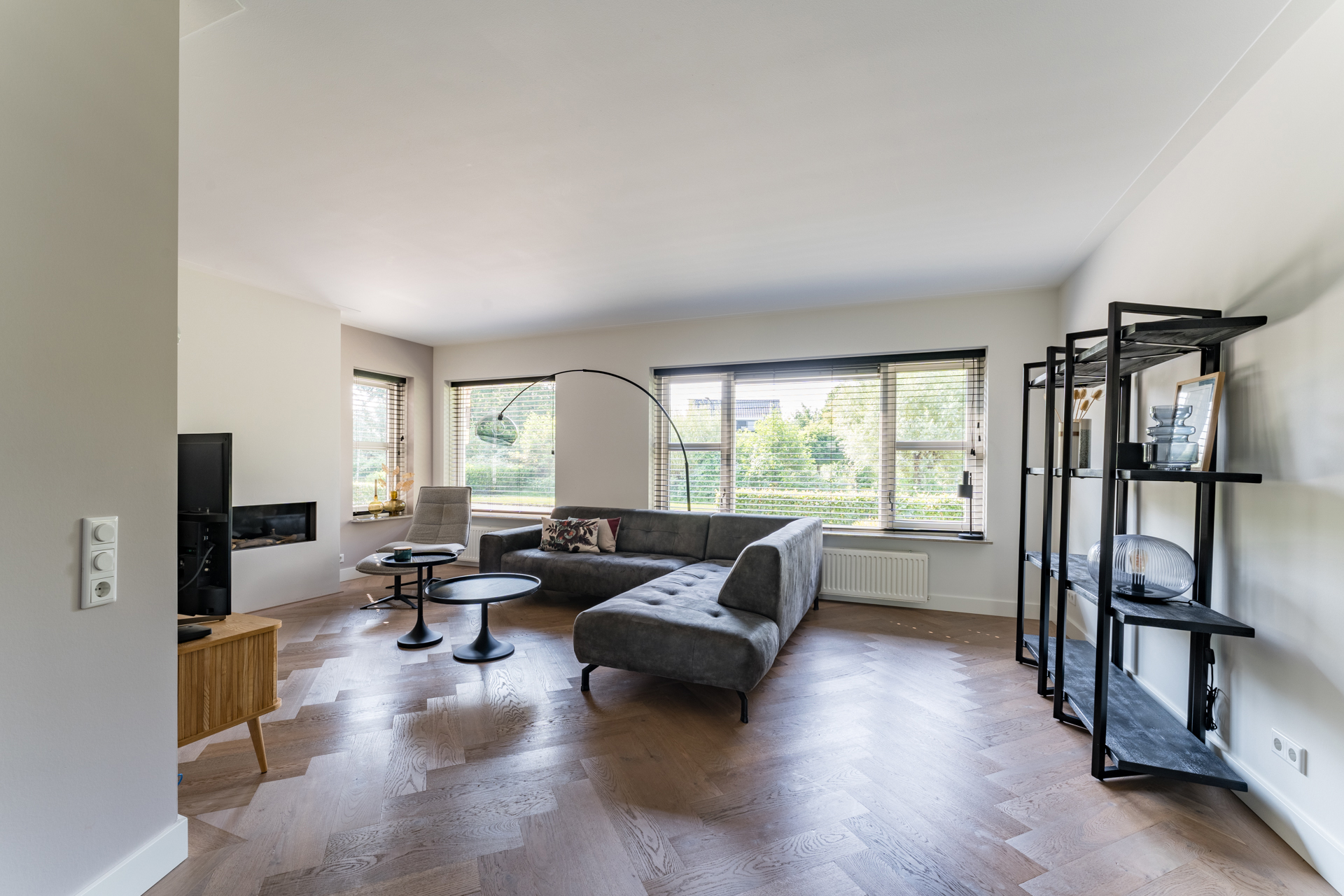 – Sfeervolle woonkamer met eikenhouten visgraatvloer