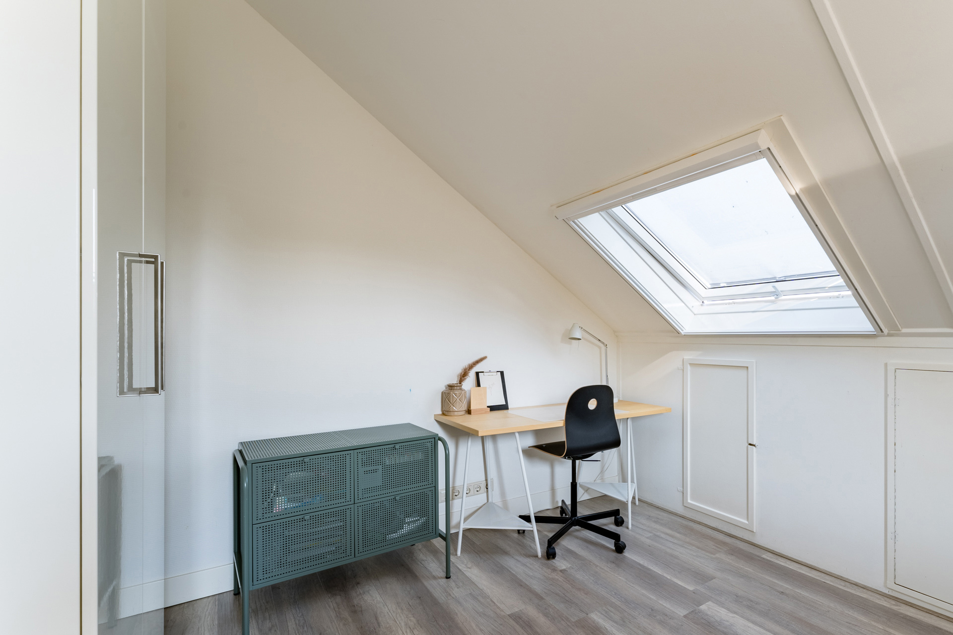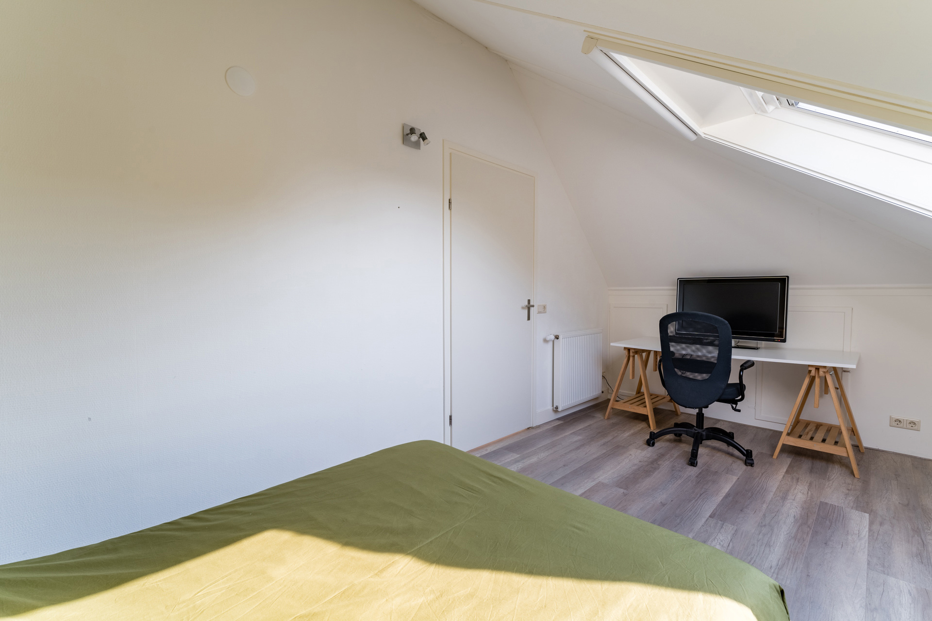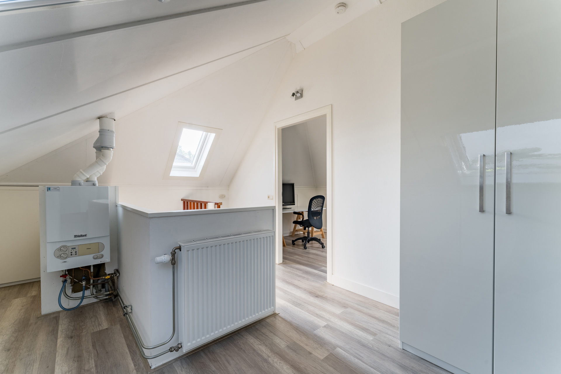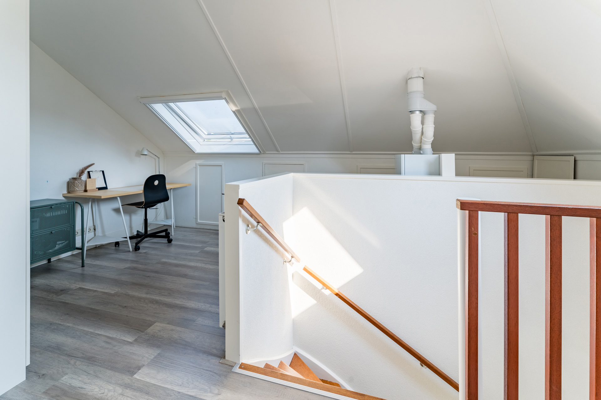 Nog een verdieping hoger is een ruime voorzolder met de cv-ketel; ideaal voor bijvoorbeeld een thuiswerkplek. Daarnaast is hier de 4e slaapkamer te vinden. Achter de schotten is praktische bergruimte.