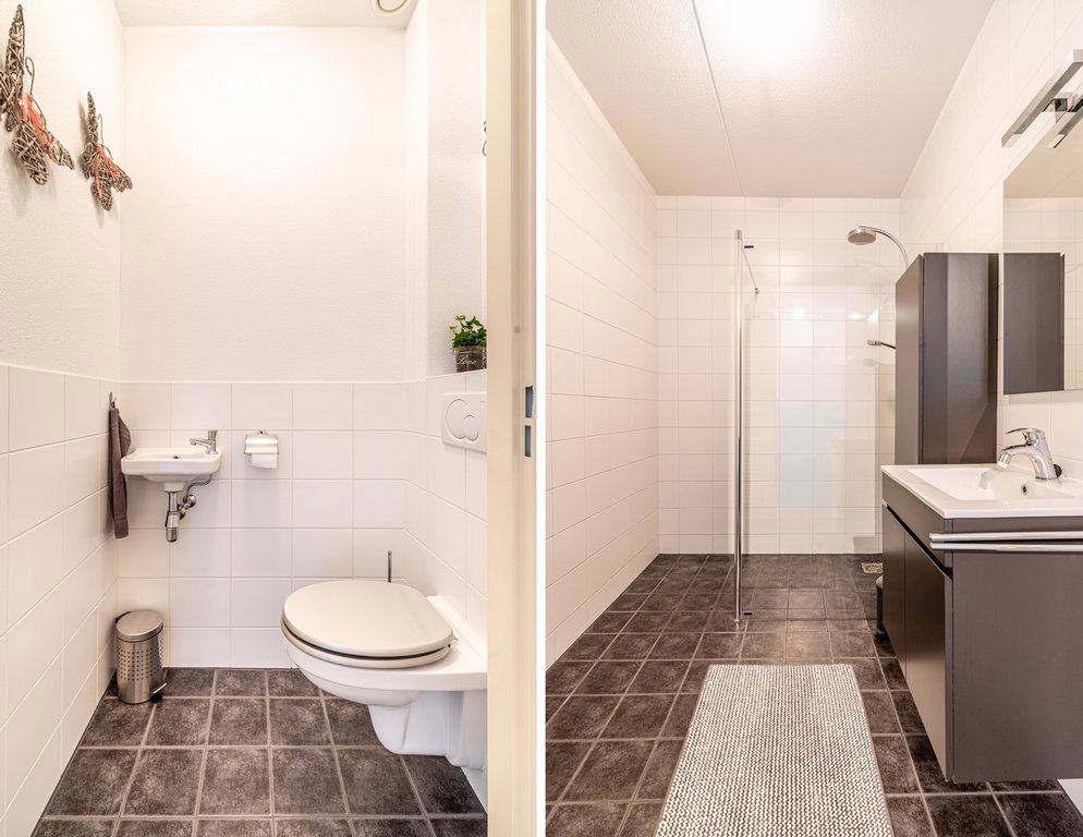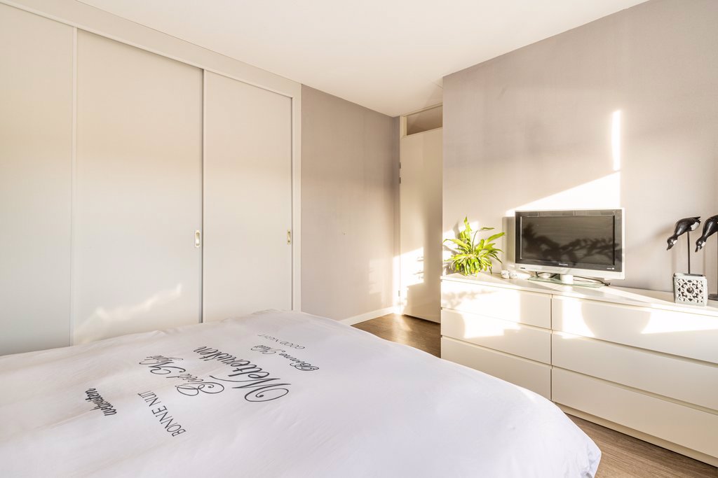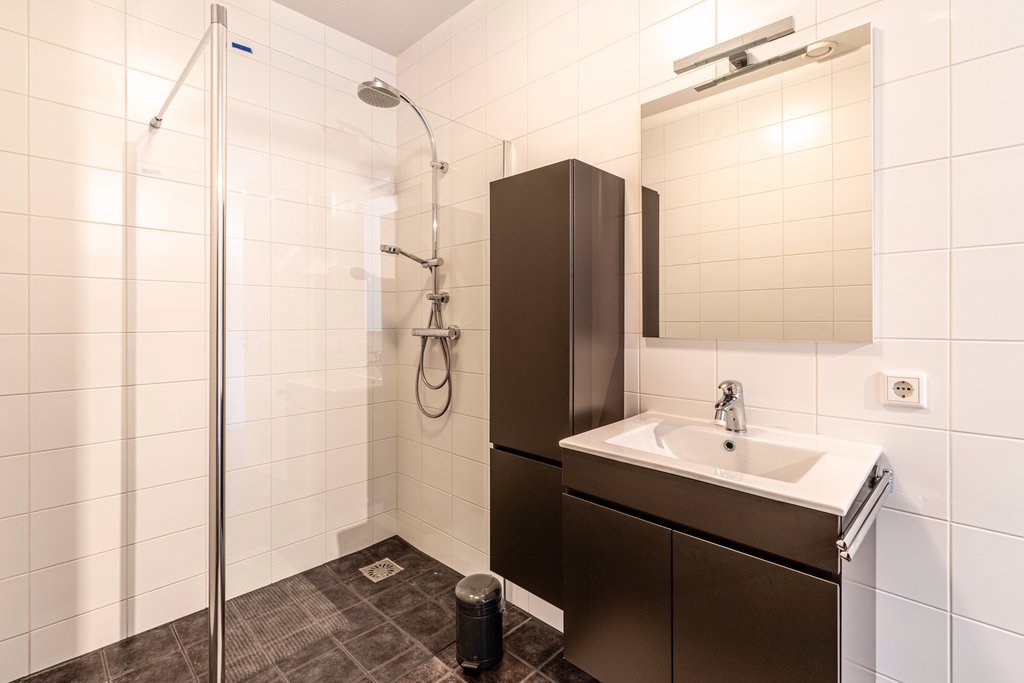 De ruime slaapkamer heeft een grote inbouwkast. De badkamer is tot bovenaan betegeld en heeft een designradiator, inloopdouche en wasmeubel. Er is een apart toilet aanwezig; ideaal voor als er bezoek is. In de bergkast hangt de cv-ketel, staat de wasmachine en is bergruimte aanwezig.