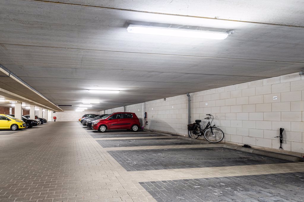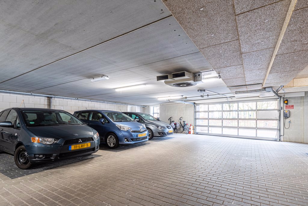 In de parkeergarage op de begane grond heeft elke bewoner zijn vaste parkeerplaats. Deze parkeergarage is via een automatische toegangsdeur bereikbaar. Verder hoort er een berging bij dit appartement. Door de grote hoogte is deze voorzien van een vliering, waardoor je bijna 2x zoveel spullen kwijt kunt.
