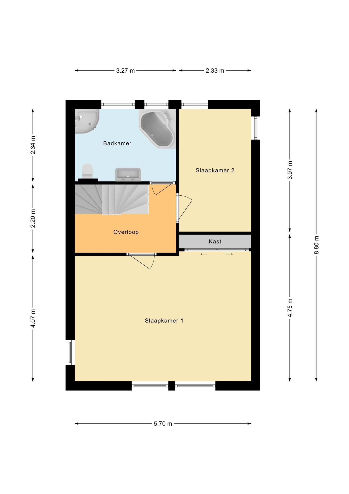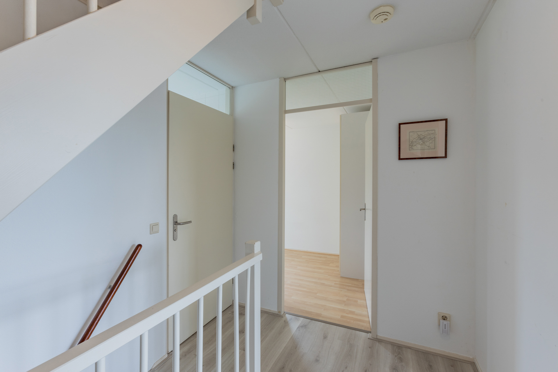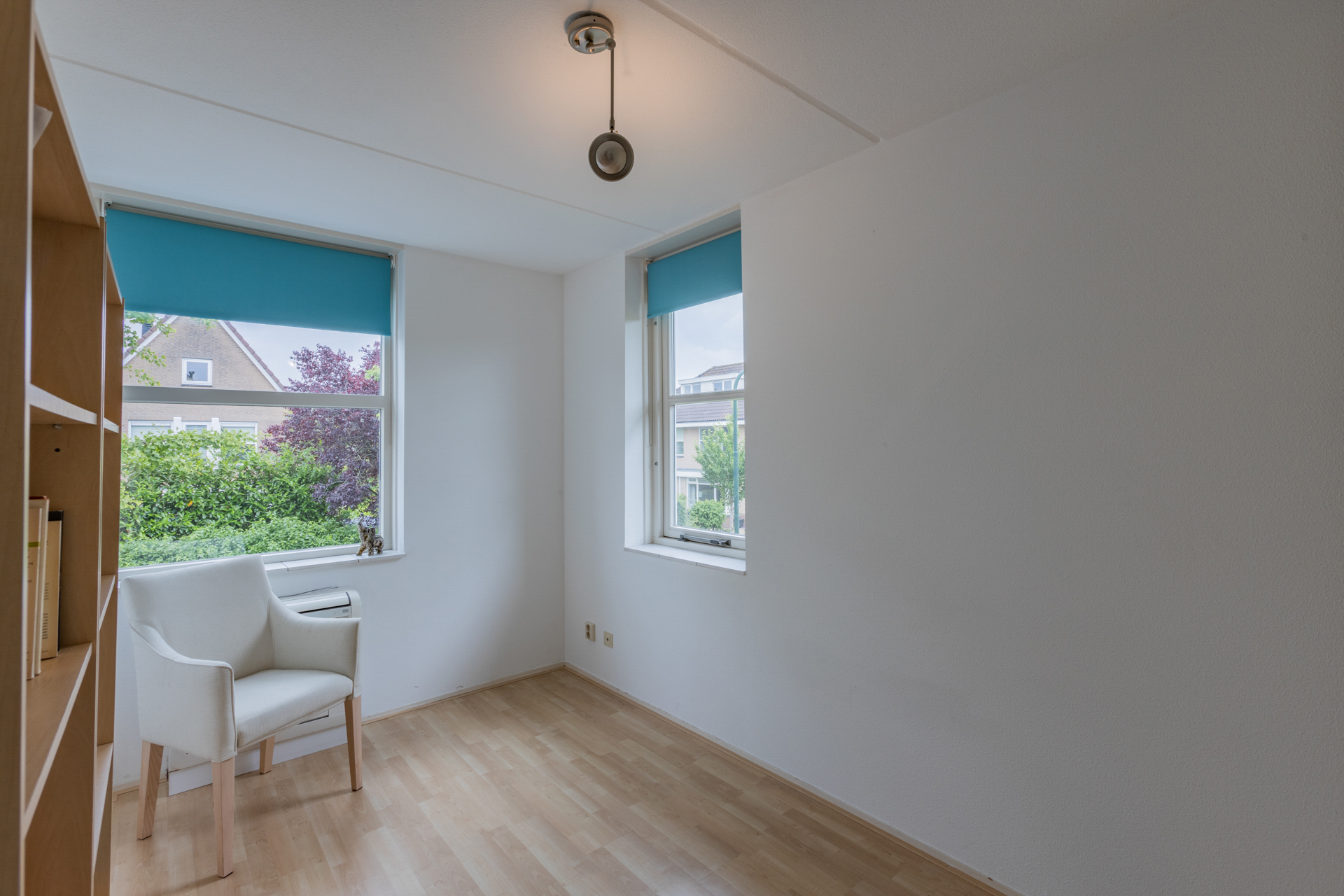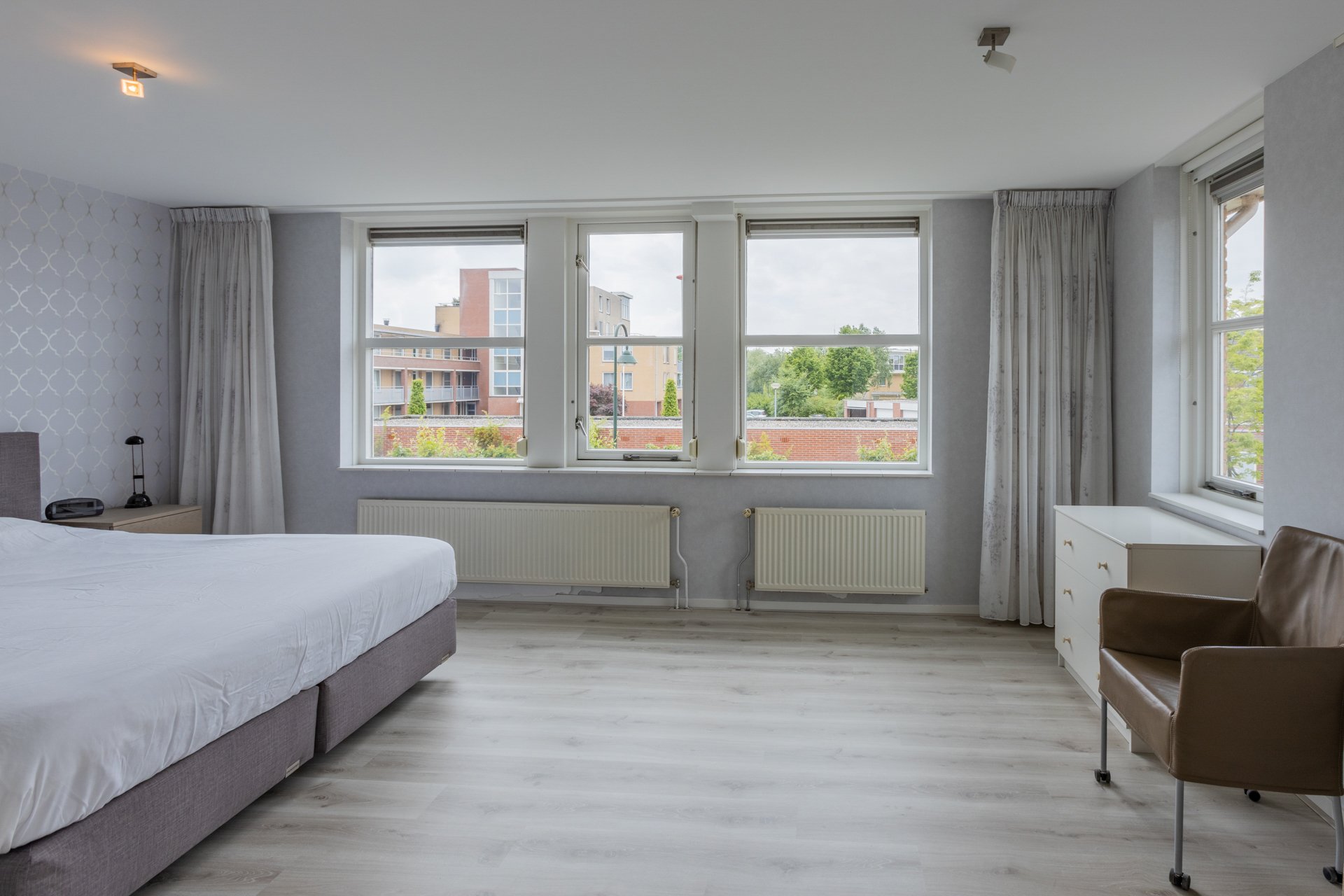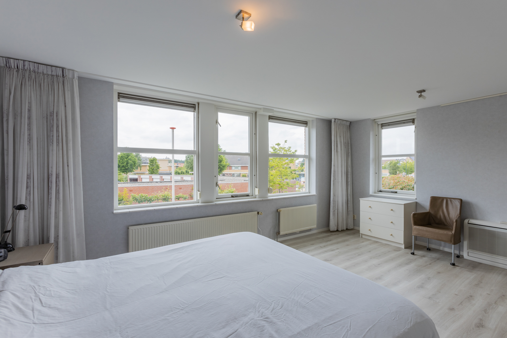 Op de eerste verdieping zijn twee slaapkamers samen gevoegd tot één grote kamer. Desgewenst is het eenvoudig om hier weer twee kamers van te maken; de deur is nog aanwezig. De andere slaapkamer is ook van een mooi formaat. De badkamer in neutrale kleurstelling is voorzien van een badmeubel met dubbele wastafels, bad, douche, en toilet. Het geheel ziet er nog keurig uit. Mocht je echter andere wensen hebben, dan is de ruimte dermate groot en licht dat iedere wellnessdroom hier gerealiseerd kan worden.