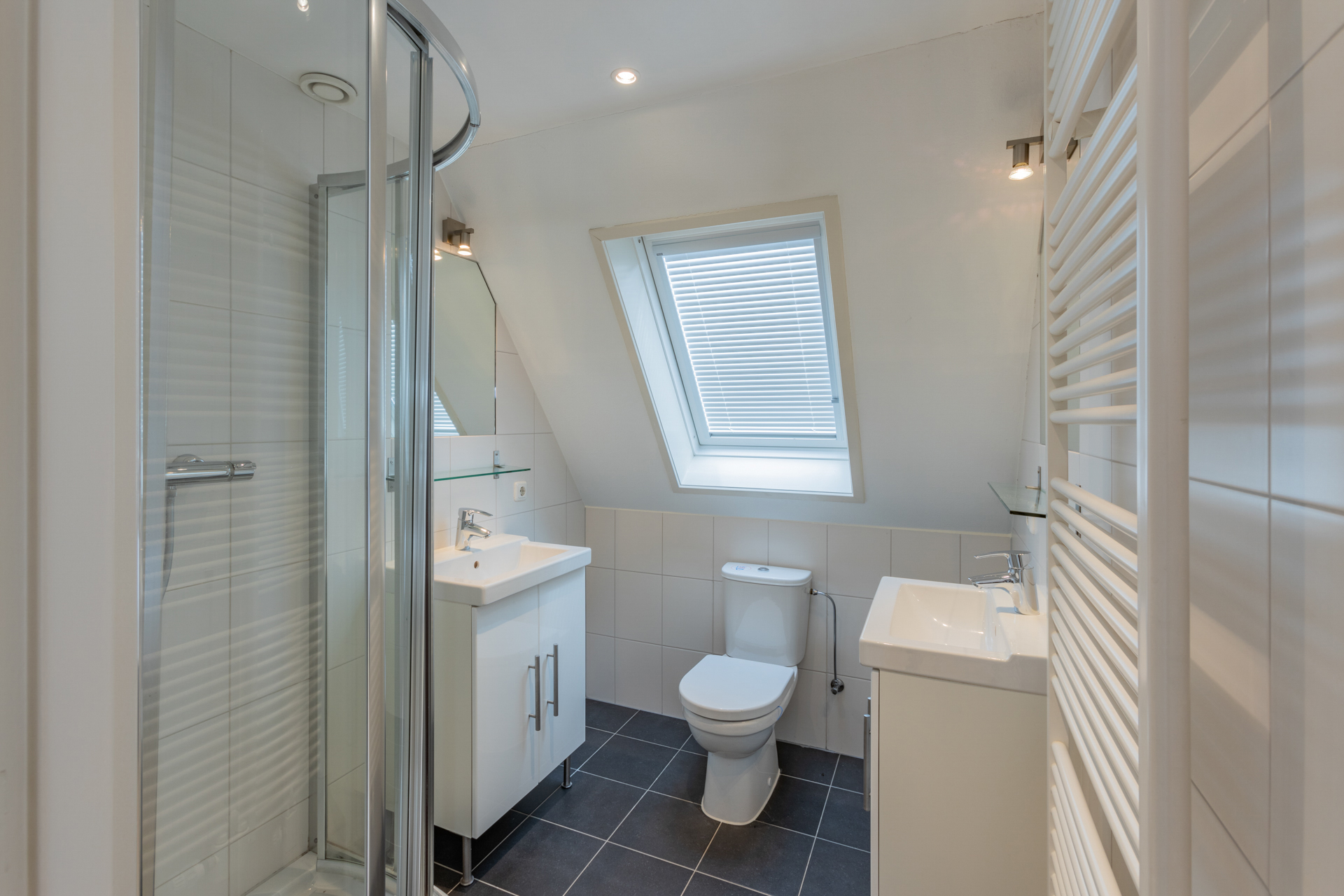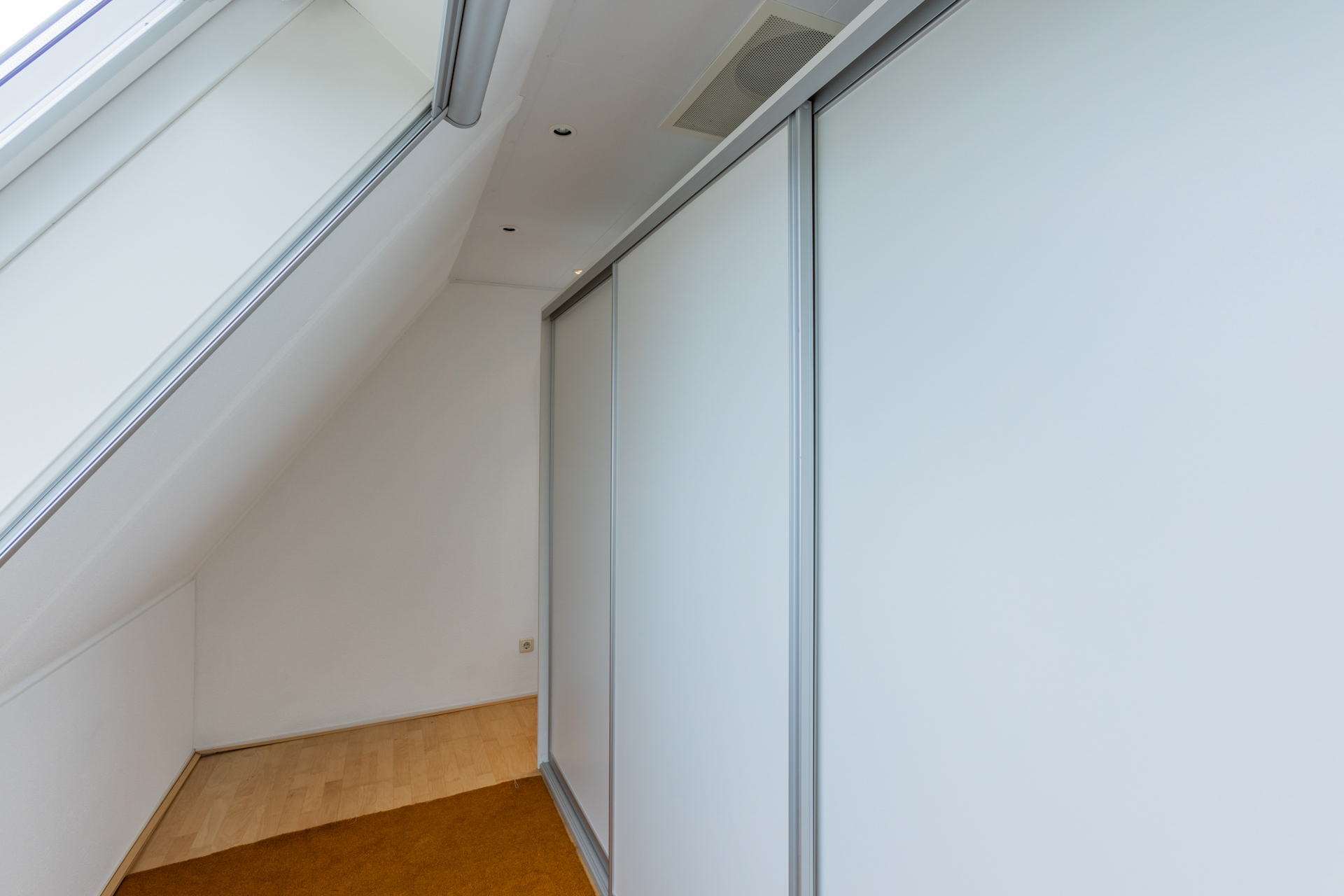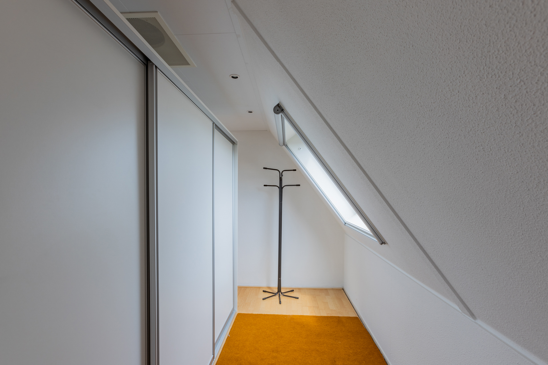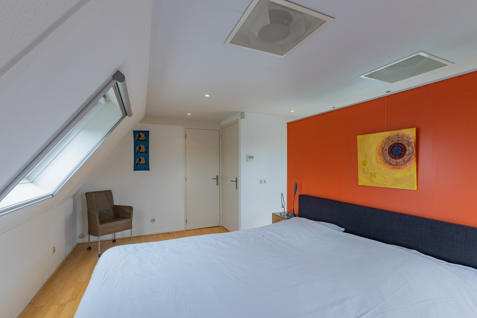 De tweede verdieping is in gebruik als slaapkamer met een grote kast als roomdivider. Door het plaatsen van een wand kun je hier makkelijk 2 slaapkamers van maken. Ideaal is de 2e badkamer (2007) die hier is gerealiseerd met douche, toilet, wastafels en vloerverwarming. De aparte kamer voor de wasmachine, wasdroger en cv-ketel is van een groot formaat zodat, indien nodig, hier ook nog een extra kamer gecreëerd kan worden. Op de vliering, bereikbaar met een vlizotrap, is extra bergruimte beschikbaar.