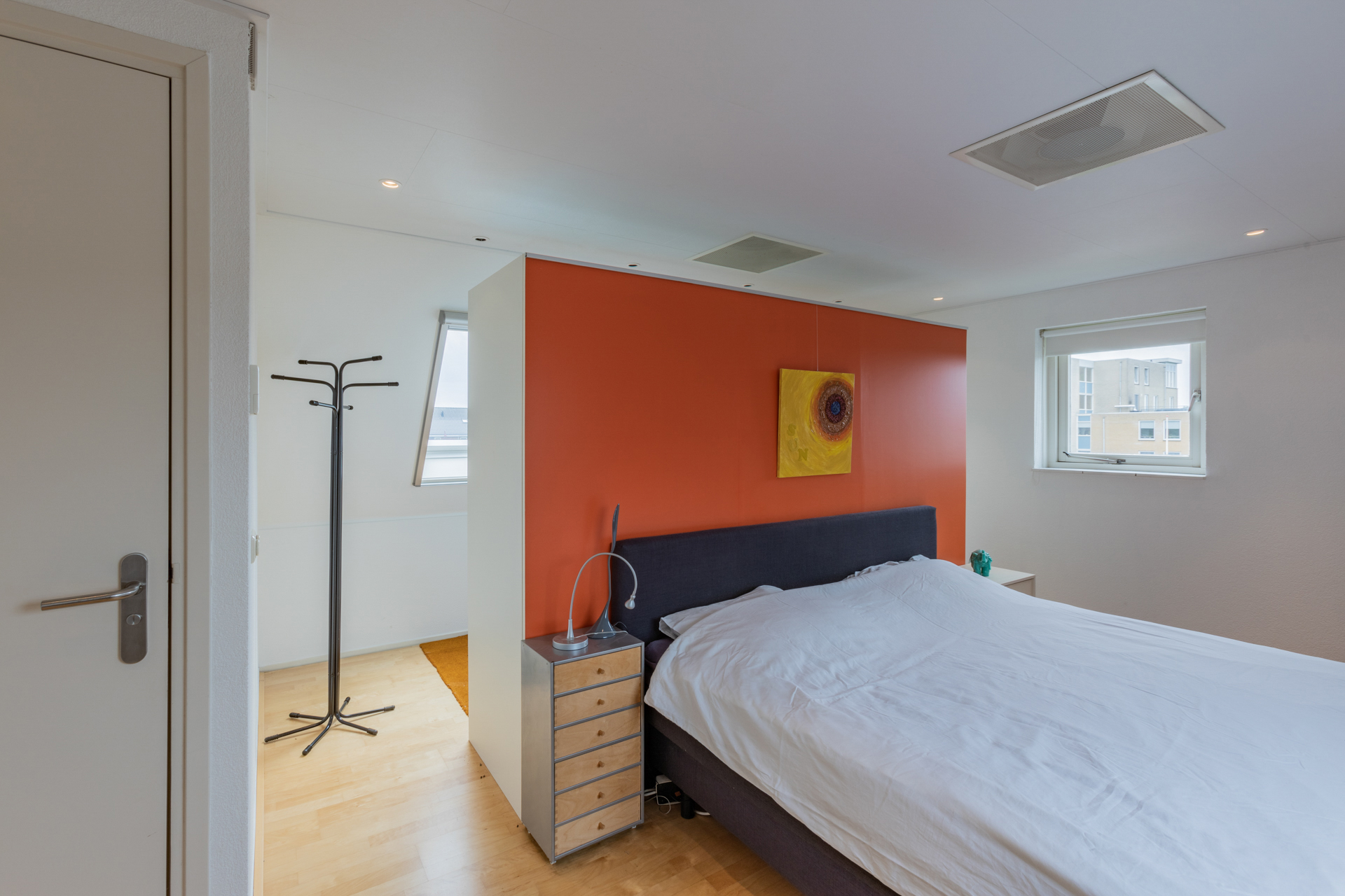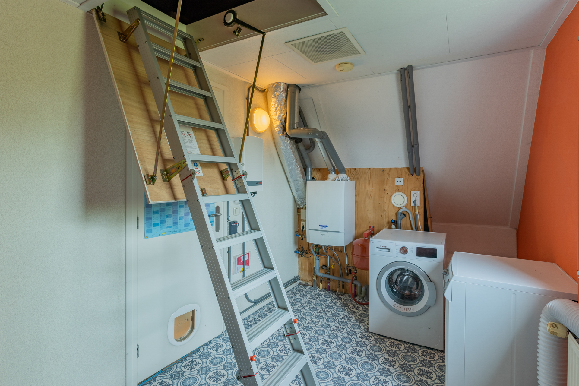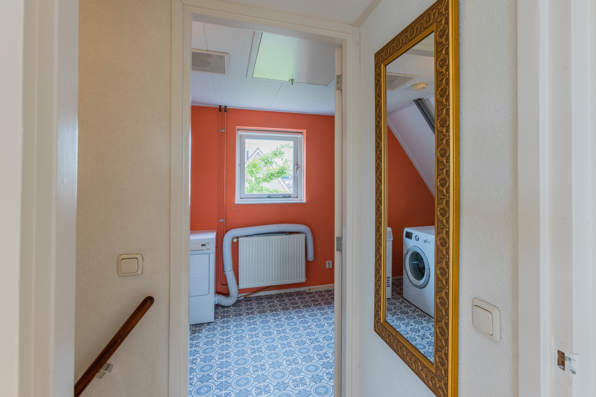 De tweede verdieping is in gebruik als slaapkamer met een grote kast als roomdivider. Door het plaatsen van een wand kun je hier makkelijk 2 slaapkamers van maken. Ideaal is de 2e badkamer (2007) die hier is gerealiseerd met douche, toilet, wastafels en vloerverwarming. De aparte kamer voor de wasmachine, wasdroger en cv-ketel is van een groot formaat zodat, indien nodig, hier ook nog een extra kamer gecreëerd kan worden. Op de vliering, bereikbaar met een vlizotrap, is extra bergruimte beschikbaar.