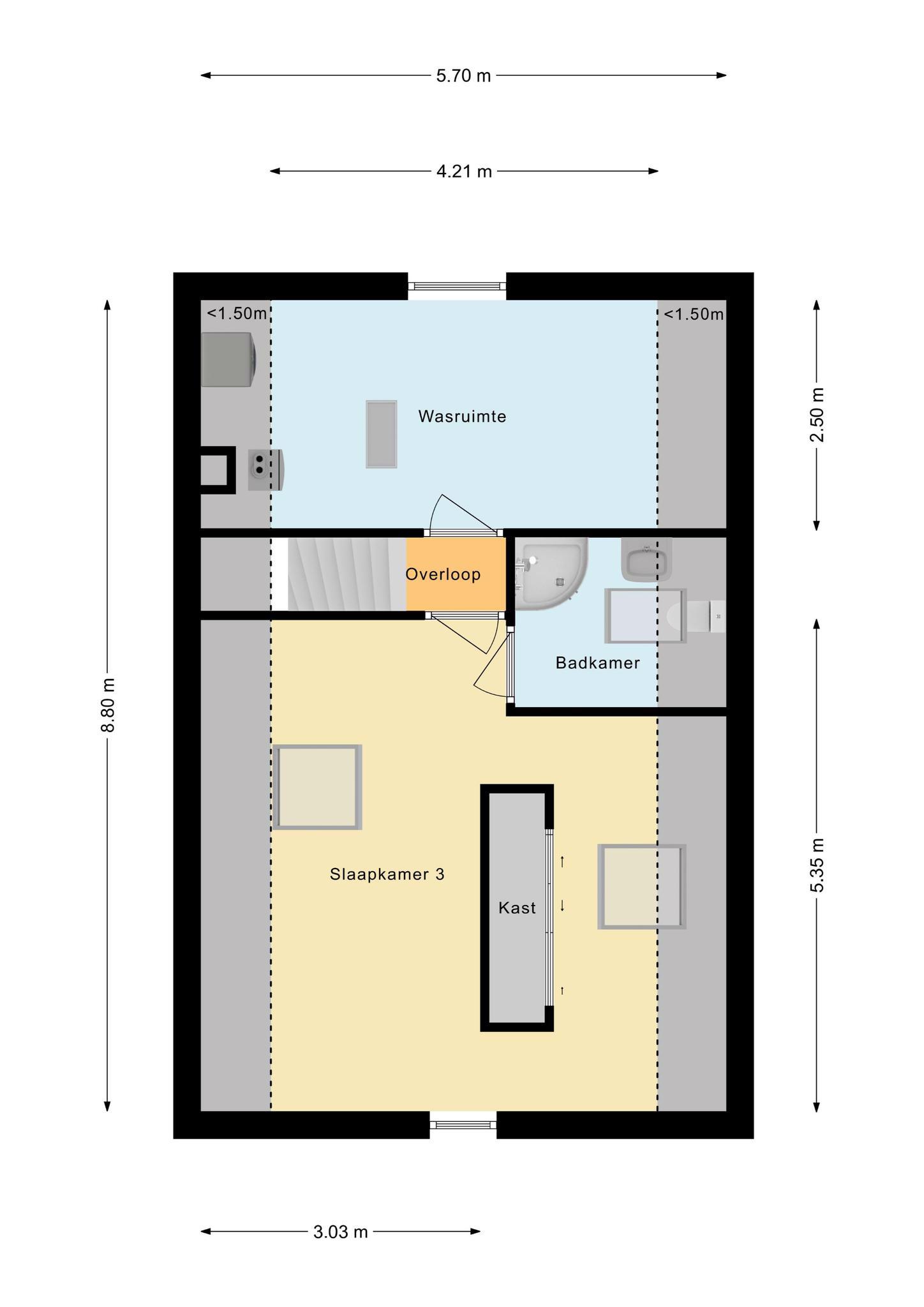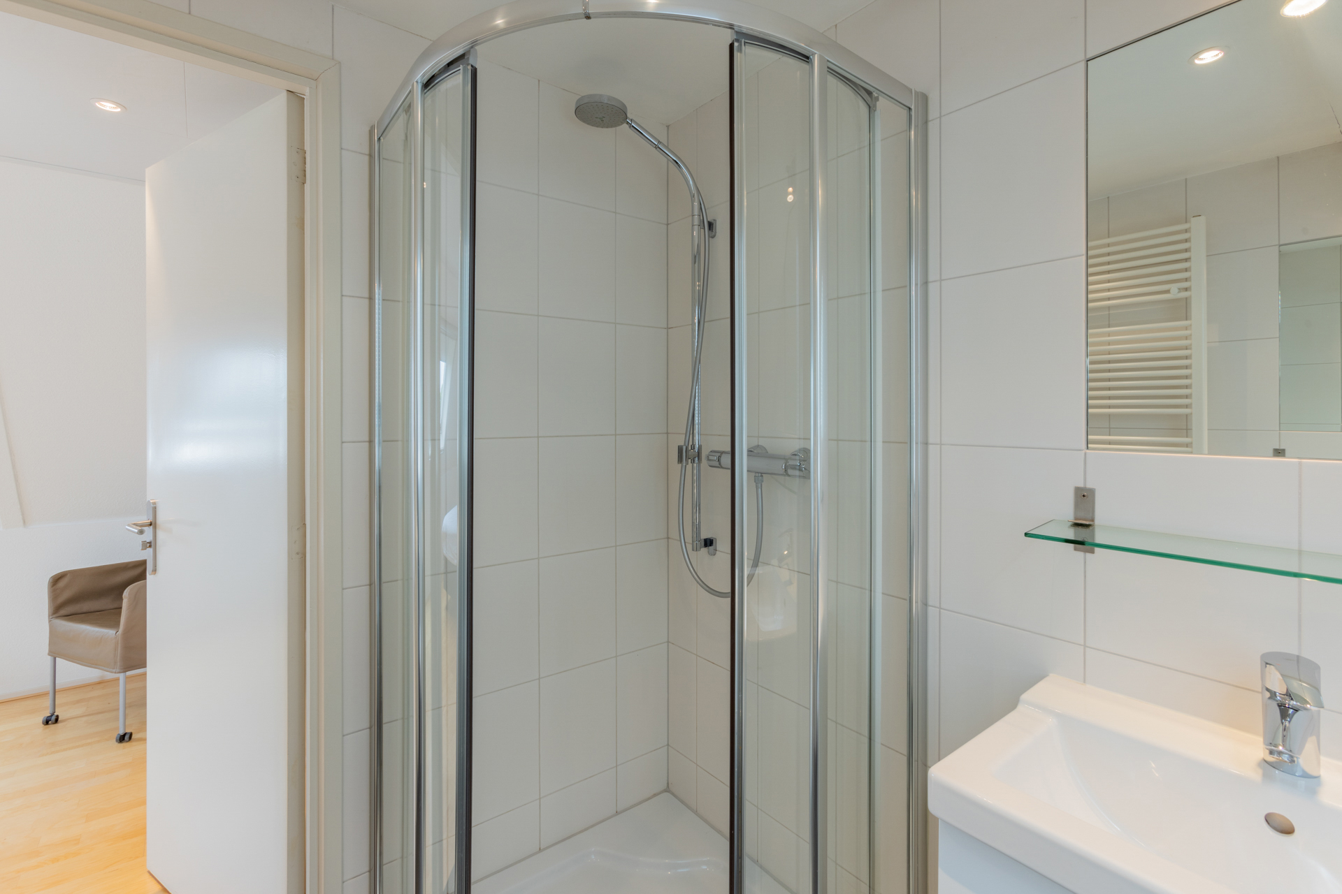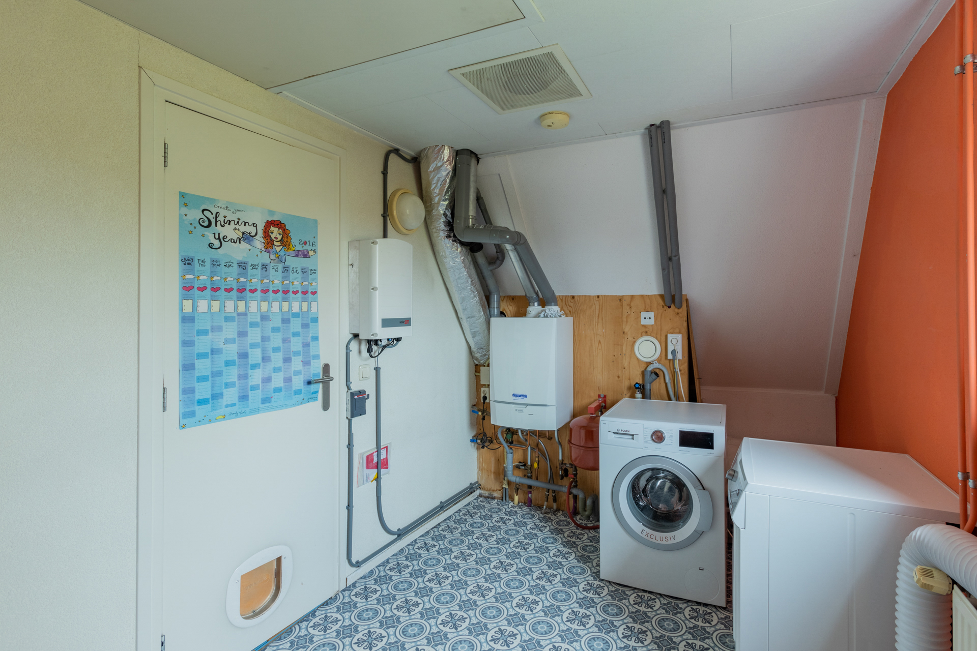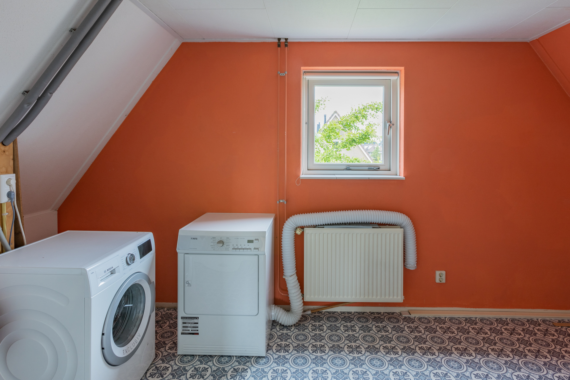 De tweede verdieping is in gebruik als slaapkamer met een grote kast als roomdivider. Door het plaatsen van een wand kun je hier makkelijk 2 slaapkamers van maken. Ideaal is de 2e badkamer (2007) die hier is gerealiseerd met douche, toilet, wastafels en vloerverwarming. De aparte kamer voor de wasmachine, wasdroger en cv-ketel is van een groot formaat zodat, indien nodig, hier ook nog een extra kamer gecreëerd kan worden. Op de vliering, bereikbaar met een vlizotrap, is extra bergruimte beschikbaar.