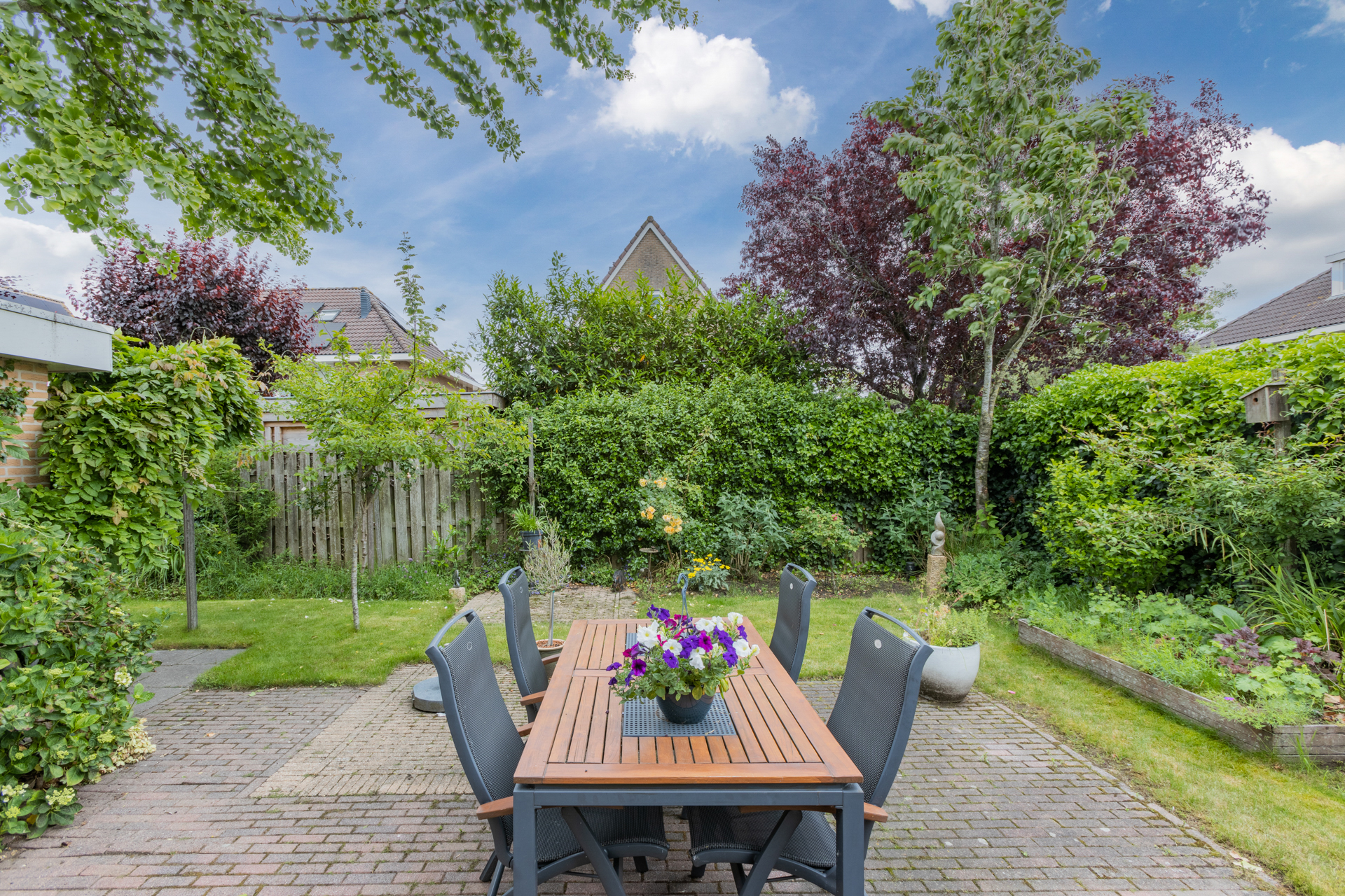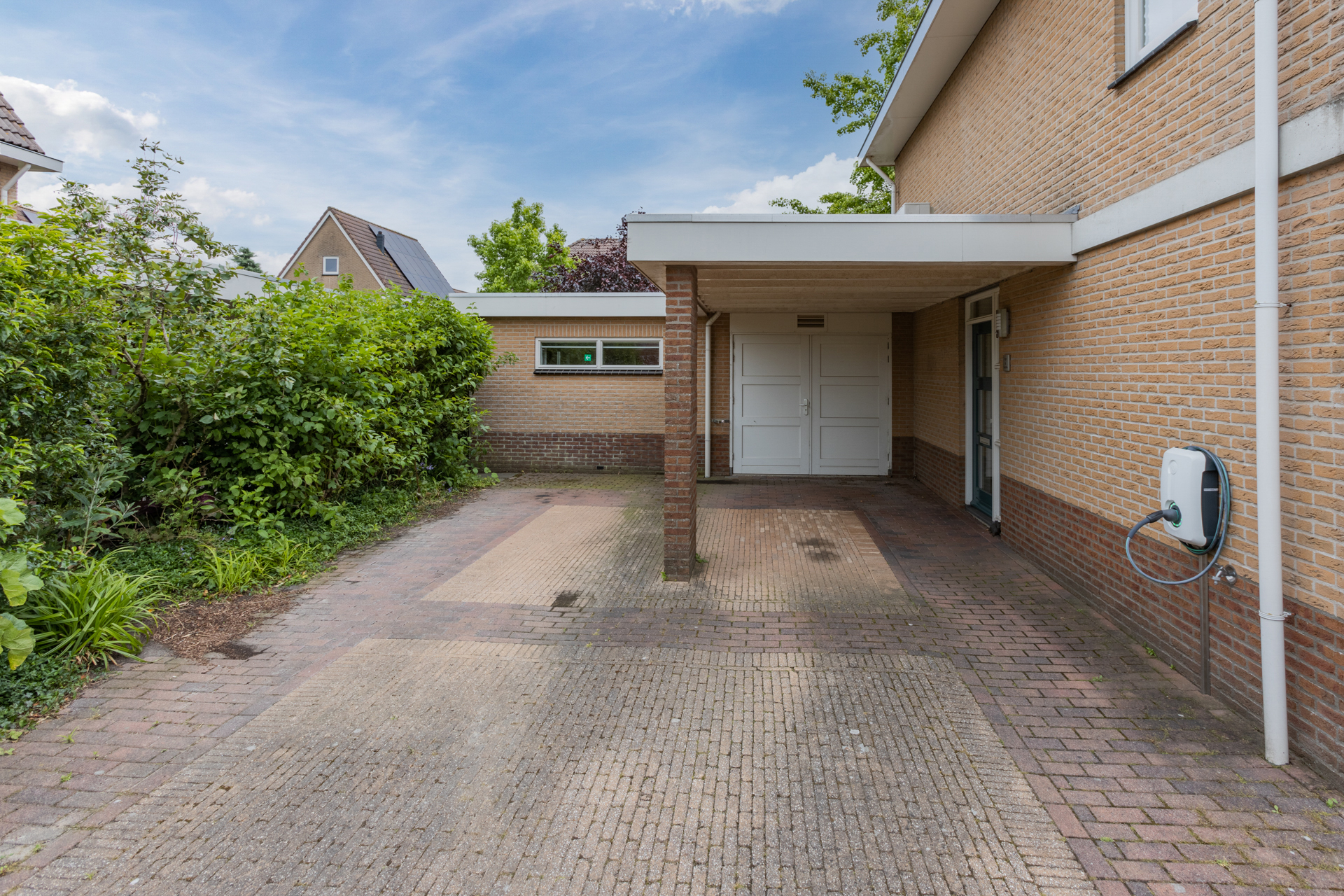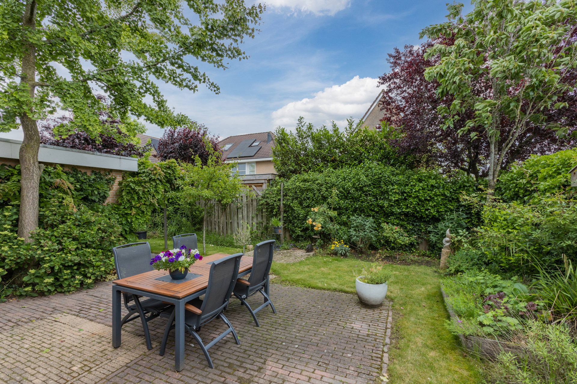 De achtertuin is gelegen op het oosten en is fraai aangelegd. De voortuin is 3 jaar geleden opnieuw aangelegd. Met een brede oprit is er voldoende ruimte om meerdere auto’s op kwijt te kunnen. Een elektrische auto kun je op eigen terrein opladen met de laadpaal.