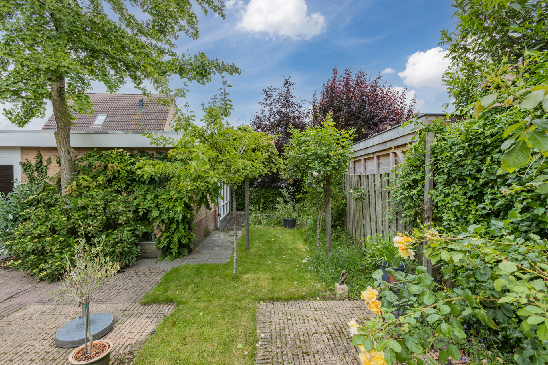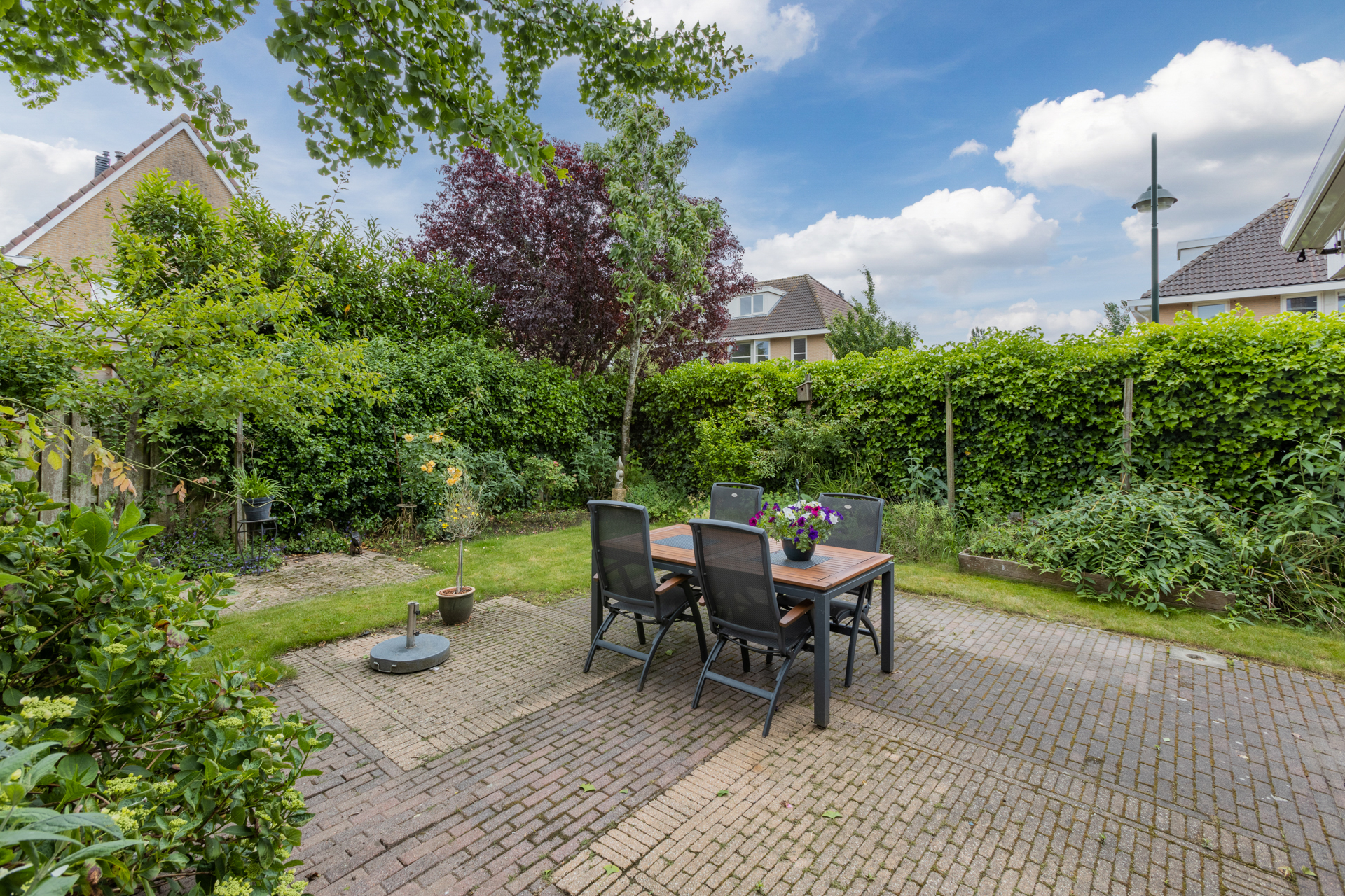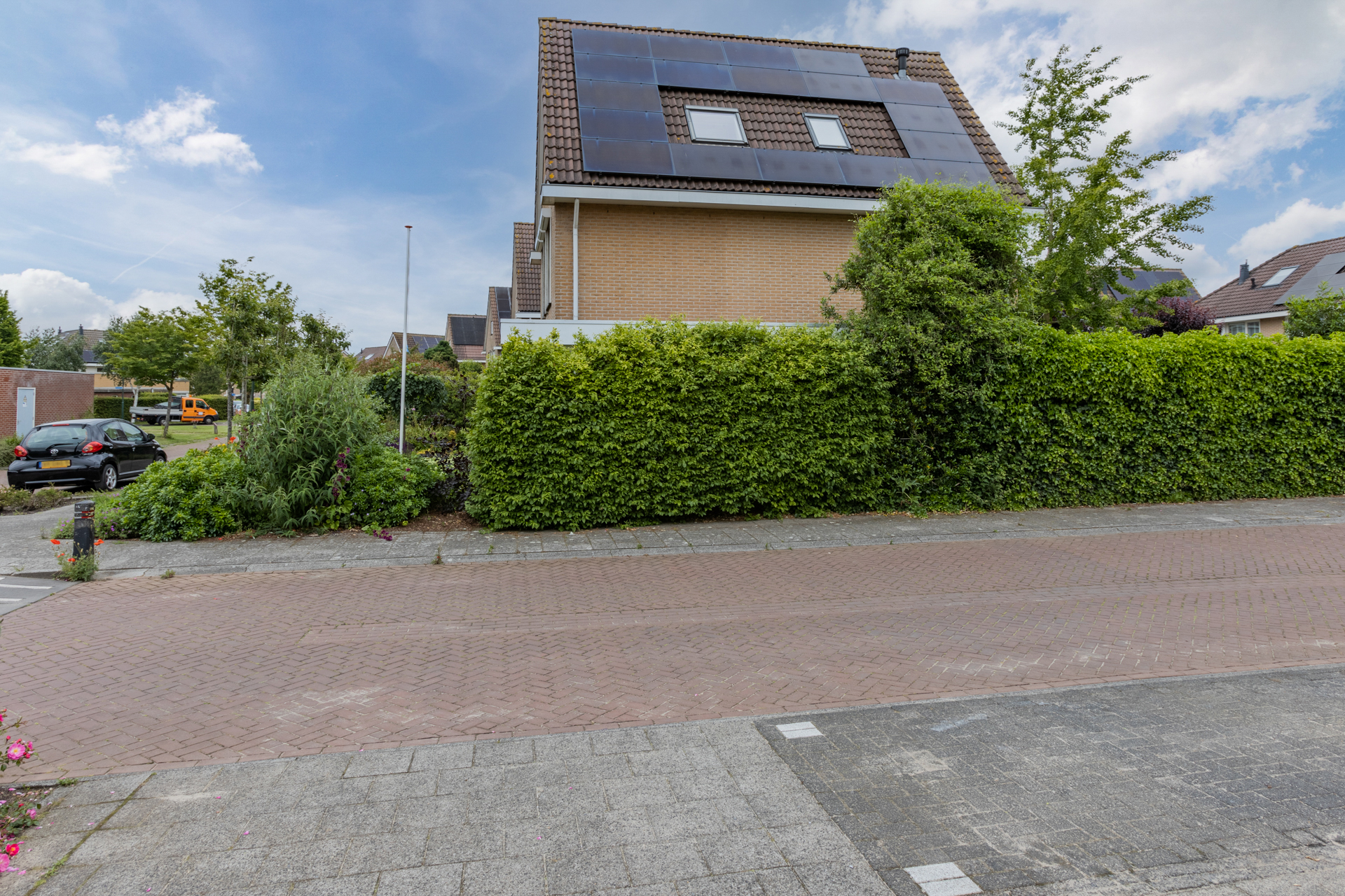 De achtertuin is gelegen op het oosten en is fraai aangelegd. De voortuin is 3 jaar geleden opnieuw aangelegd. Met een brede oprit is er voldoende ruimte om meerdere auto’s op kwijt te kunnen. Een elektrische auto kun je op eigen terrein opladen met de laadpaal.