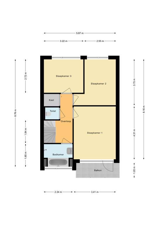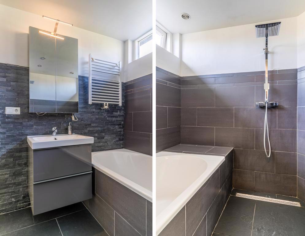 De eerste verdieping beschikt over 3 slaapkamers met laminaatvloer. De slaapkamer aan de voorzijde heeft een groot balkon. De badkamer uit 2013 heeft een donkere kleurstelling en beschikt over een wastafelmeubel, bad, regendouche en designradiator. Er is een apart toilet aanwezig. Op de overloop is ook een grote inbouwkast te vinden. Kortom, ruimte genoeg!