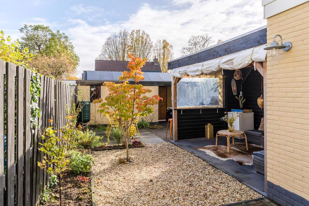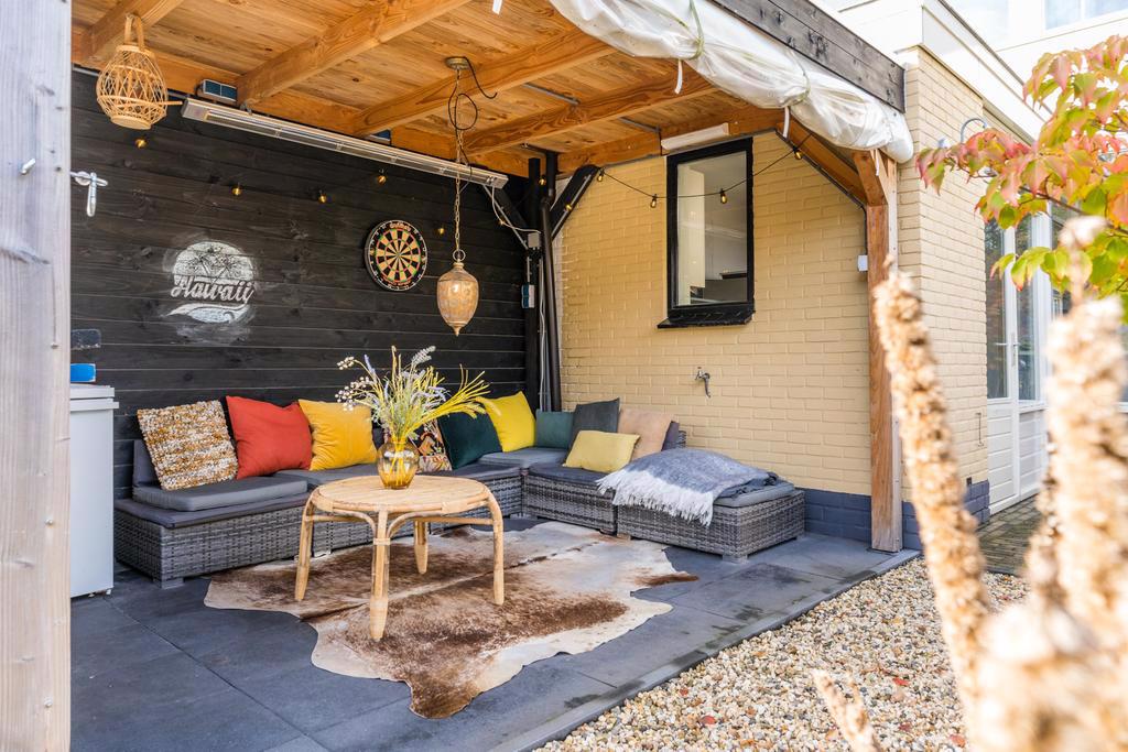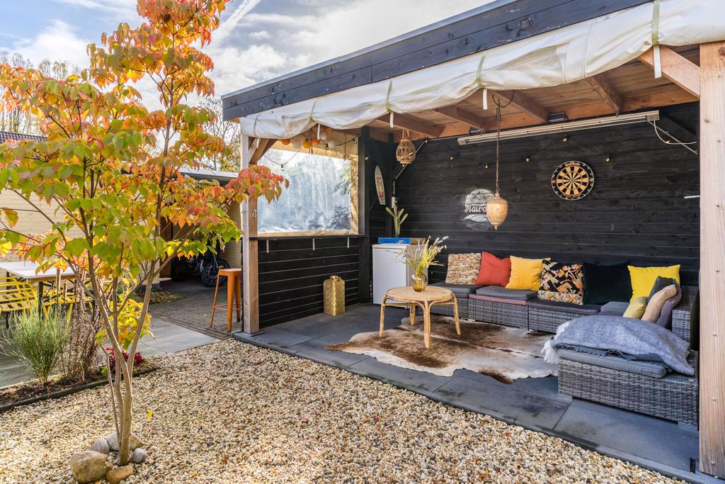 De achtertuin ligt op het zuidoosten. Onder de veranda kun je tot in de late uurtjes genieten van het buitenleven. Met de heater en afsluitbare doeken zit je hier, ook als het kouder wordt, heerlijk beschut. De bar aan de veranda maakt het helemaal af en staat garant voor gezelligheid!