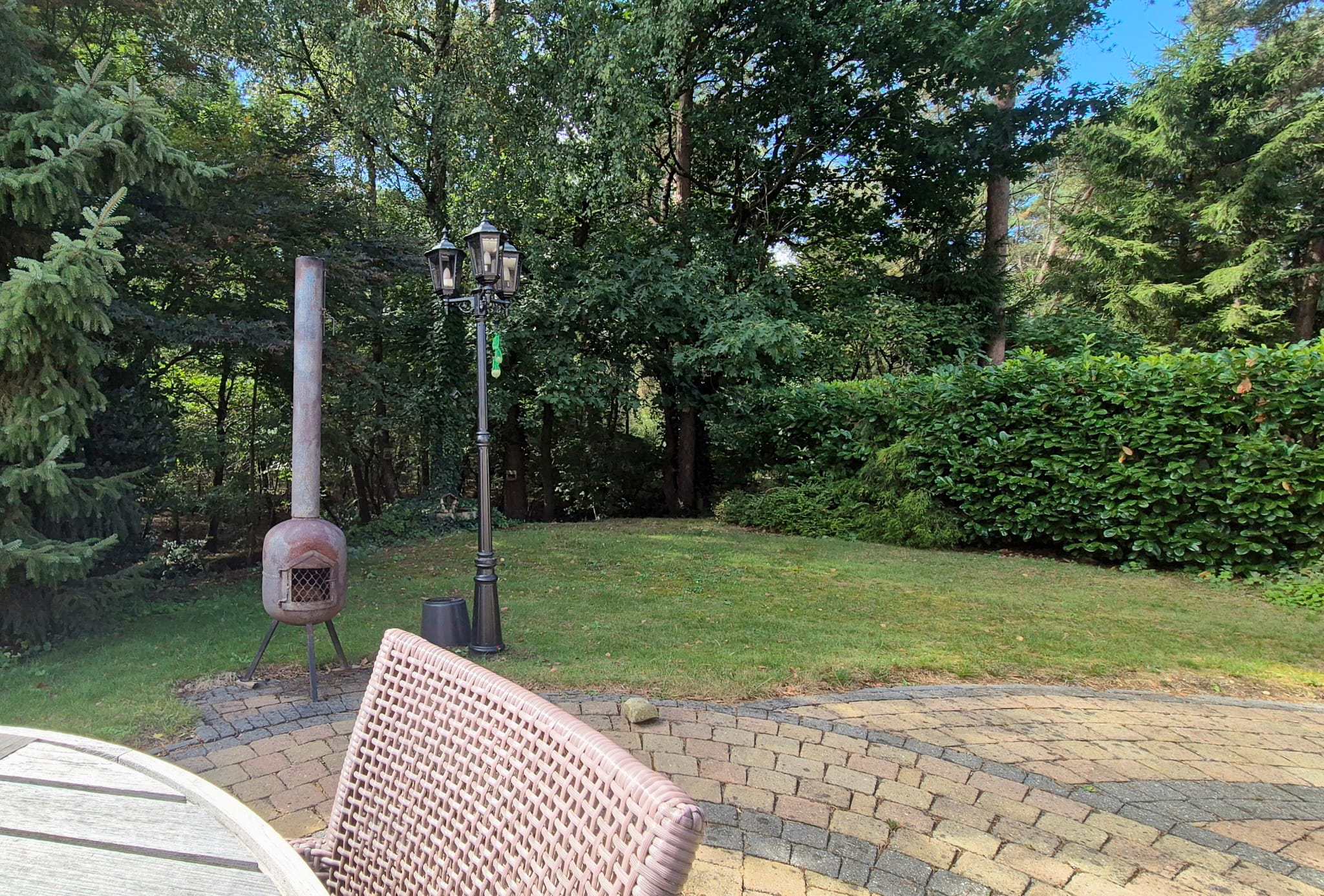De tuin biedt volop privacy en is fraai aangelegd met een terras, beplanting en gras. Vanuit je tuin loop je direct het bos in; een zeer groot natuurgebied waar je urenlang kunt wandelen. Daarnaast is er een handige berging voor bijvoorbeeld tuingereedschap. Er zijn twee parkeerplaatsen aanwezig op eigen terrein.