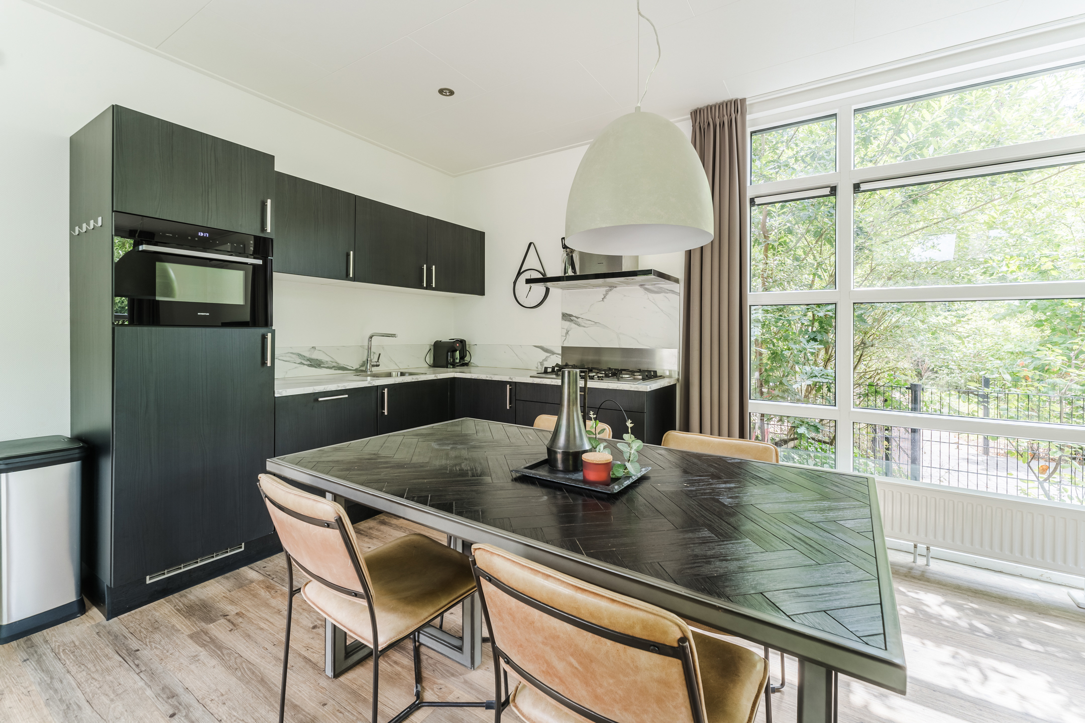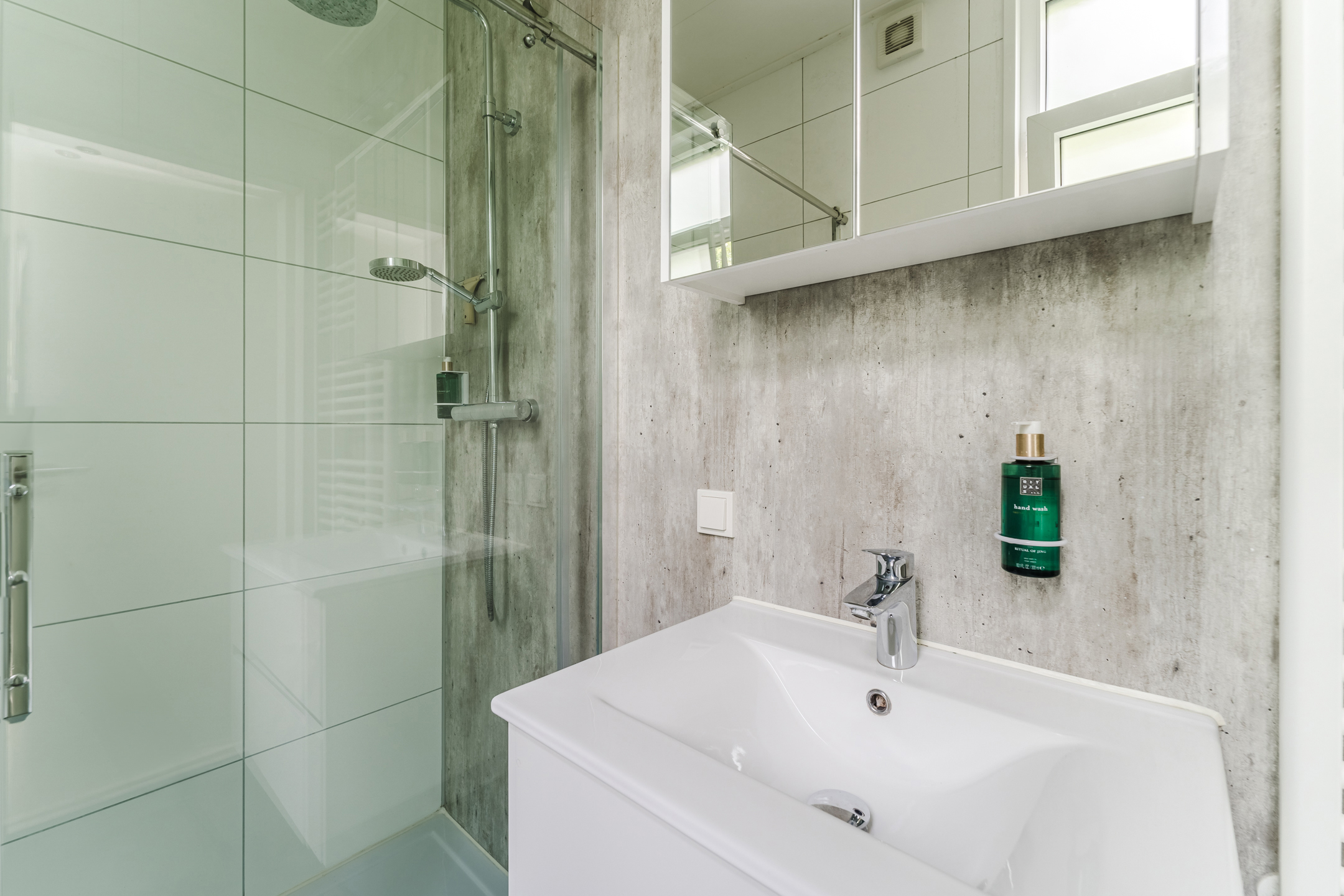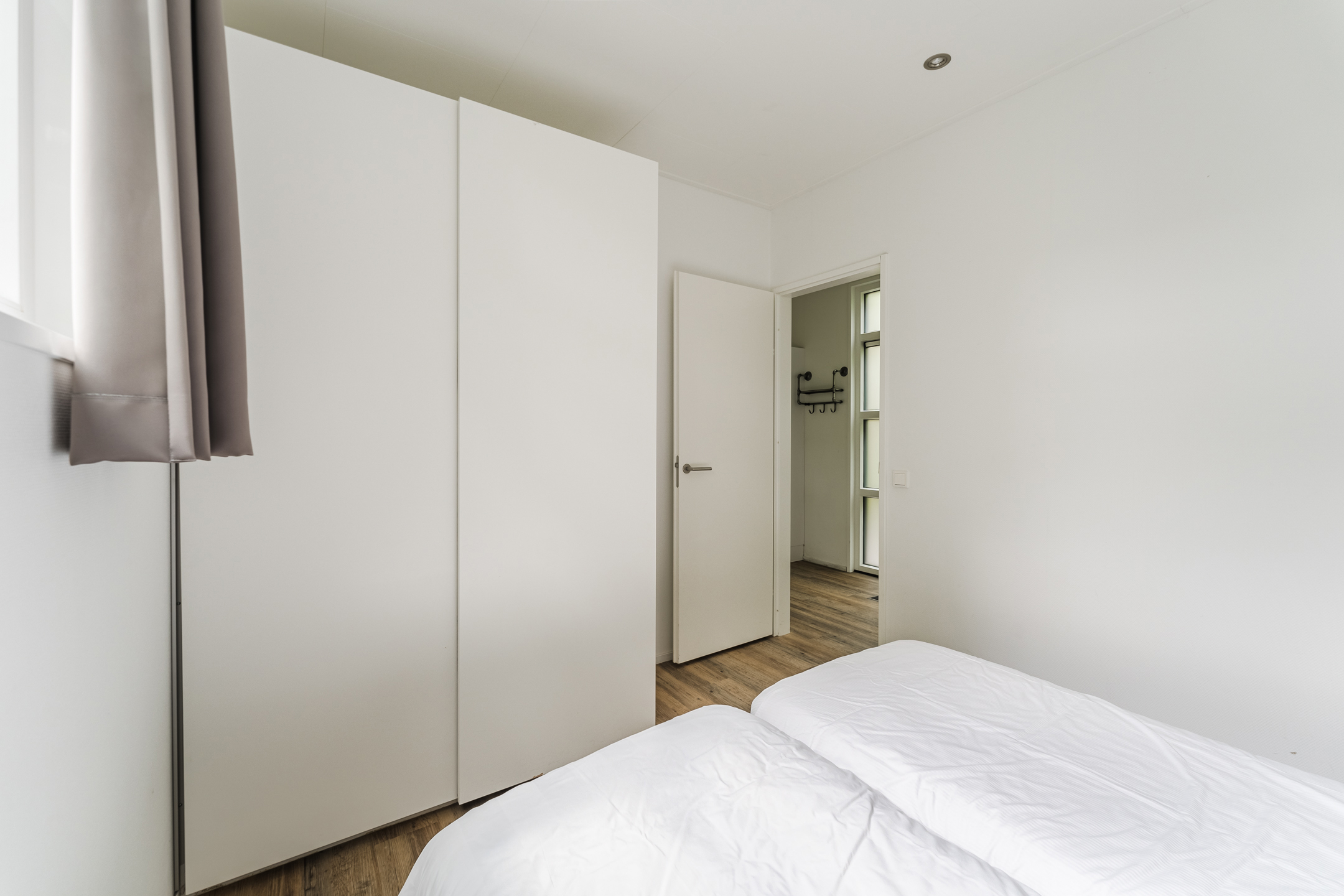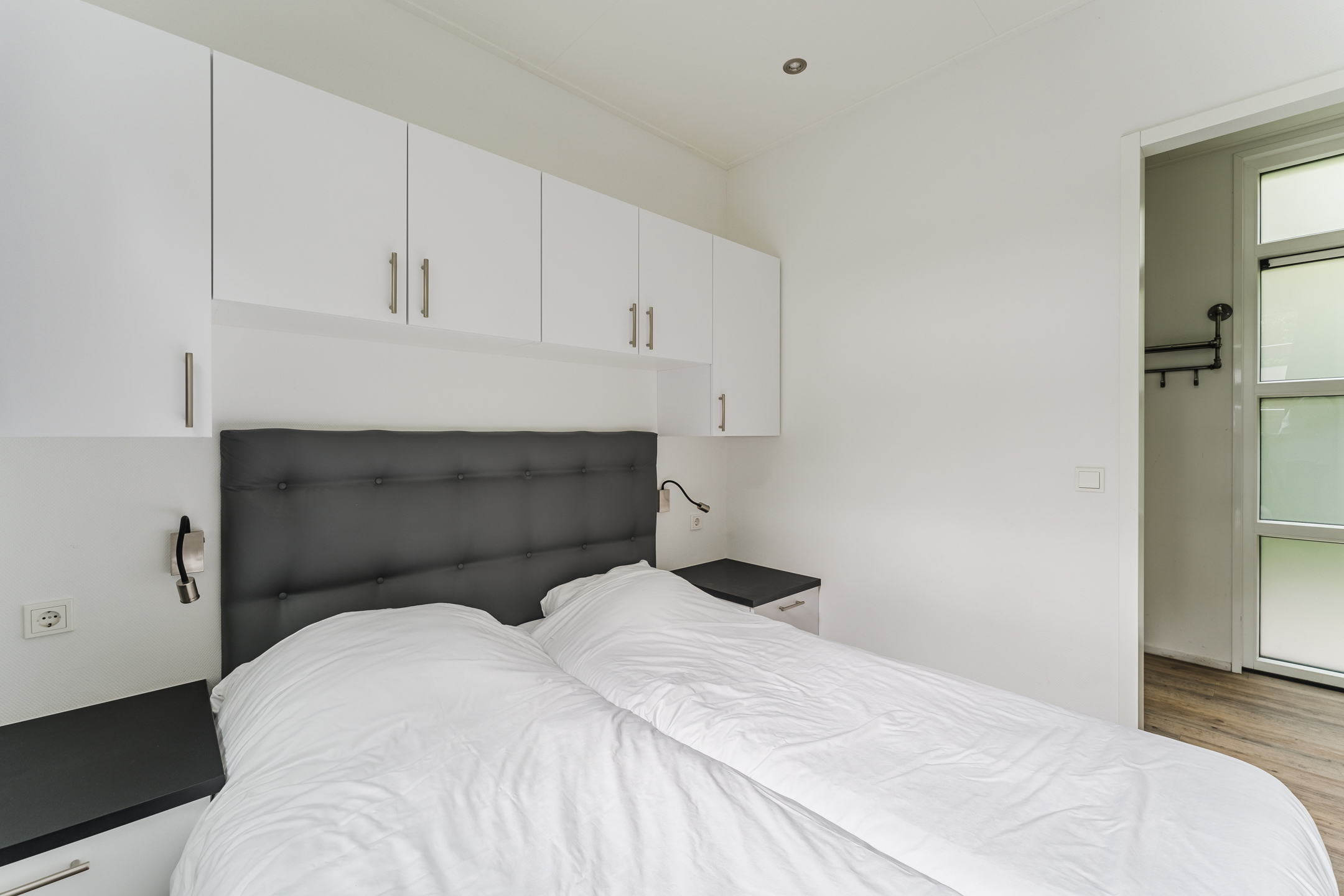 Het hoge plafond met inbouwspots en de grote raampartijen geven de woonkamer een luxe uitstraling. Loop vanuit de woonkamer direct het terras op via de openslaande deuren. De luxe hoekkeuken is volledig uitgerust met o.a. 5-pits gaskookplaat, afzuigkap, vaatwasser, koelkast met vriesvak en een combi-magnetron. In de eerste slaapkamer vind je een tweepersoons bed met kastombouw. De tweede slaapkamer is voorzien van twee eenpersoonsbedden en kastruimte. De badkamer is compleet uitgerust met een douche, wastafelmeubel, toilet en designradiator. Er is een extra bergkast met de cv-ketel.