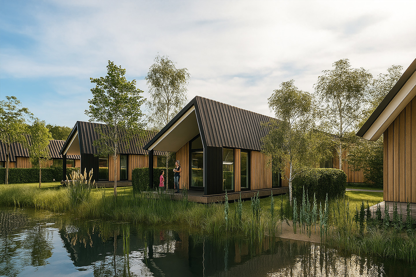 HUB Resorts bouwt energiezuinige, comfortabele en duurzame vakantiewoningen in houtskeletbouw. Geen tijdelijke of verplaatsbare constructies, maar robuuste huizen met hoogwaardige materialen en moderne technieken — vergelijkbaar met traditionele bouw.