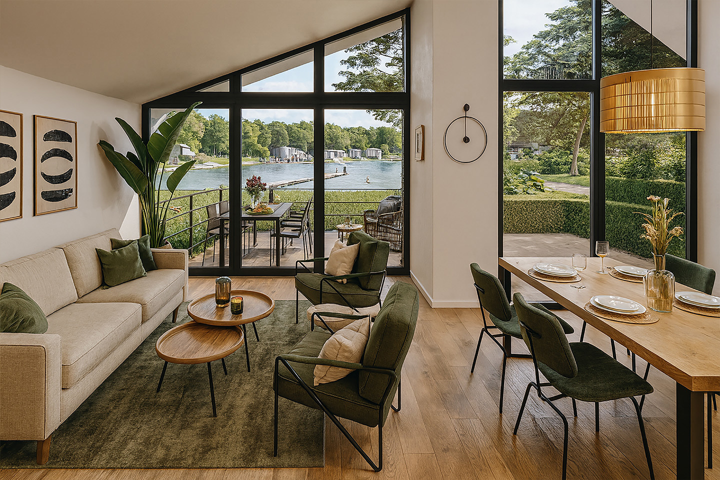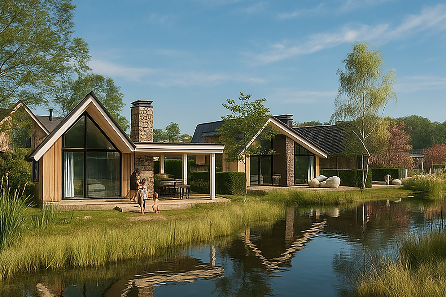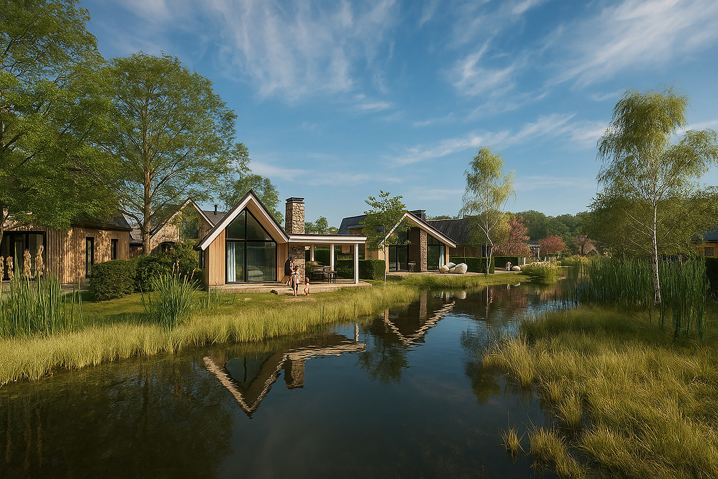 Het resort is ontworpen in samenwerking met ecologen, zodat natuur en architectuur naadloos samenkomen. Er is een natuurlijke zwemvijver en het resort grenst direct aan uitgestrekte bossen, heide en zandverstuivingen. De woningen liggen rond het water en tussen groene zichtlijnen: altijd rust, ruimte en uitzicht. Stap je deur uit en je zit zó op fiets-, MTB-, wandel- en ruiterpaden die kilometers ver doorlopen. Binnen geniet je van een licht, comfortabel interieur dat je naar wens kunt laten inrichten met interieurpakketten. Voor extra ontspanning voeg je een wellnessoptie toe: hottub, sauna, sunshower of buitendouche.