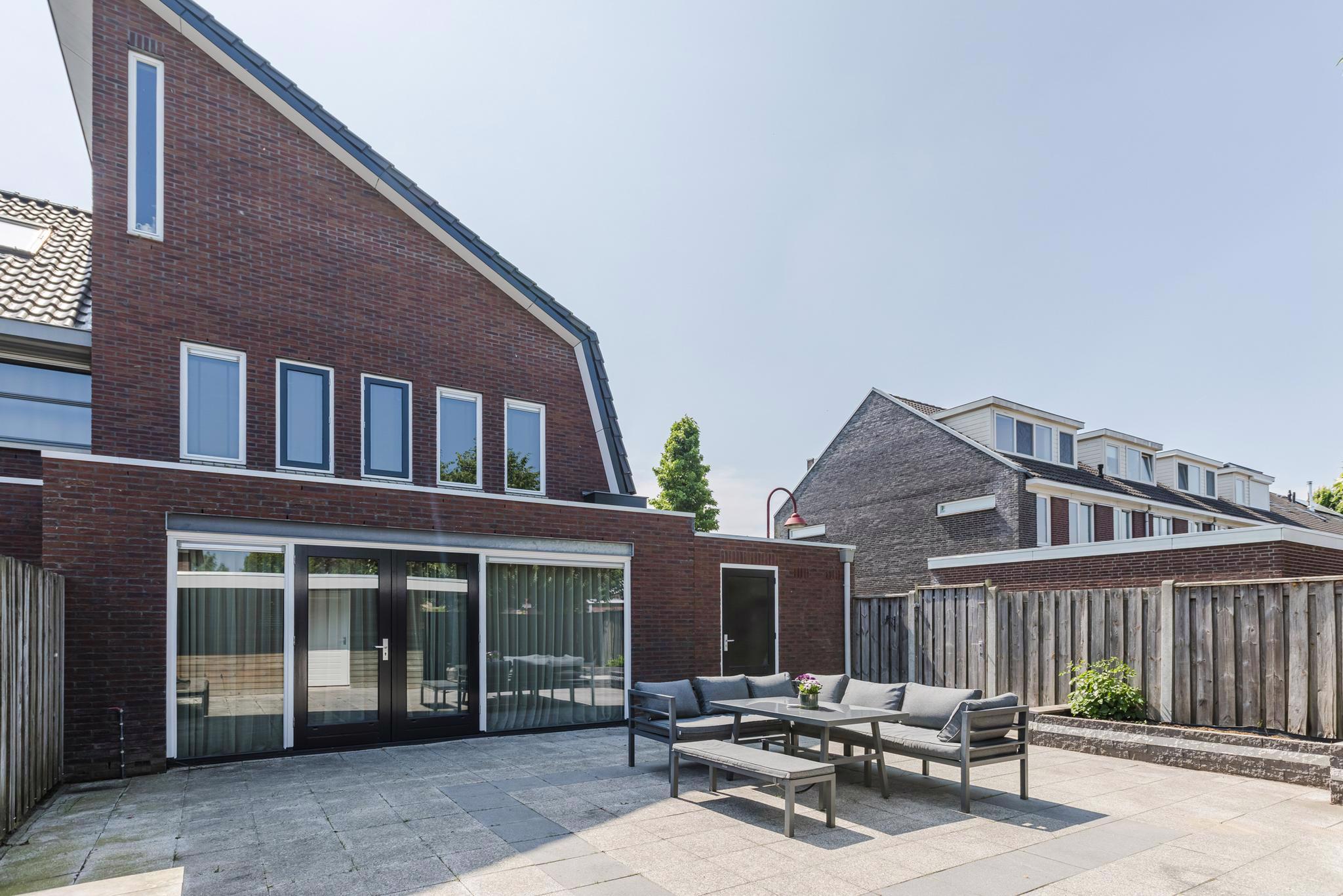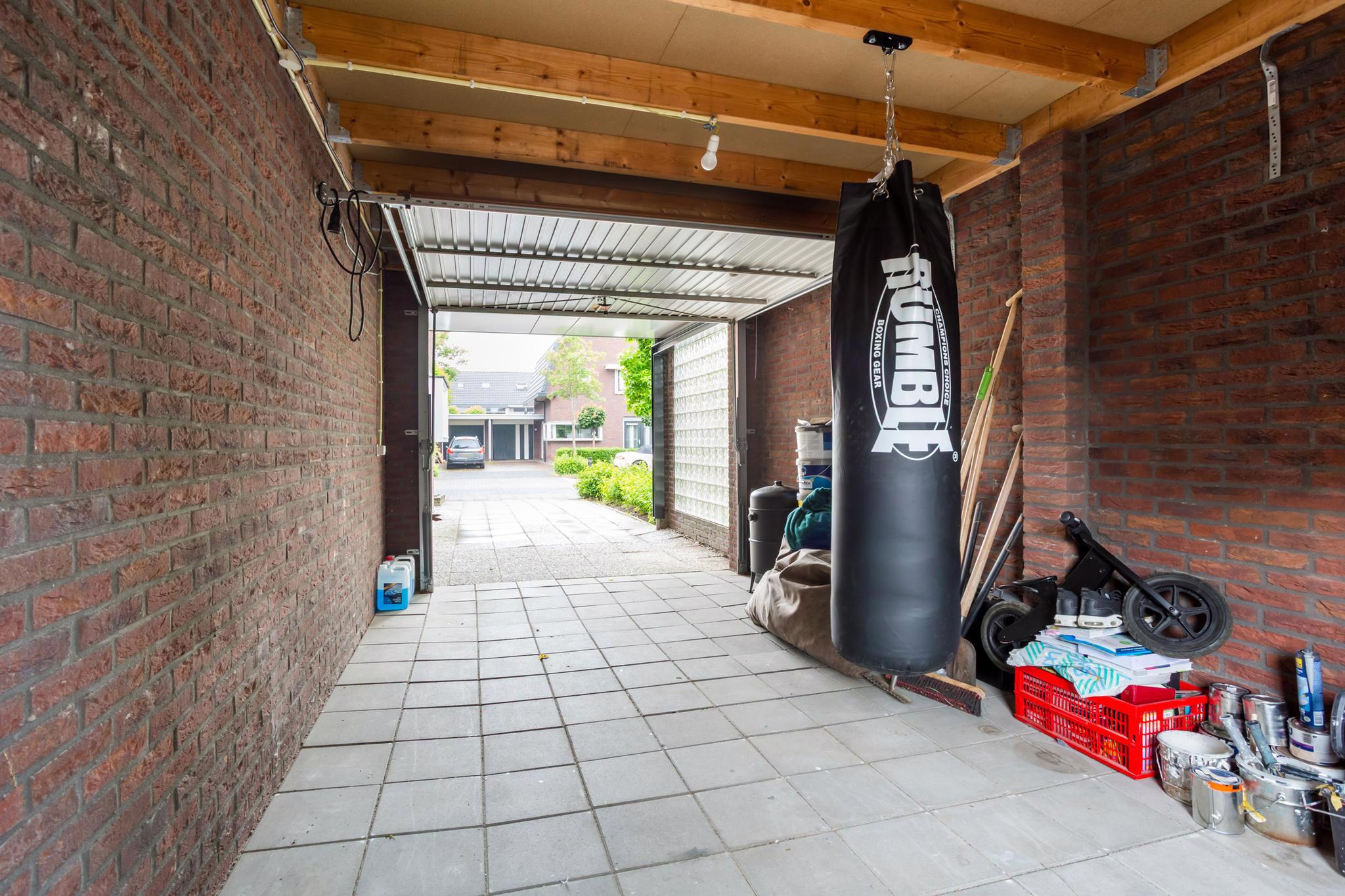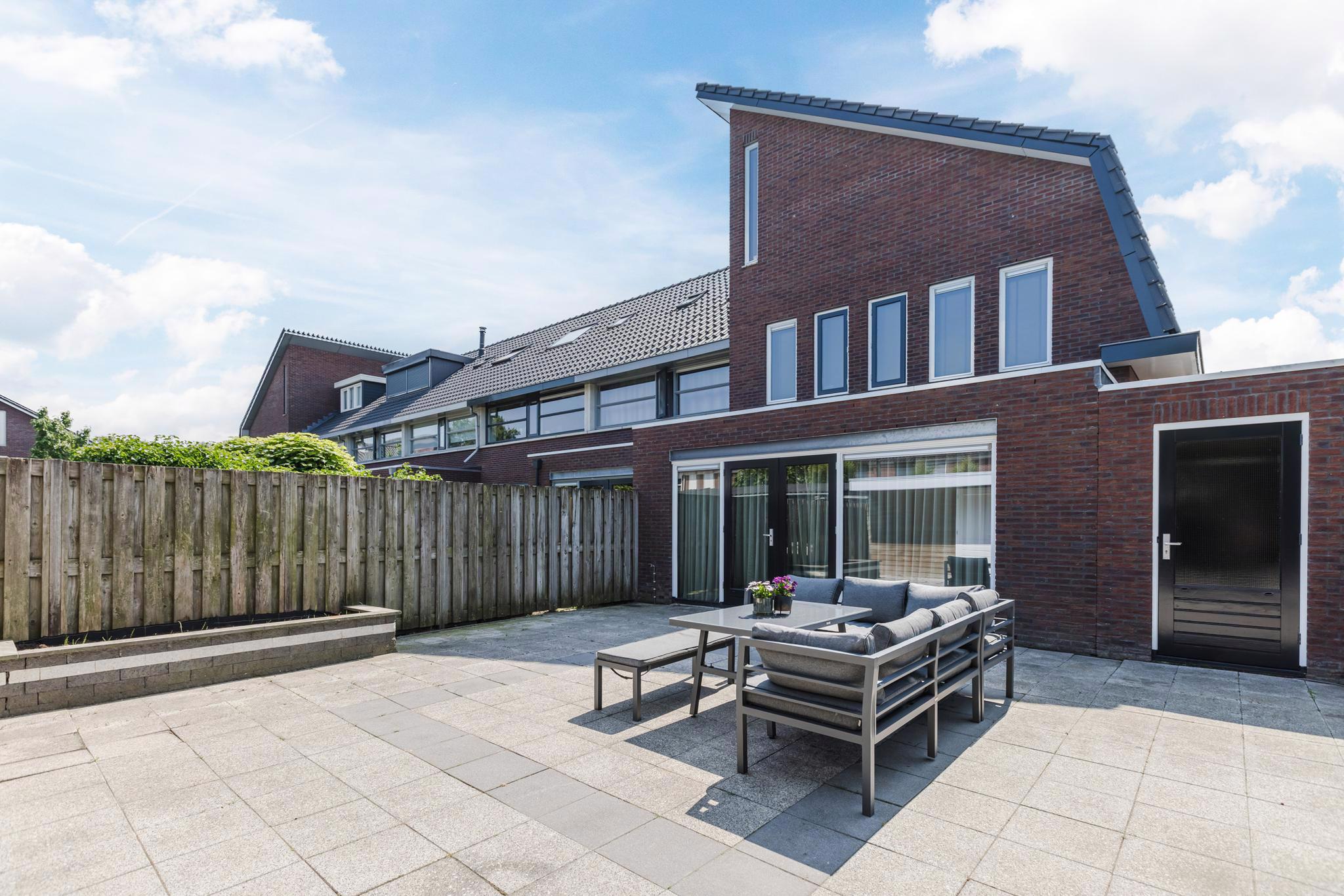 De achtertuin ligt op het noordwesten en is bereikbaar via een poortdeur. Er is een grote houten berging aanwezig. De aangebouwde stenen garage is voorzien van een garagedeur en een loopdeur naar de achtertuin. Je kunt de auto op je eigen oprit kwijt, maar er is ook voldoende parkeergelegenheid langs de weg.