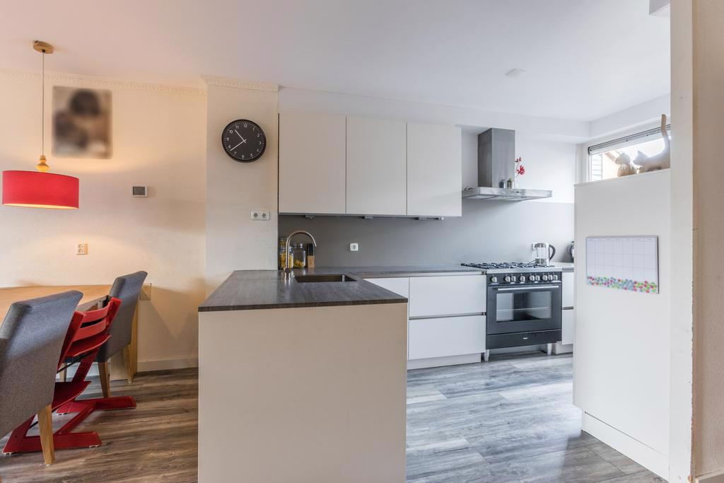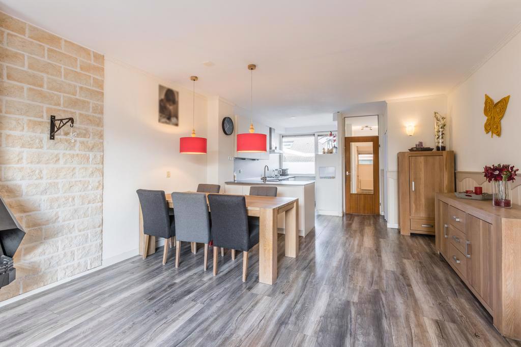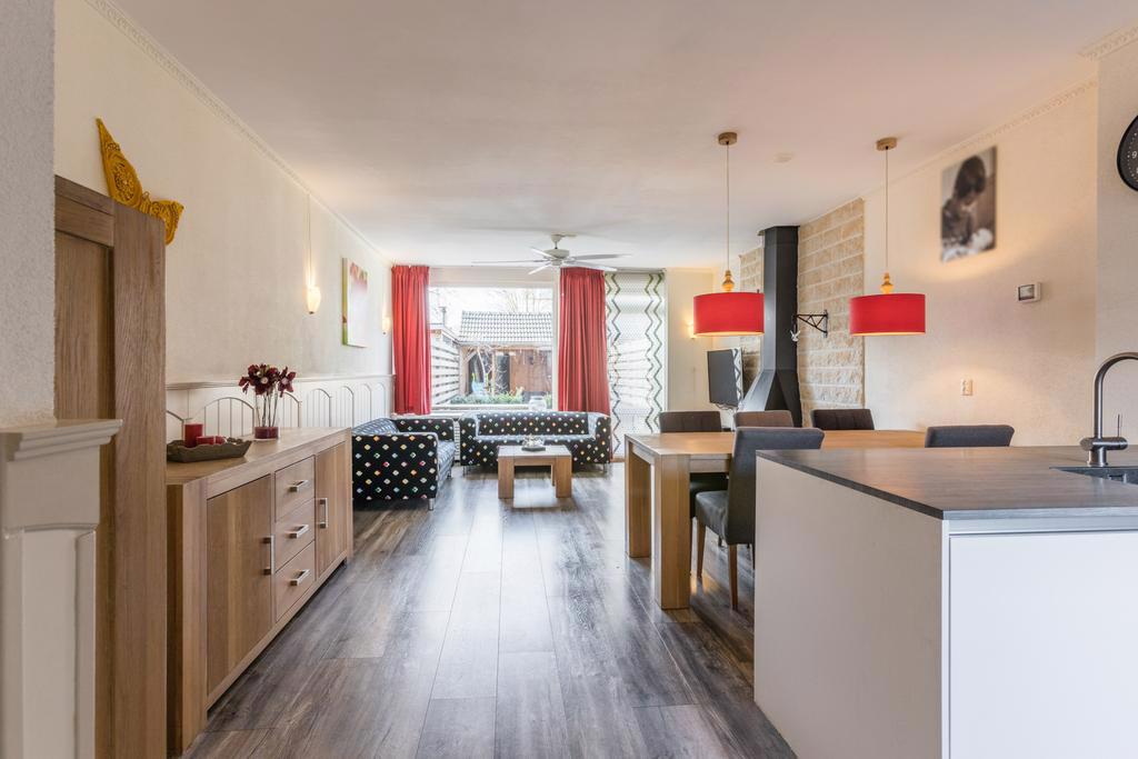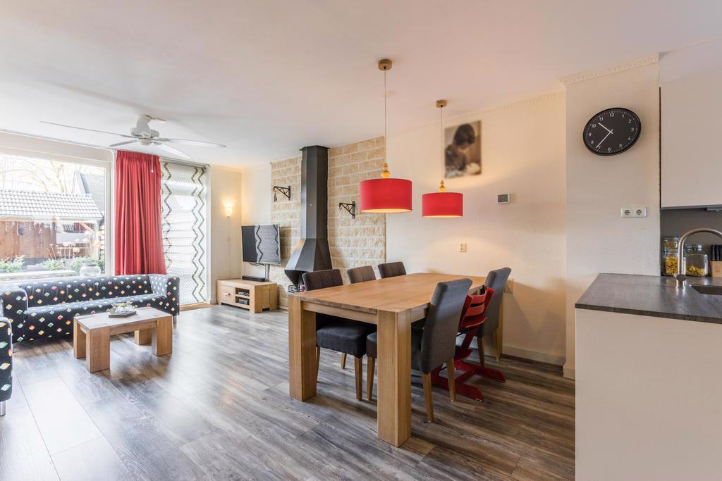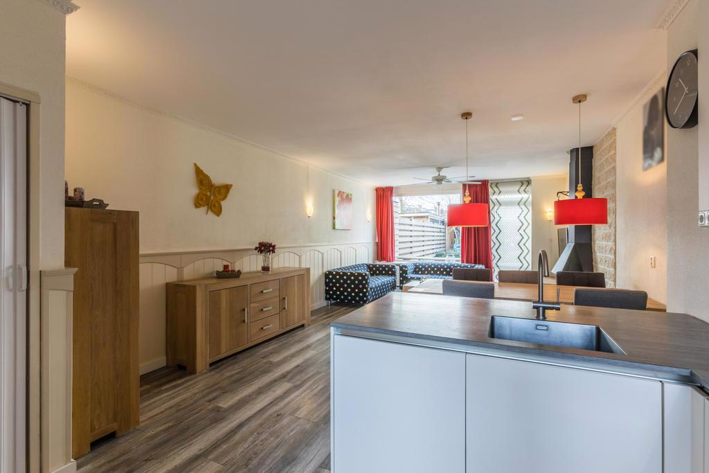 De tuingerichte woonkamer is heerlijk licht en is afgewerkt met een lambrisering en een fraaie laminaatvloer. De open haard zorgt voor extra warmte en gezelligheid. De keuken, met veel werk- en bergruimte, is in 2014 nieuw geplaatst. De matte kastjes in combinatie met een TopCore houtlook blad en een achterwand van geborsteld aluminium zorgen voor een strak geheel! Met een 6-pits gasfornuis met oven, afzuigkap, vaatwasser, boiler en een grote koelkast én vrieskast is deze keuken van alle gemakken voorzien!