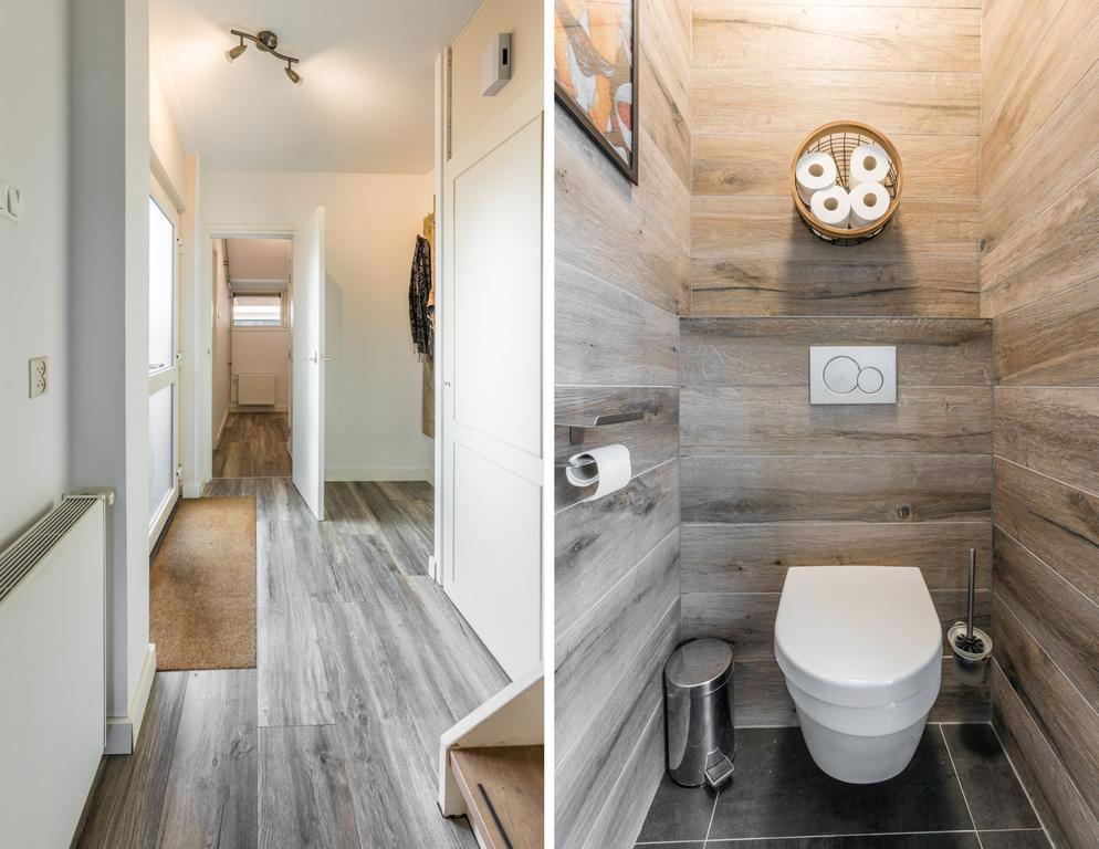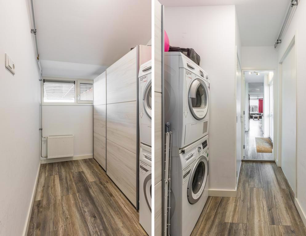 Vanuit de hal heb je toegang tot het toilet en de bijkeuken. Hier zijn de wasmachine en wasdroger geplaatst.