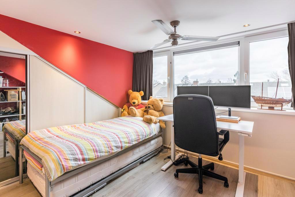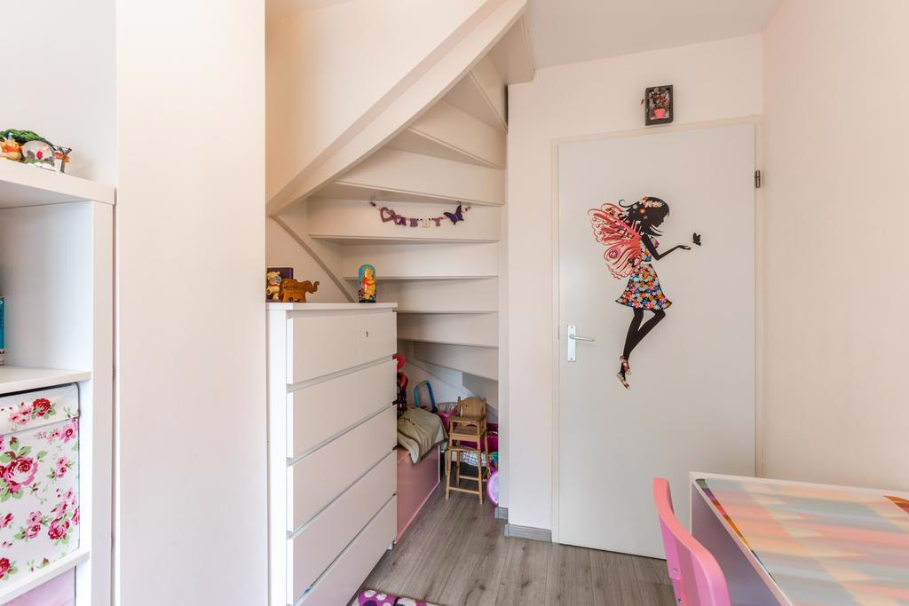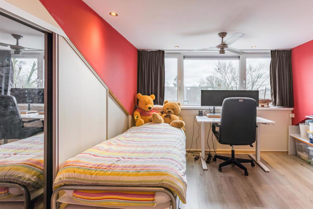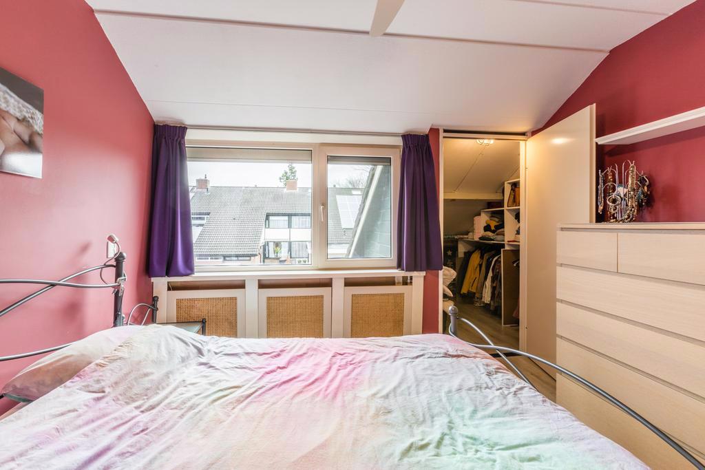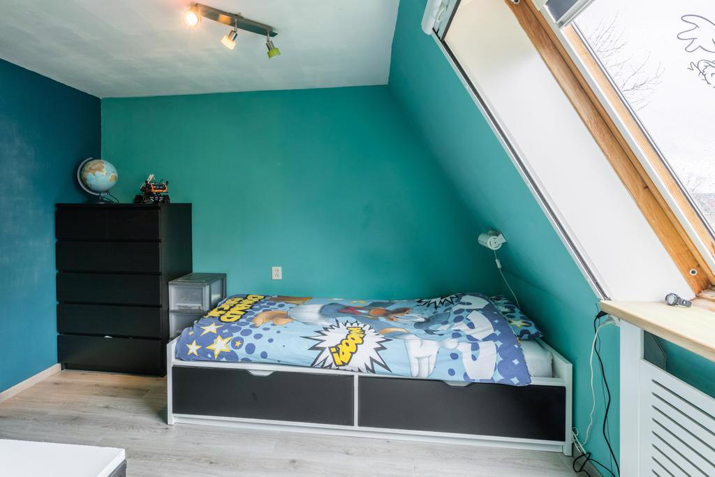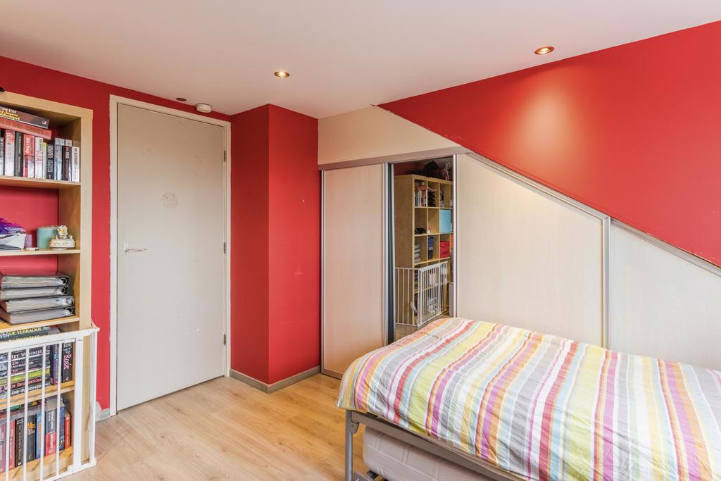 De 2e verdieping heeft 2 slaapkamers, waarvan één met een groot dakkapel (2012). Achter de schuifdeuren is de cv-ketel te vinden.