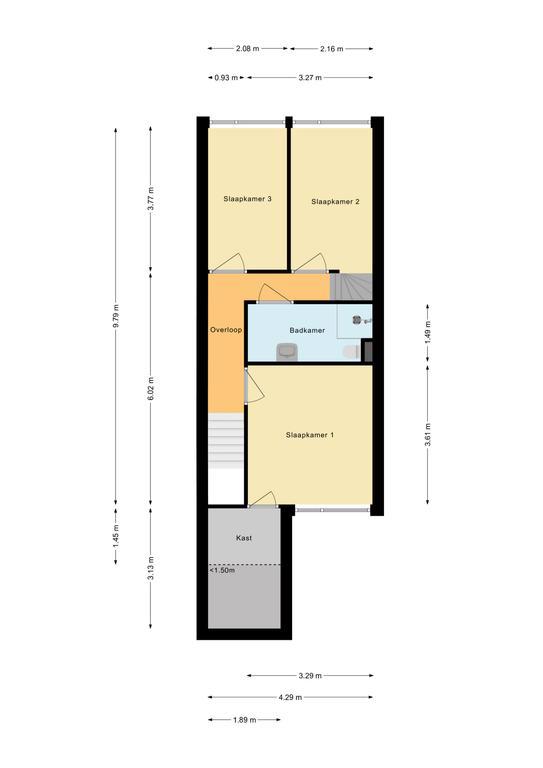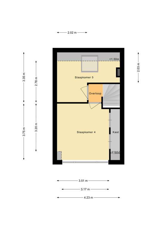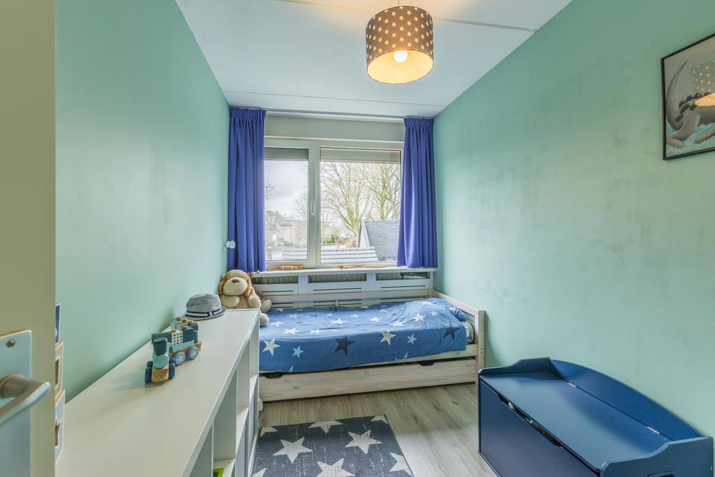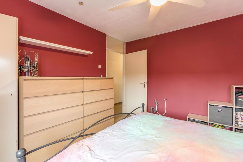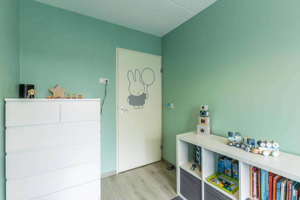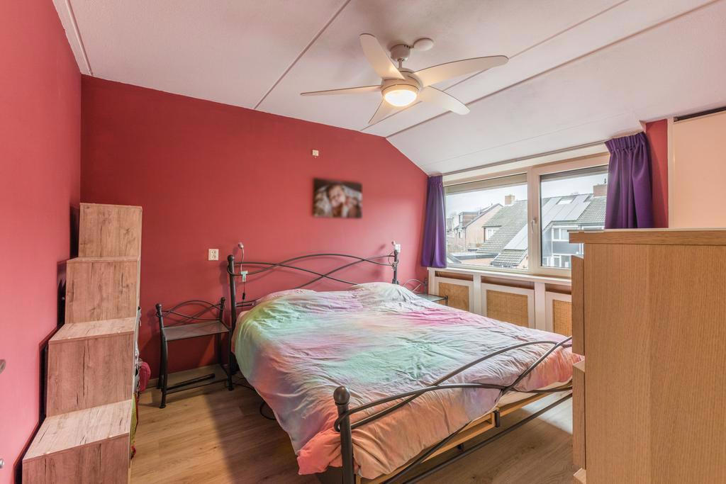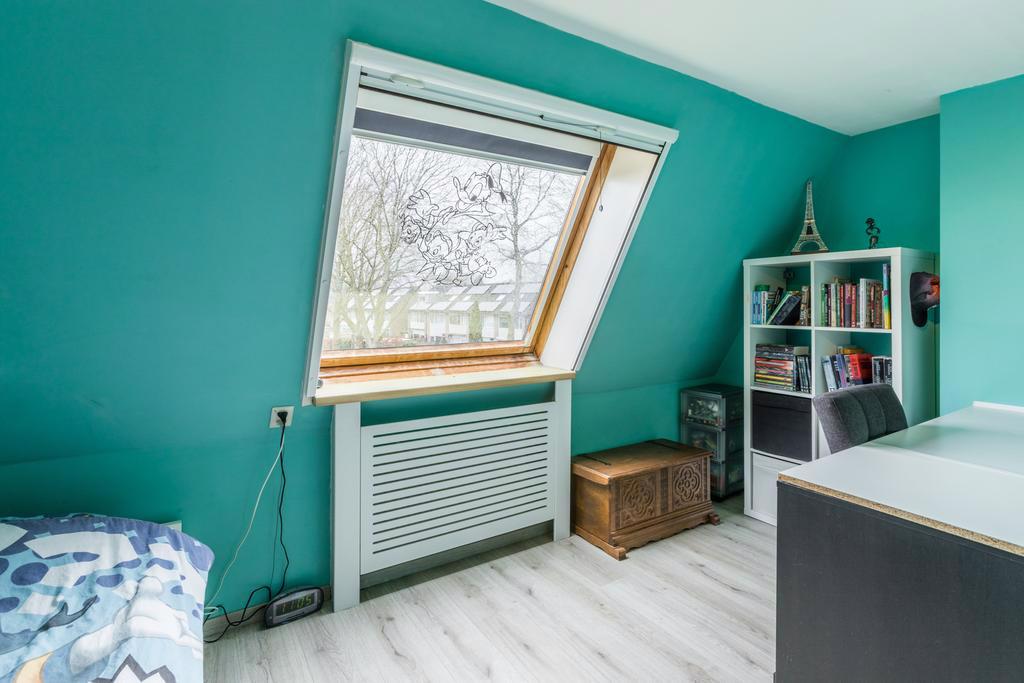 De 2e verdieping heeft 2 slaapkamers, waarvan één met een groot dakkapel (2012). Achter de schuifdeuren is de cv-ketel te vinden.