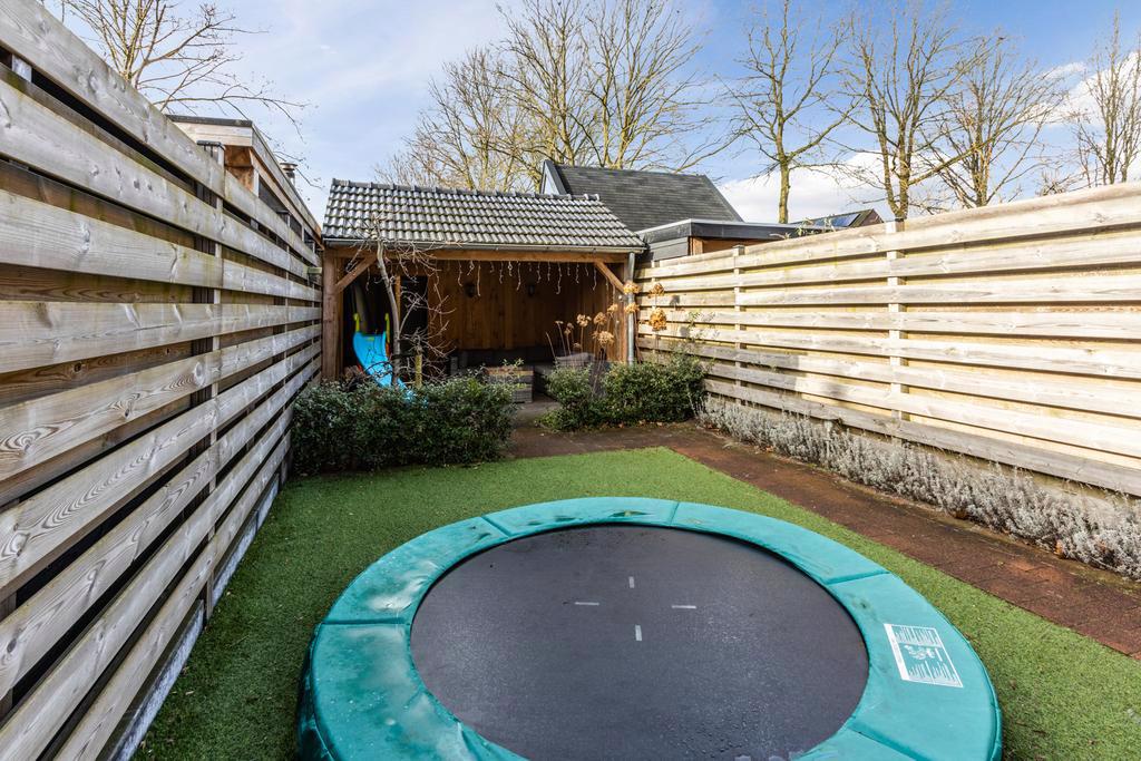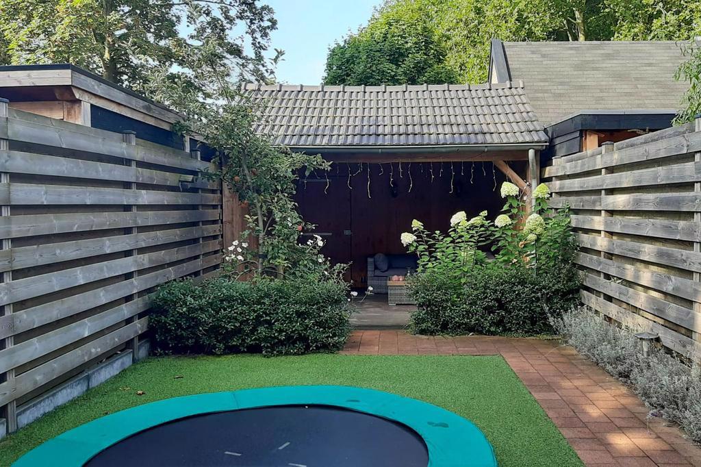 De achtertuin is in 2016 opnieuw aangelegd. Er is een nieuwe berging met veranda geplaatst, zodat je lekker lang van het buitenleven kunt genieten. Direct achter de tuin ligt een fietspad met een grasveld. De voortuin beschikt over een eigen carport; de auto kun je dus altijd kwijt!
