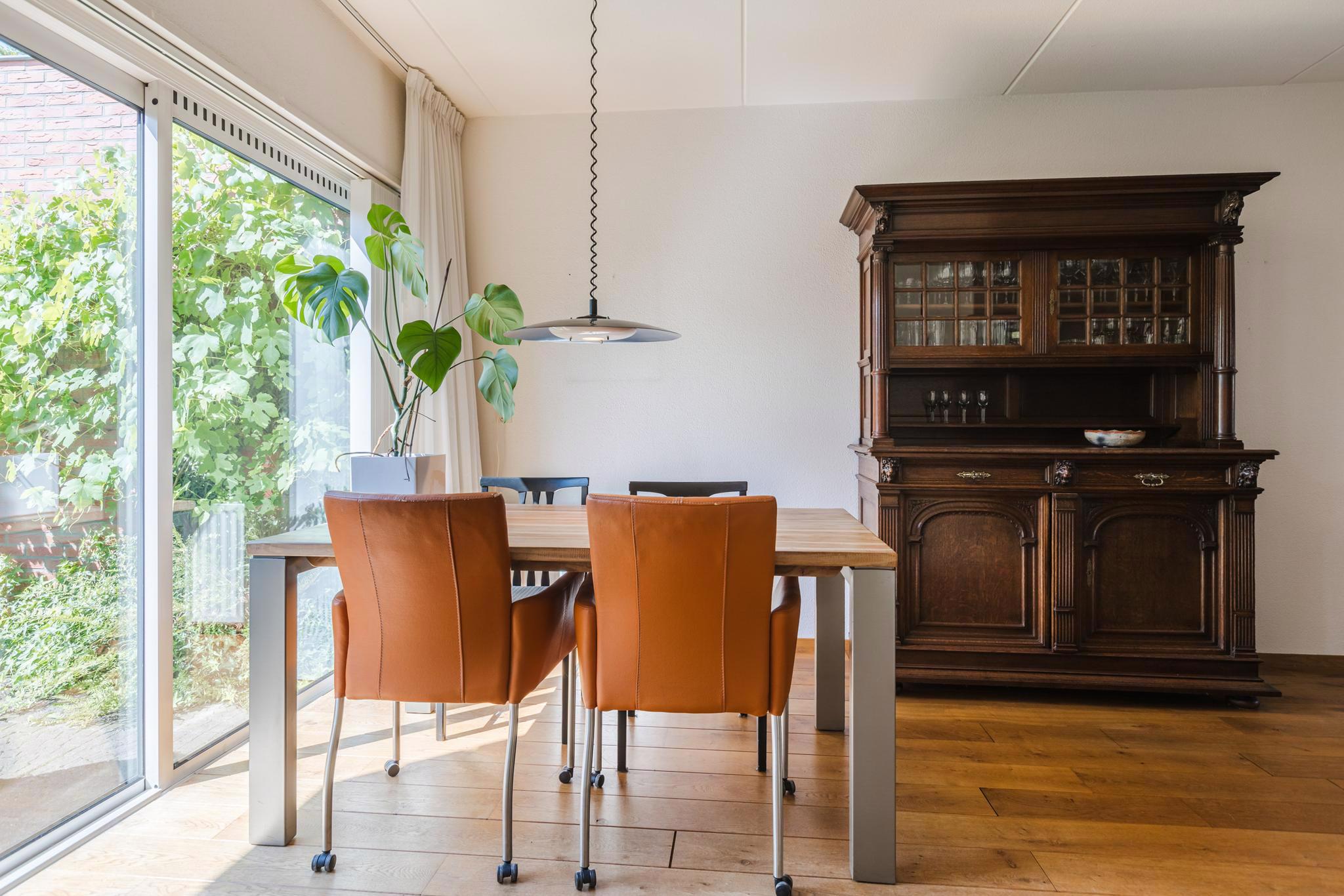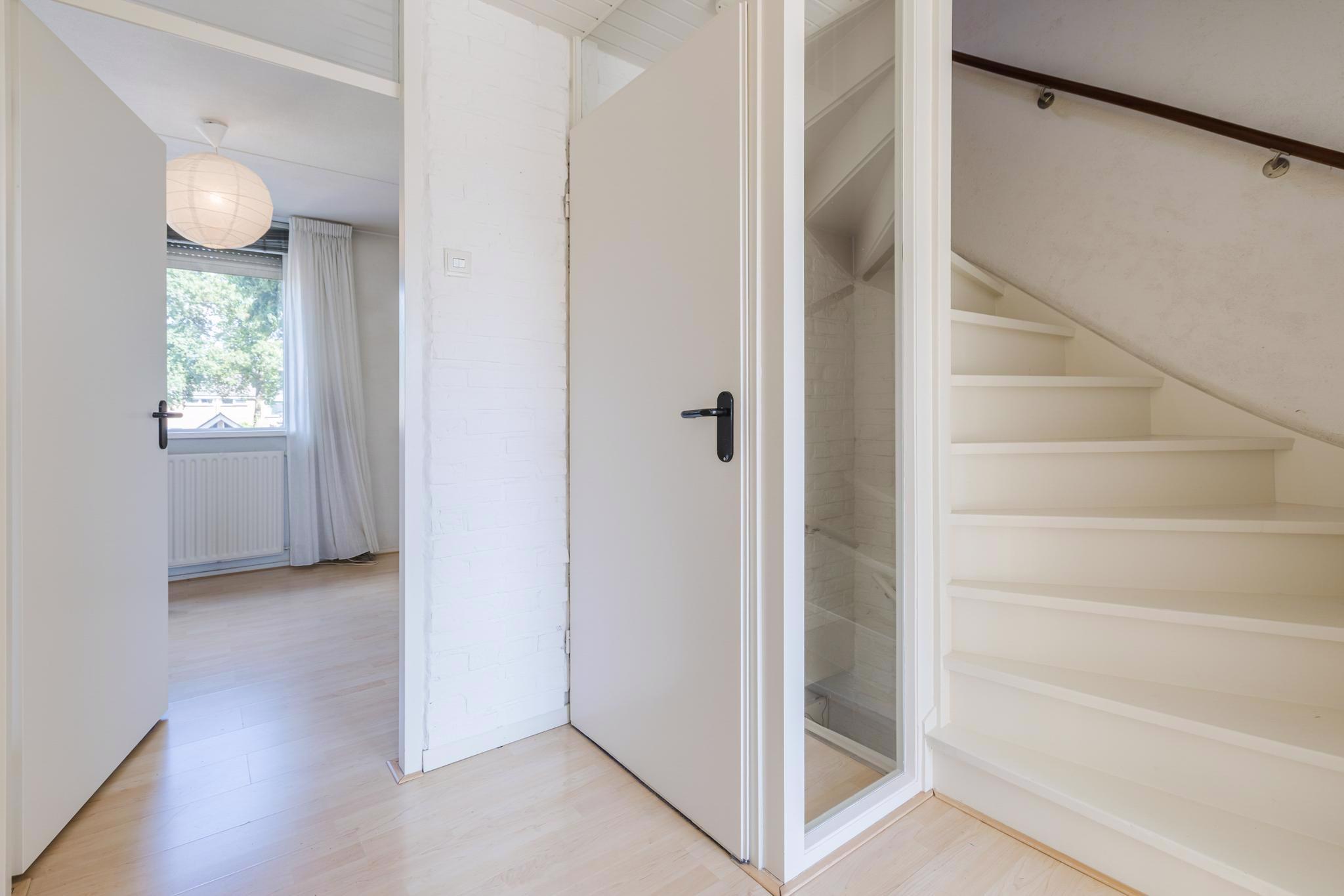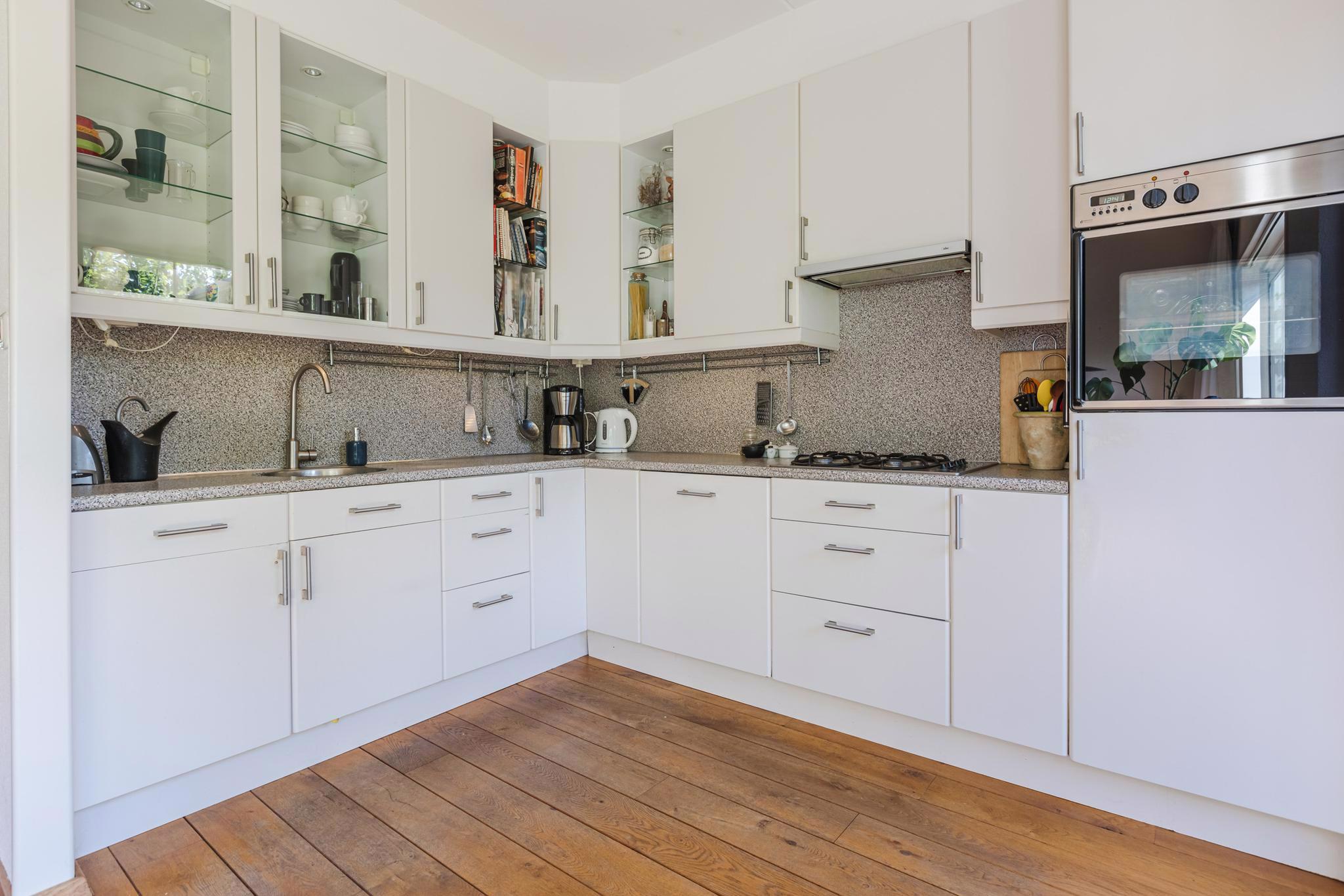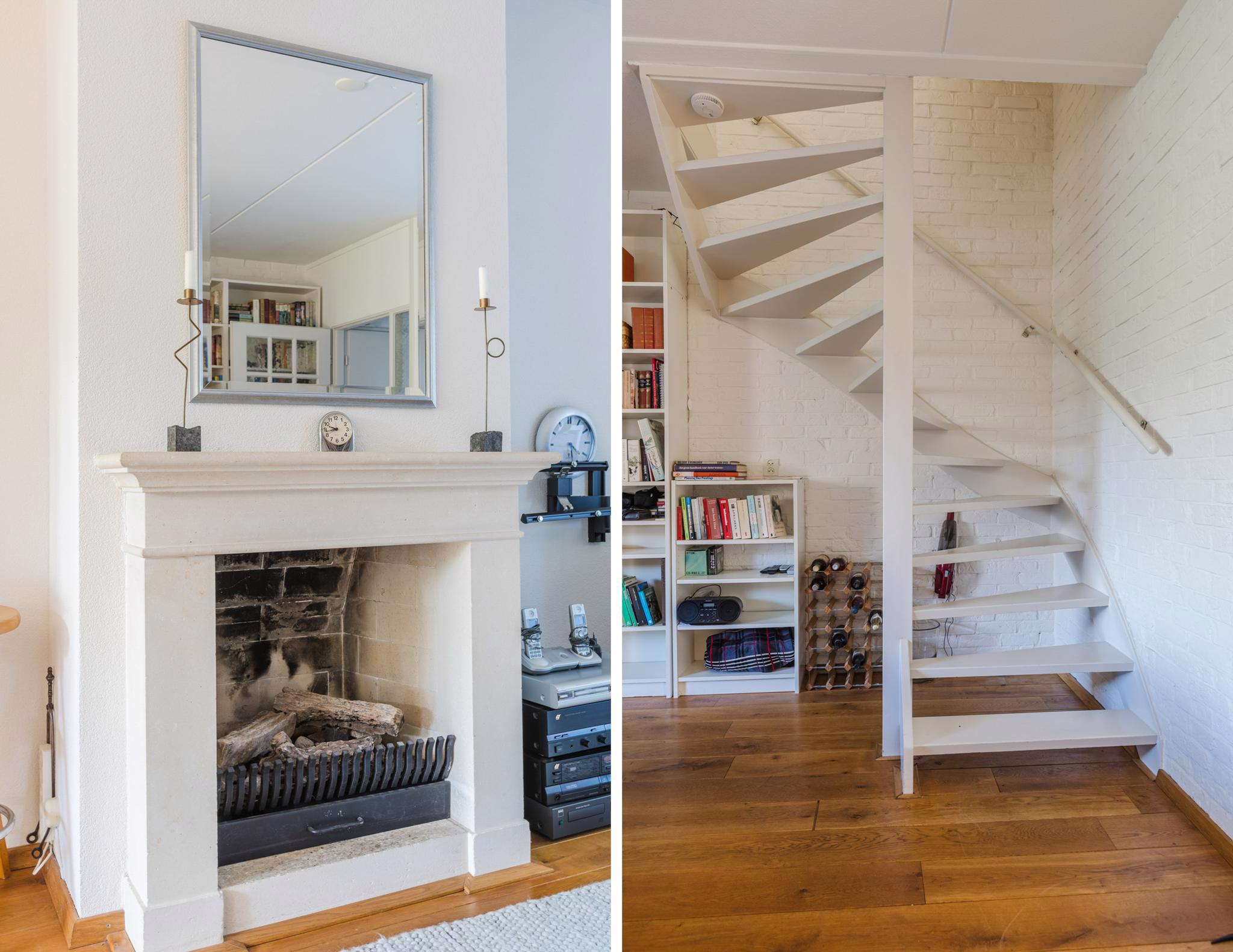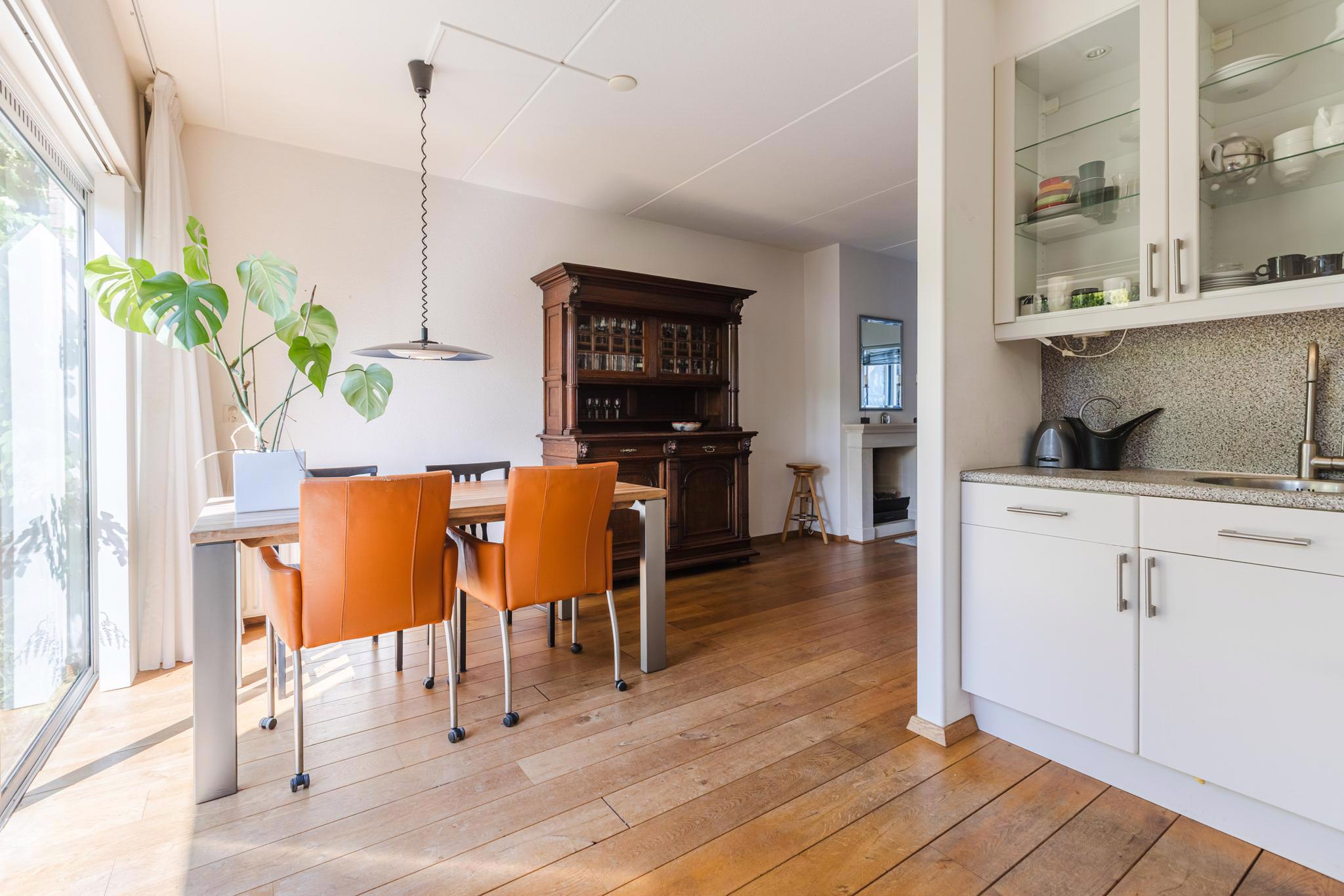 Je komt binnen in de hal met meterkast en toilet. De woonkamer is erg licht door de het grote raam aan de voorzijde en de schuifpui aan de achterkant. Op de vloer ligt een eikenhouten vloer. In de winter zit je er warmpjes bij door de sfeervolle gashaard. De gehele woning wordt verwarmd met een cv-ketel en radiatoren. De open keuken in hoekopstelling ligt aan de achterzijde van de woning en beschikt over een koelkast (2020), vaatwasser, oven, gaskookplaat en afzuigkap.