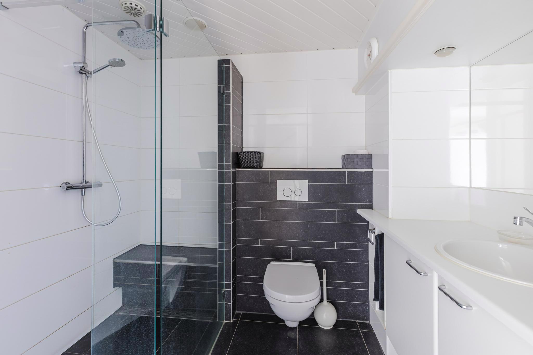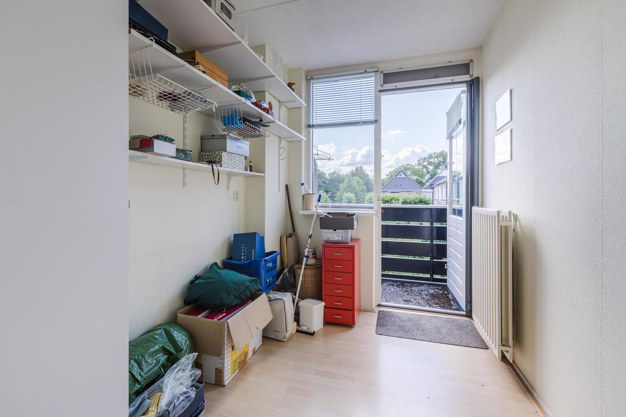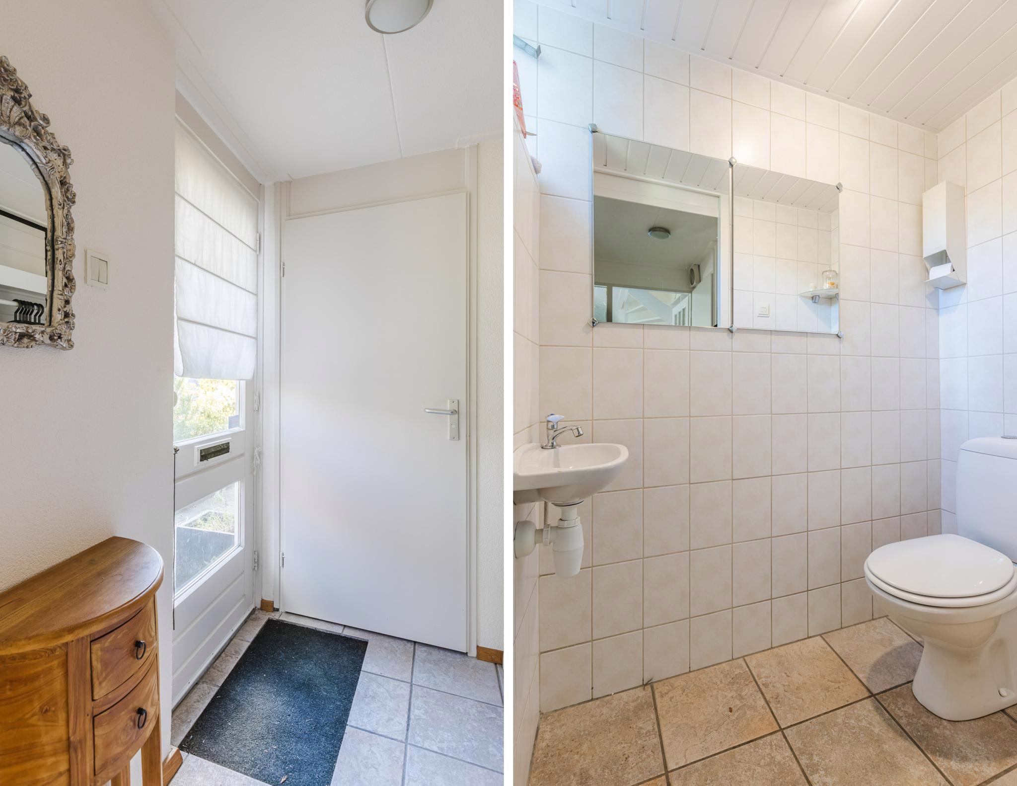 Aan de voorzijde van de woning is een aangebouwde stenen berging aanwezig. Handig voor fietsen en tuingereedschap. De auto kun je op eigen terrein kwijt.