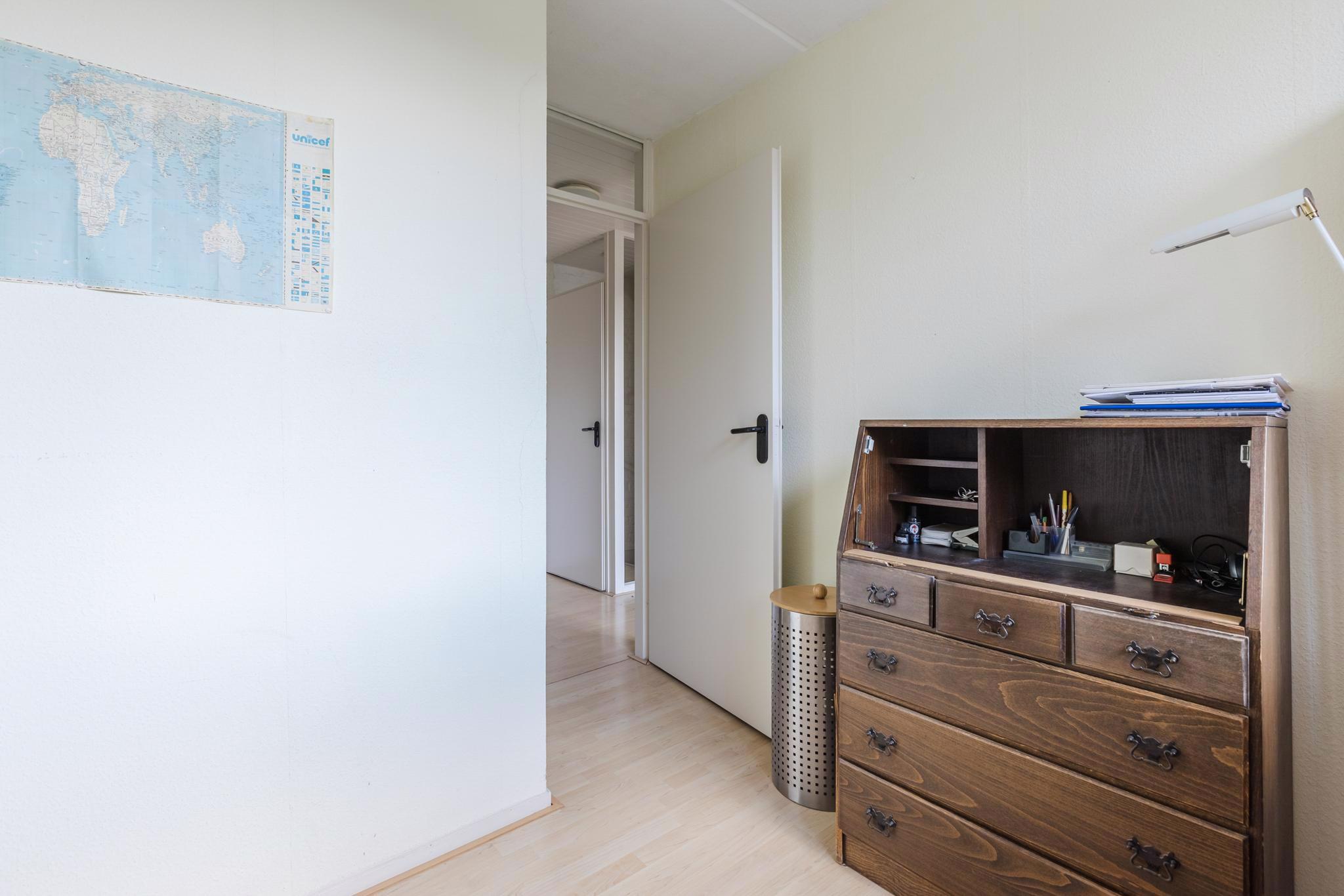 Op de eerste verdieping vind je drie slaapkamers die zijn afgewerkt met een laminaatvloer. De masterbedroom aan de voorzijde van de woning heeft een handige inbouwkast met schuifdeuren. Eén van de slaapkamers aan de achterkant heeft toegang tot het balkon. De nette badkamer is ca. 5 jaar geleden vernieuwd.