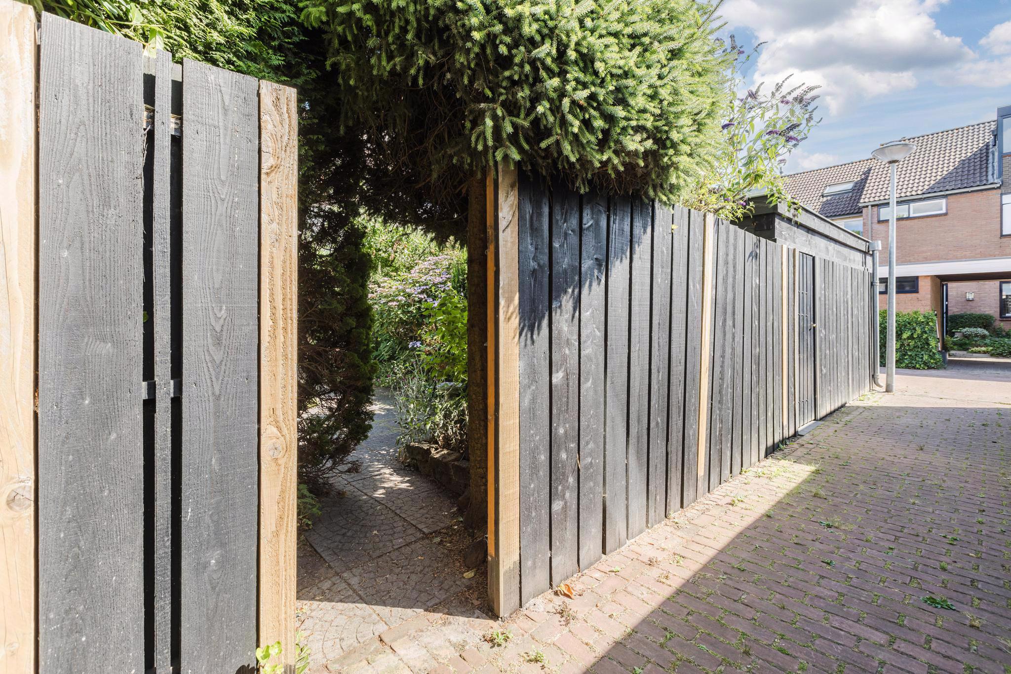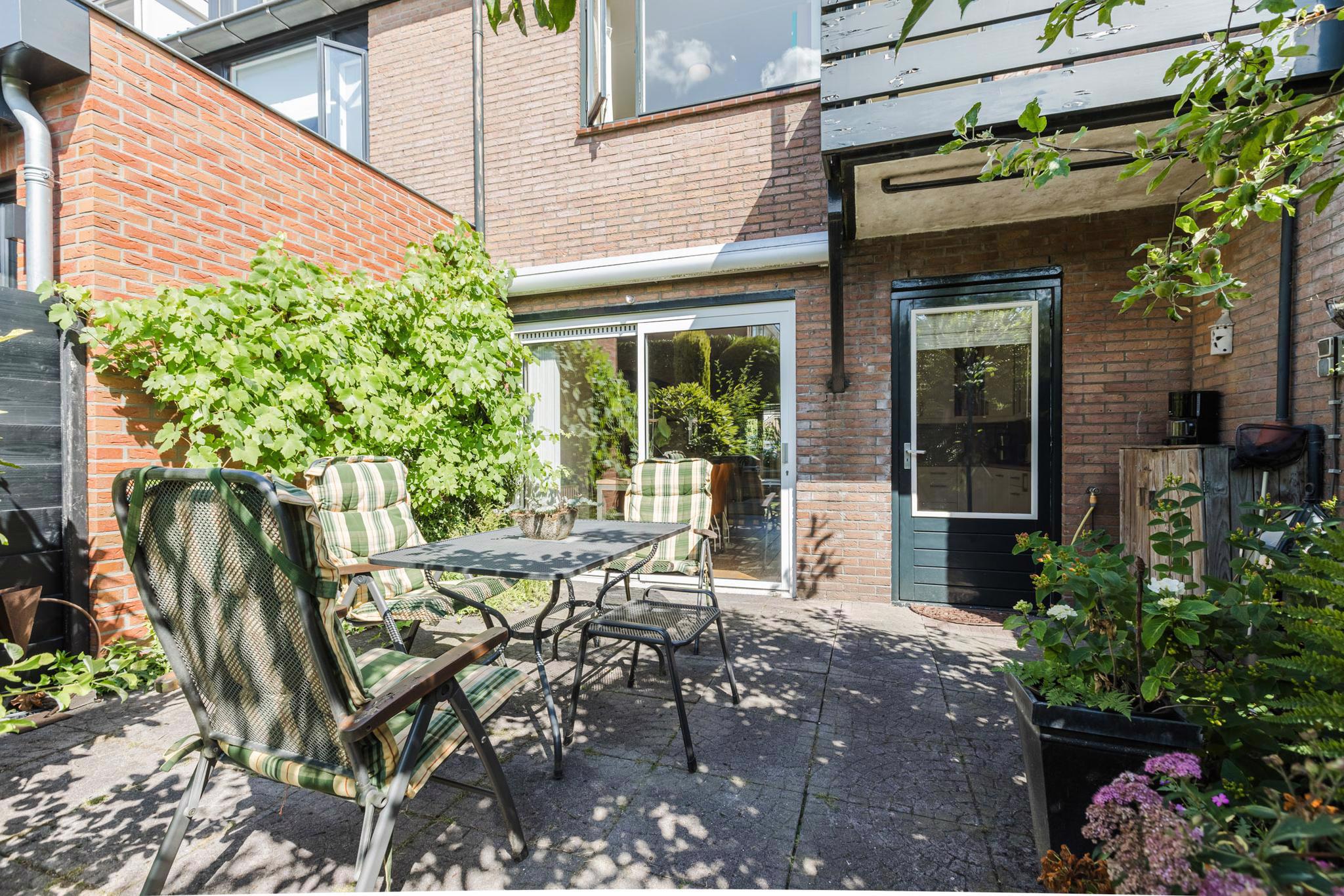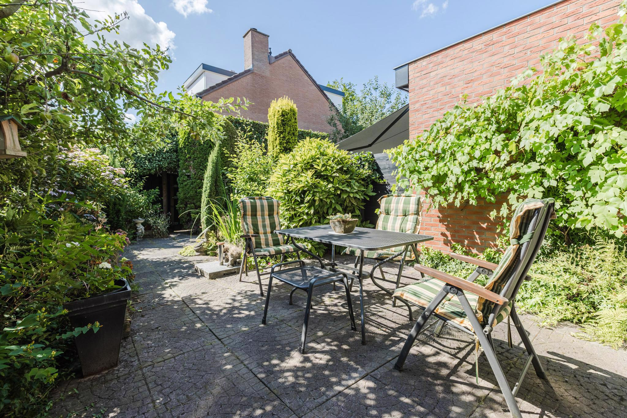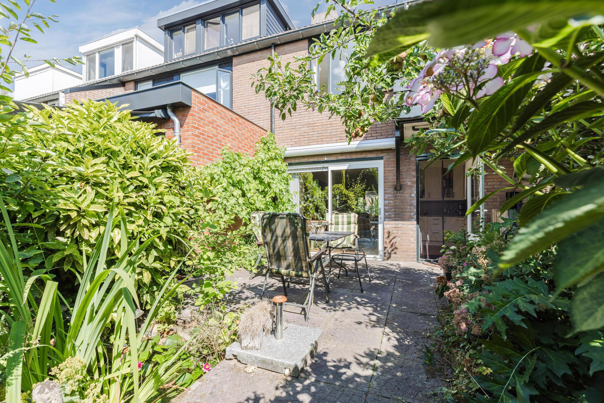 De gezellige en groene achtertuin heeft een gunstige zonligging op het westen. Er zijn elektrapunten aanwezig en een handige bergkast. De schuttingen zijn vernieuwd en het zonnescherm zorgt voor een fijne schaduwplek op zonnige dagen.