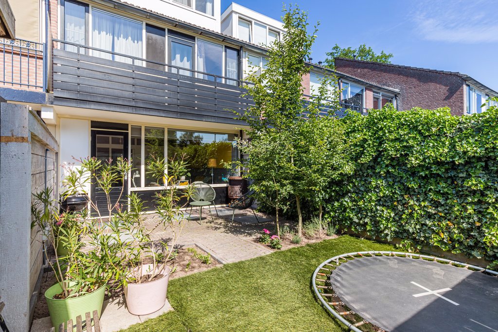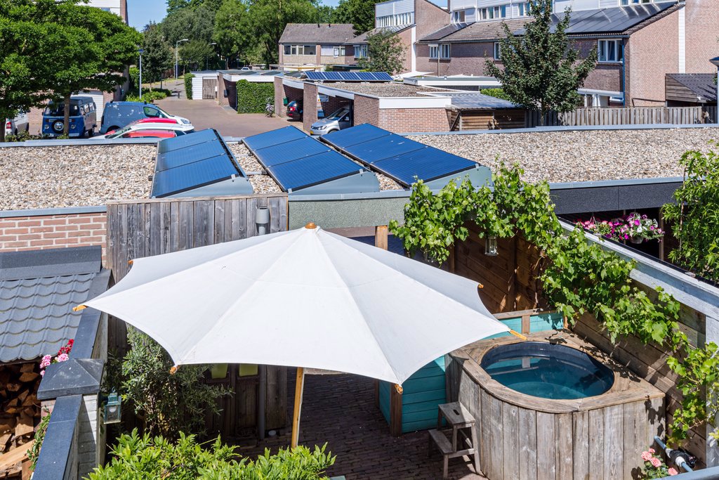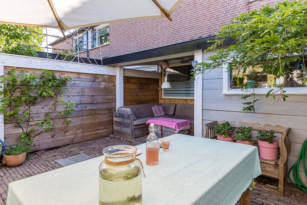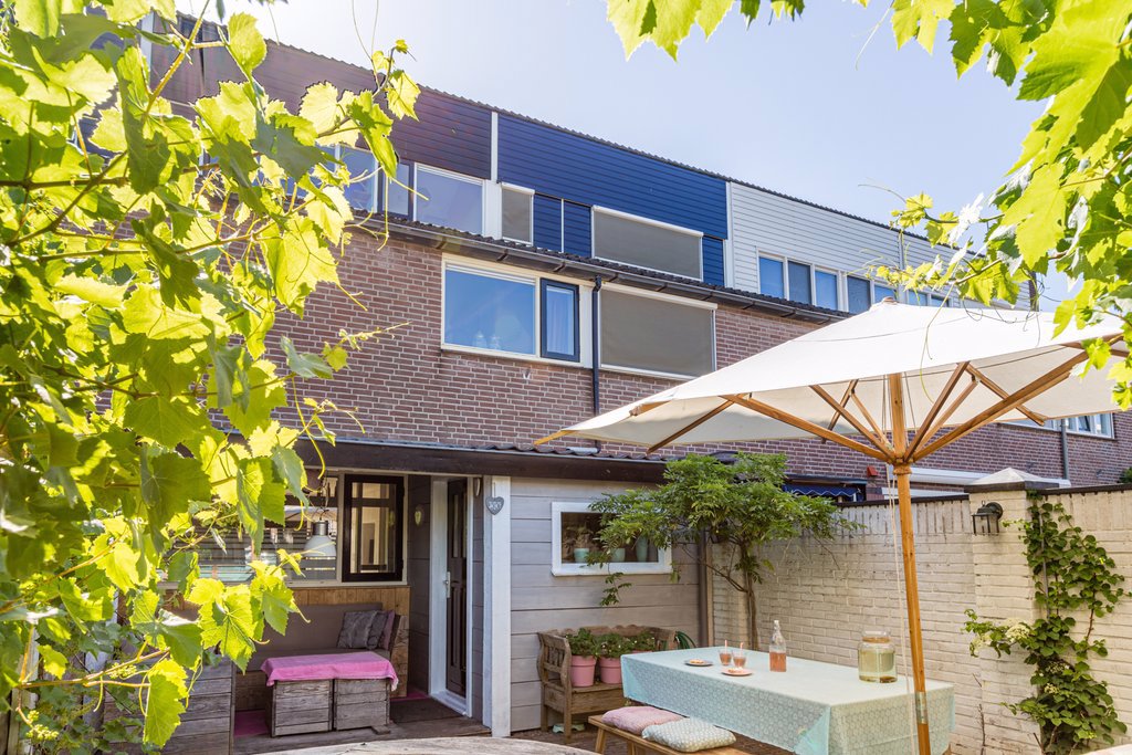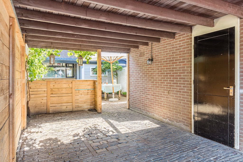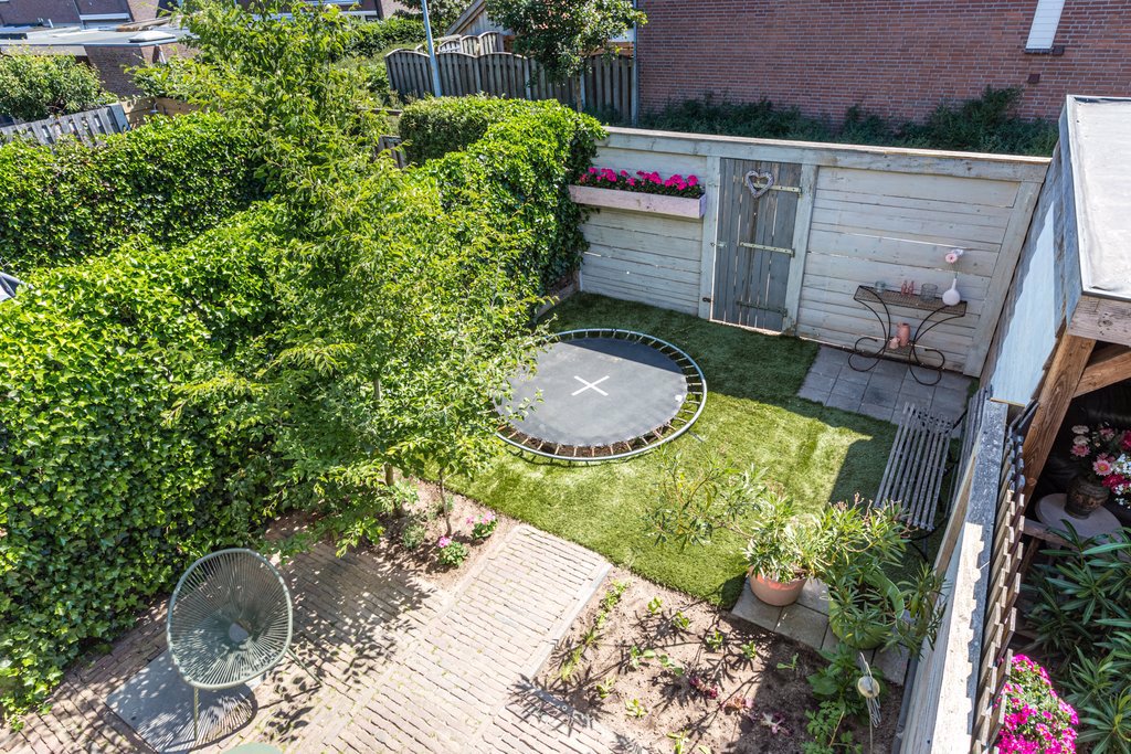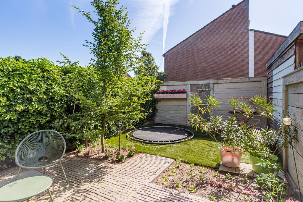 De achtertuin ligt op het zuidoosten en is voorzien van kunstgras, een terras en zelfs een moestuintje ontbreekt hier niet. In de voortuin is een overkapping gemaakt, waar je kunt genieten van de avondzon. In de stenen berging is voldoende ruimte voor fietsen. De auto kan op eigen terrein onder de carport staan. Daarnaast is er voldoende openbare parkeerruimte.