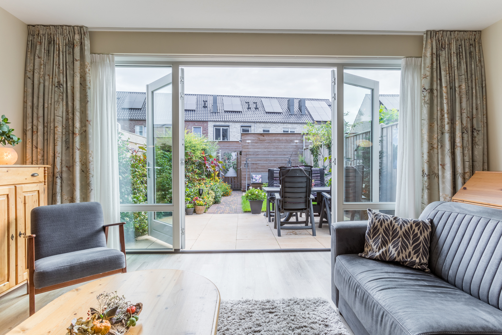 – Lichte woonkamer met openslaande terrasdeuren