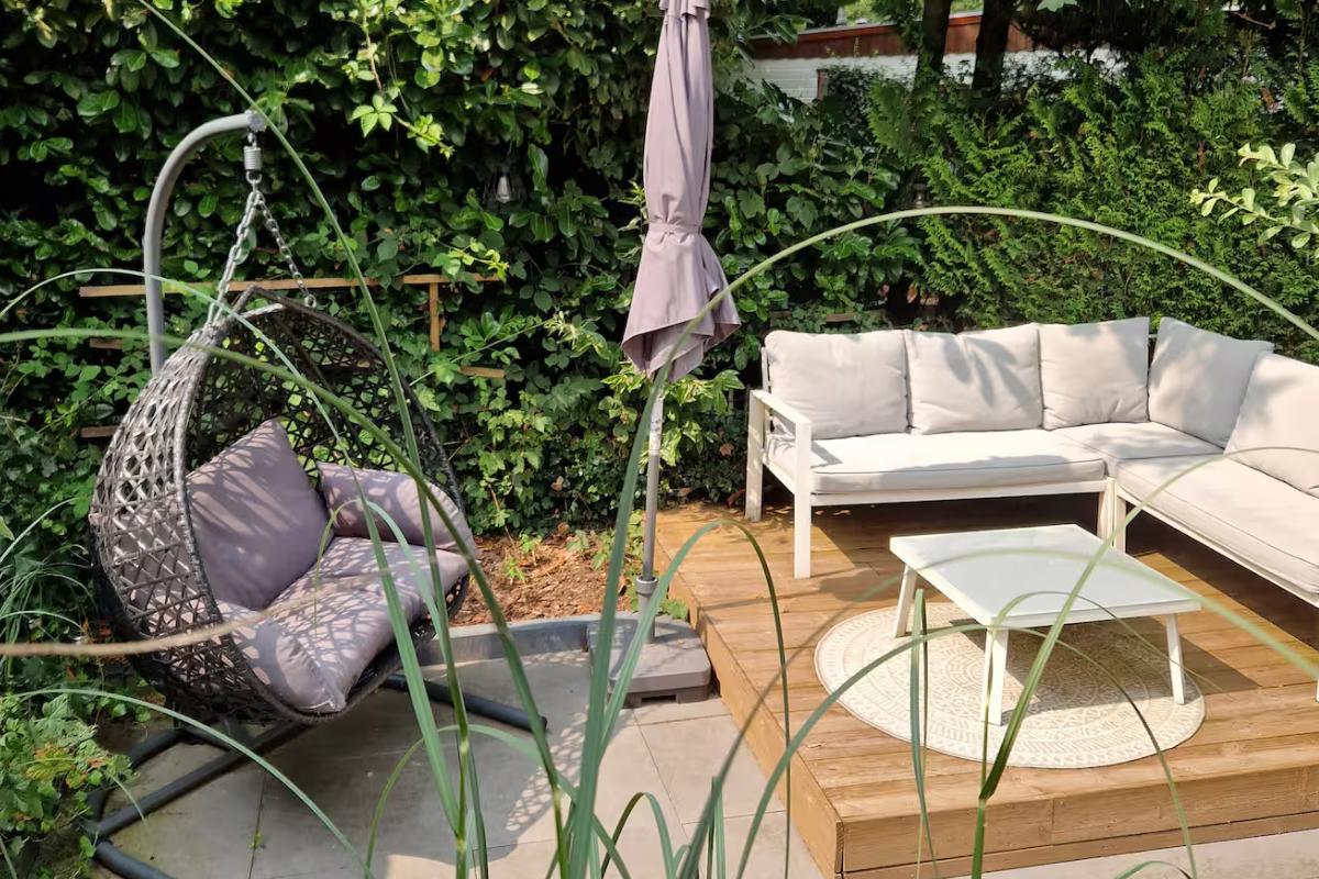 De tuin is in 2024 helemaal opnieuw aangelegd met meerdere terrassen én een mooie overkapping. Verder is er een eigen parkeerplaats en een berging met tuingereedschap en meerdere fietsen die ook achterblijven.