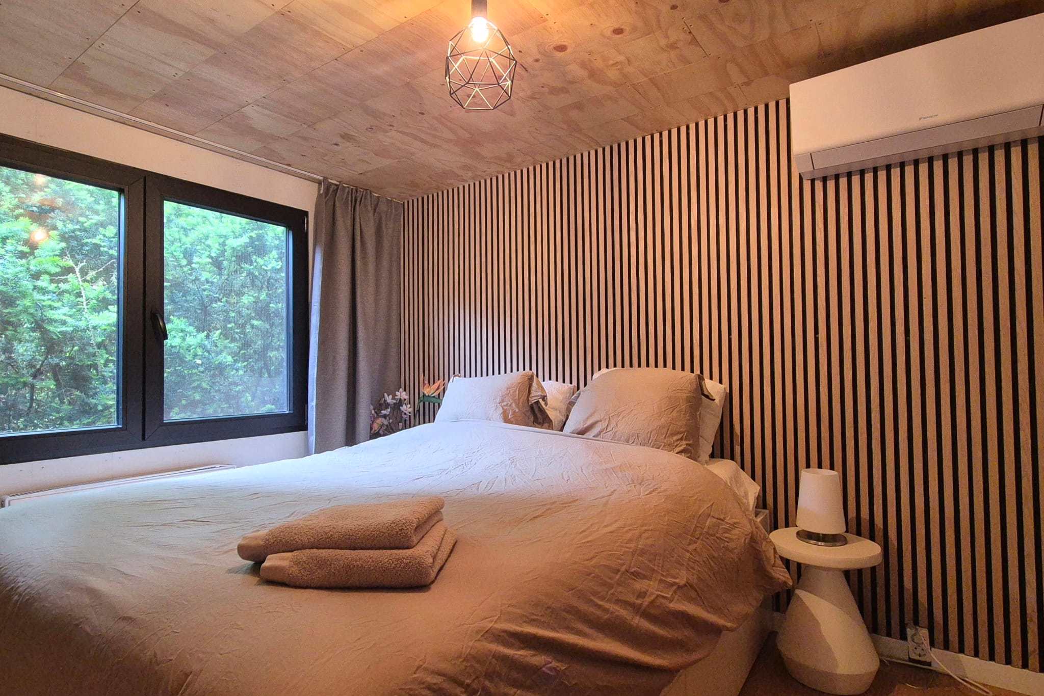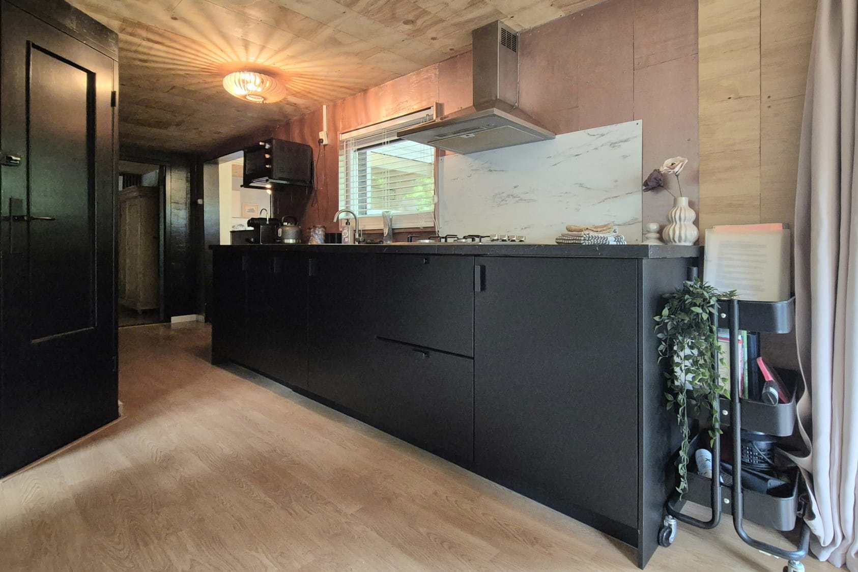 De moderne keuken heeft zwarte fronten en een marmerlook blad. De keuken is voorzien van de volgende apparatuur; gaskookplaat met rvs-afzuigkap, een koelkast met vriesvak en een oven. Er zijn drie slaapkamers waarvan twee met een tweepersoonsbed en één met een eenpersoonsbed. In de hoofdslaapkamer is airco aanwezig. De badkamer is in 2024 helemaal vernieuwd met een douche in bad, een houten wasmeubel met waskom, een radiator en een toilet.