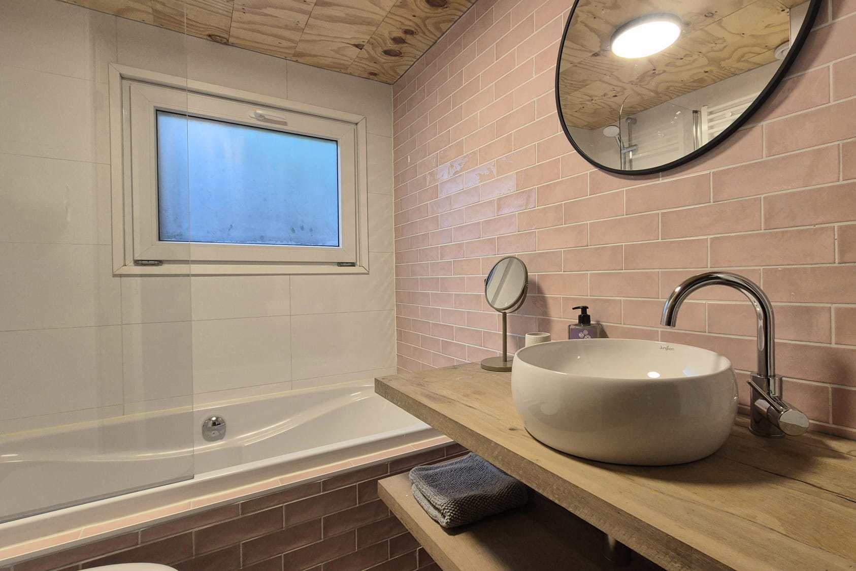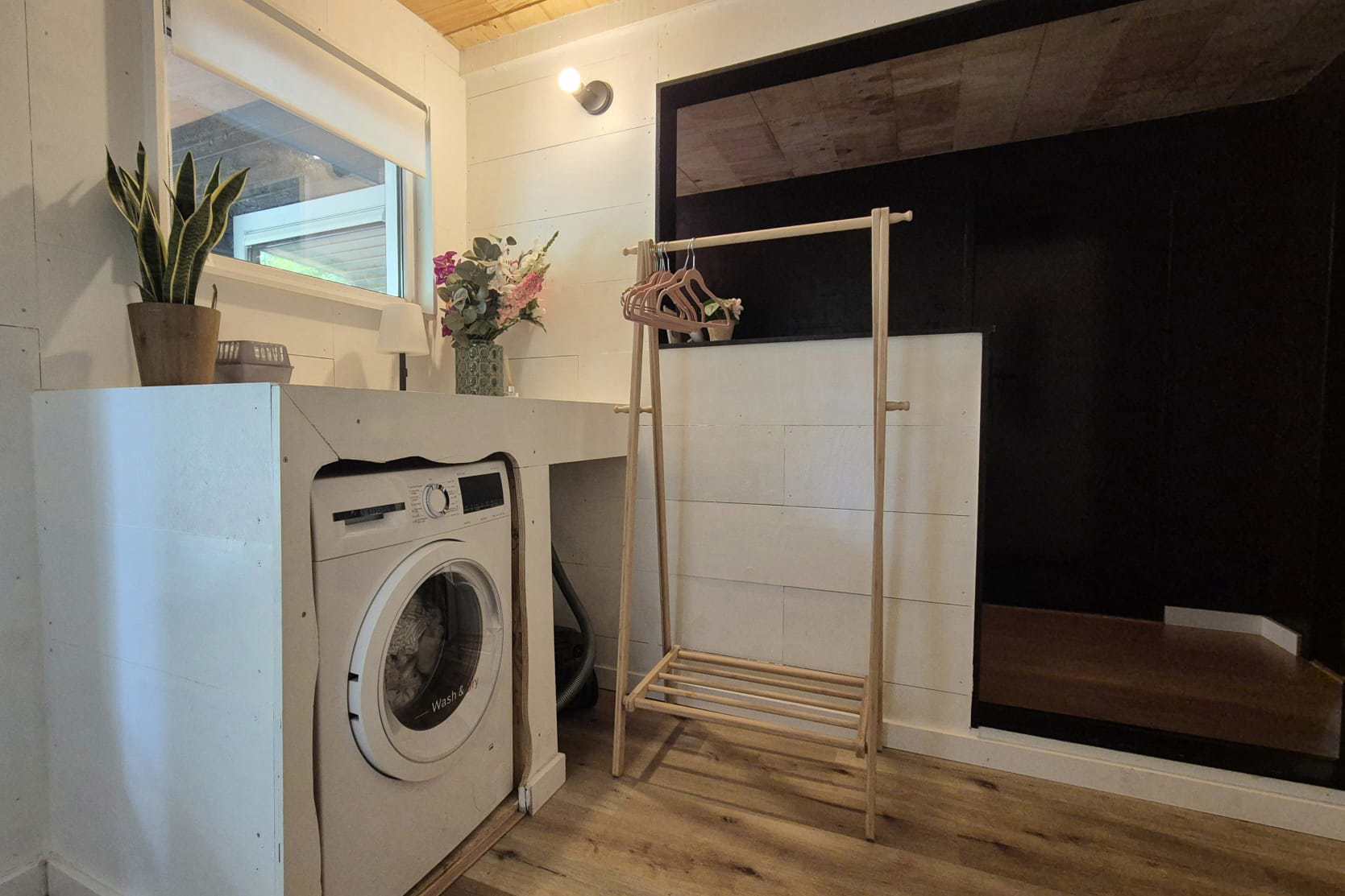 Via de entree (met ruimte voor de jassen én de wasmachine) kom je in de sfeervol ingerichte woonkamer met open keuken. De woonkamer is heerlijk licht door de ramen en openslaande deuren naar het terras.