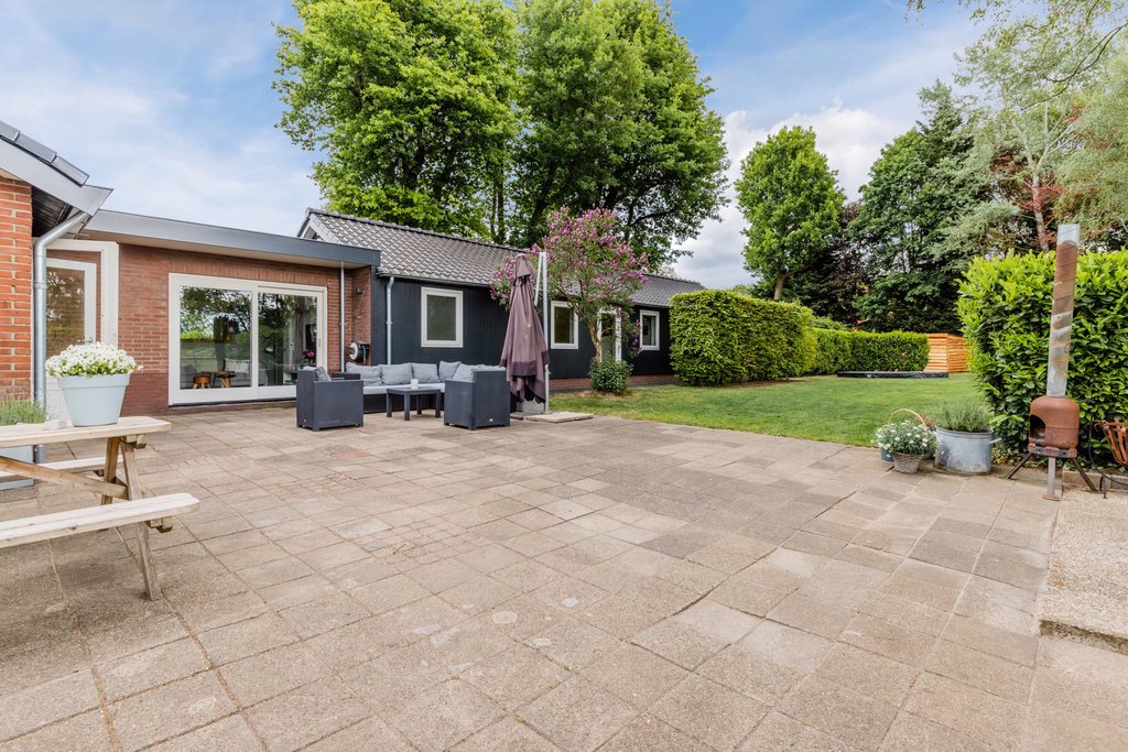 De woonkamer heeft een houtkachel en door de schuifdeur heb je een fijne verbinding met het buitenleven. We vervolgen onze weg en komen in het slaapgedeelte met 4 slaapkamers. De grote en strak afgewerkte badkamer beschikt over vloerverwarming, een inloopdouche, toilet, bad en wasmeubel met dubbele wastafel. Rondom de woning ligt de heerlijke tuin. Met een carport en twee bergingen is er voldoende ruimte voor tuingereedschap, fietsen of een motor. De tuin is mooi aangelegd met een groot gazon, beplanting, bomen, diverse zitjes en speeltoestellen. Hier geniet je volop van het buitenleven. Met bos en weilanden om je heen, is dit een fantastische plek om volop te genieten van de natuur.